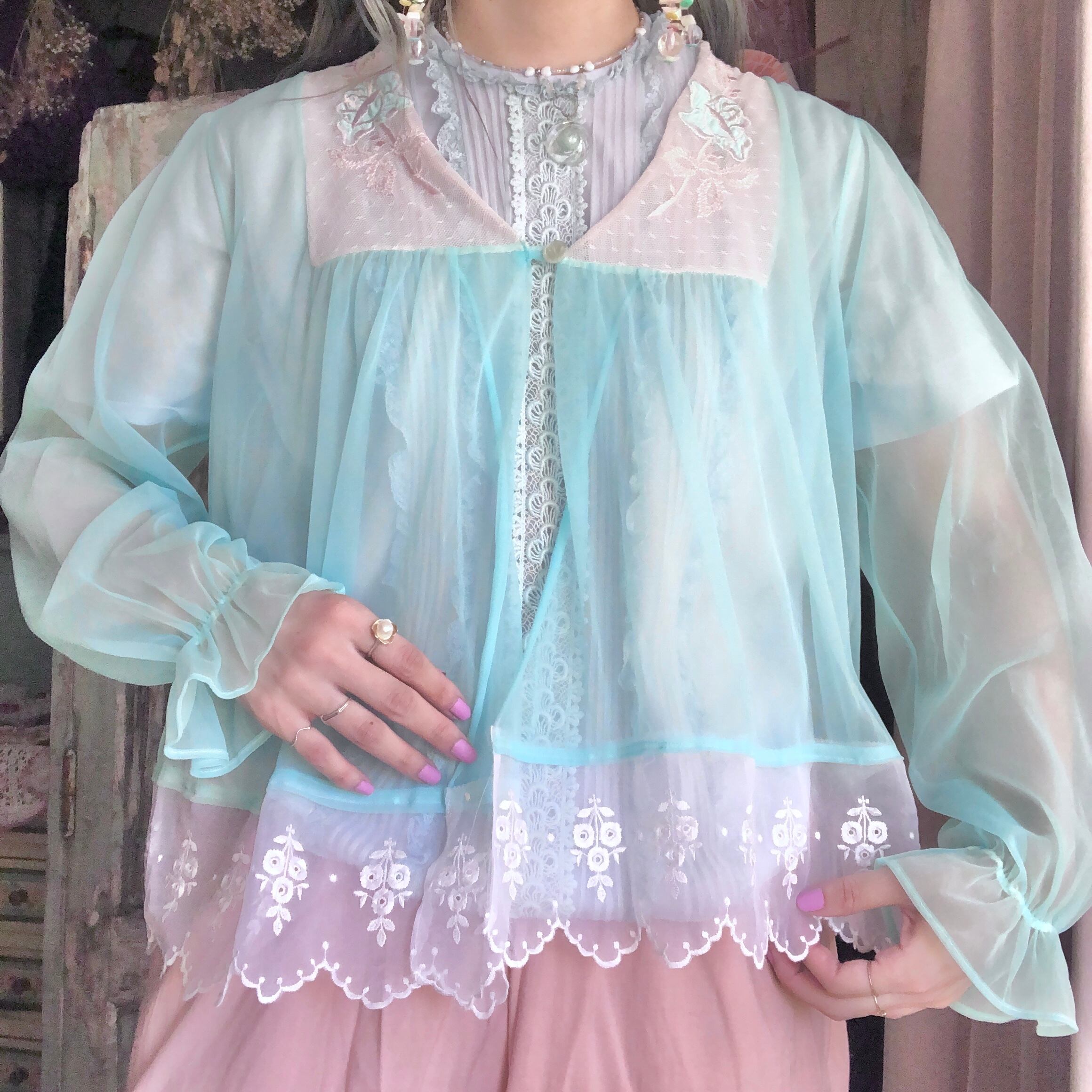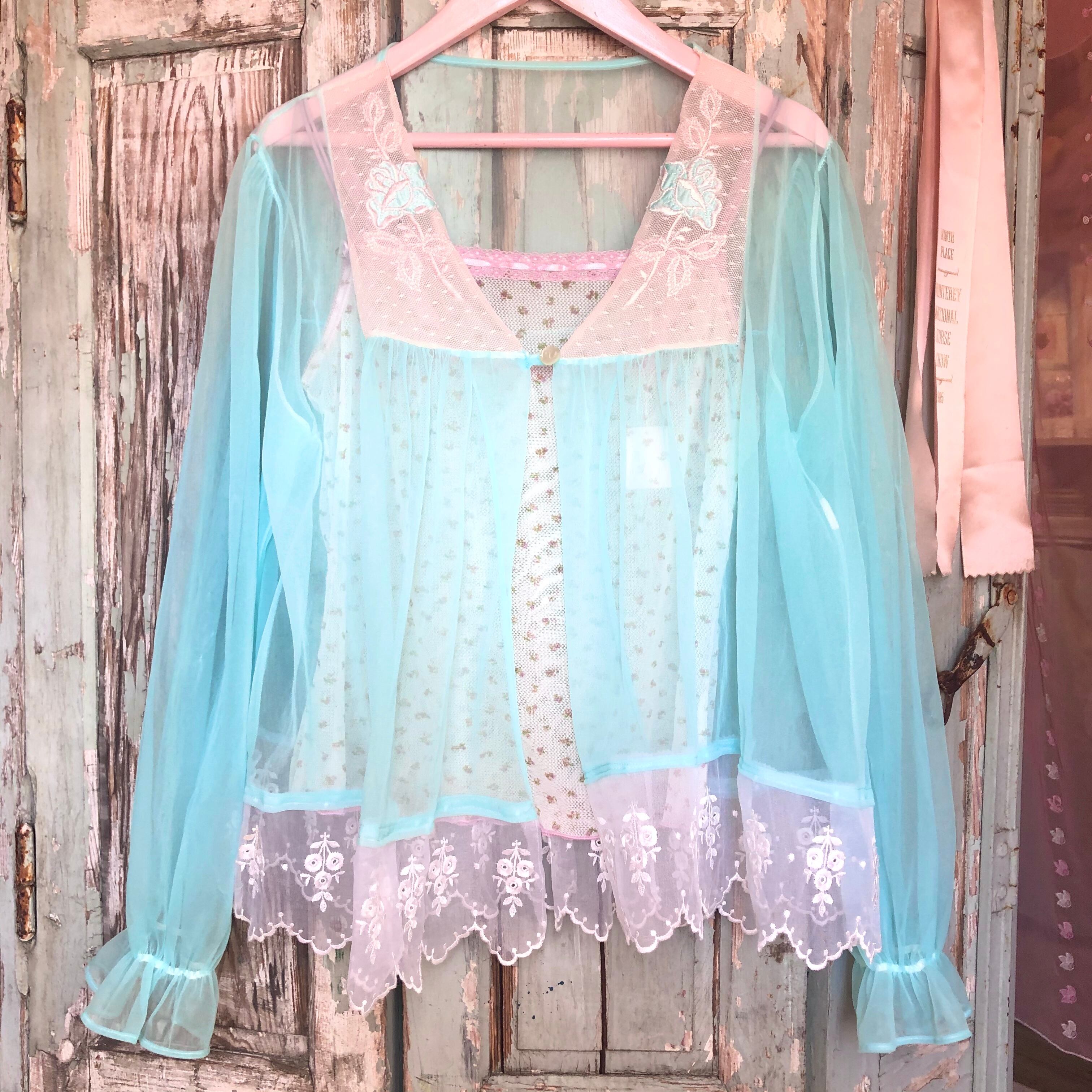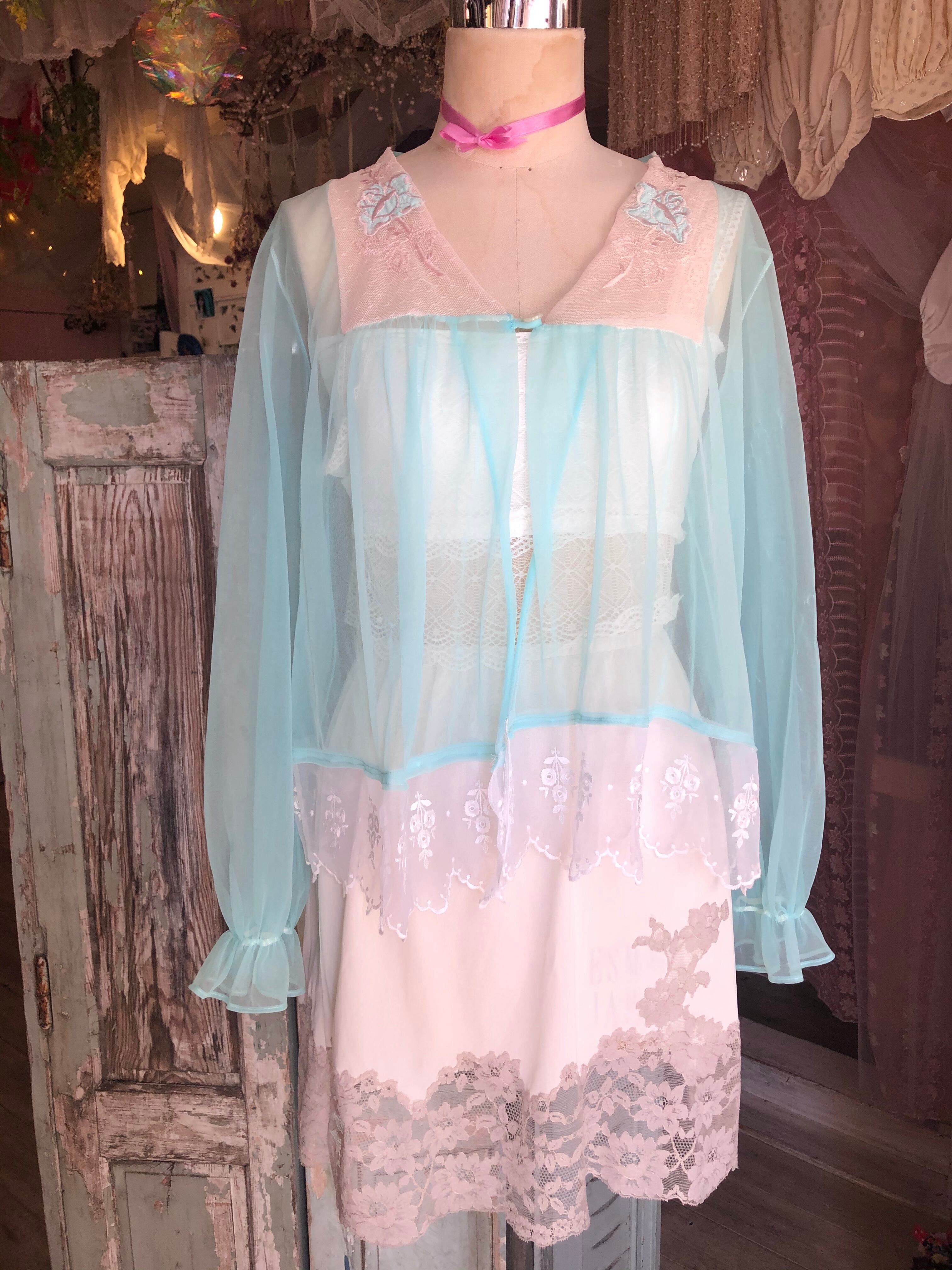 長かったランジェリーガウンにvintageのスカートのレースをつけたリメイクものです。