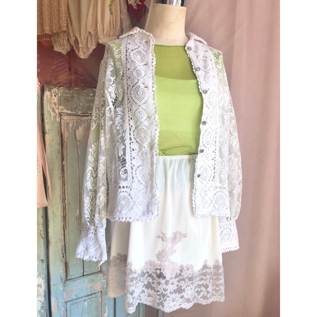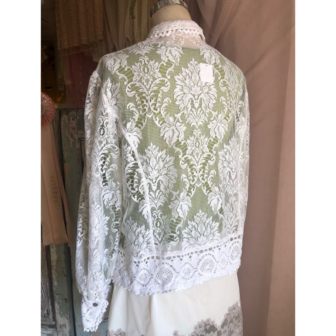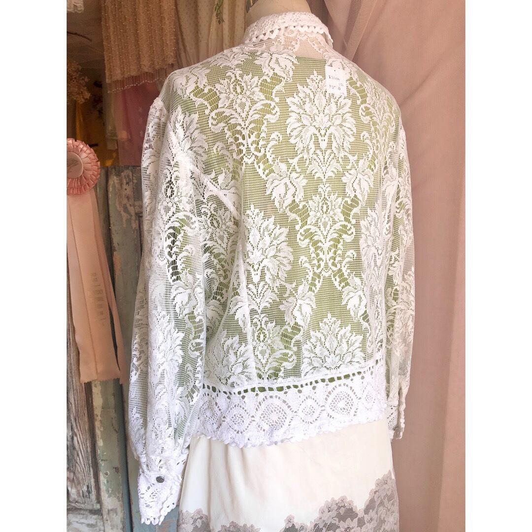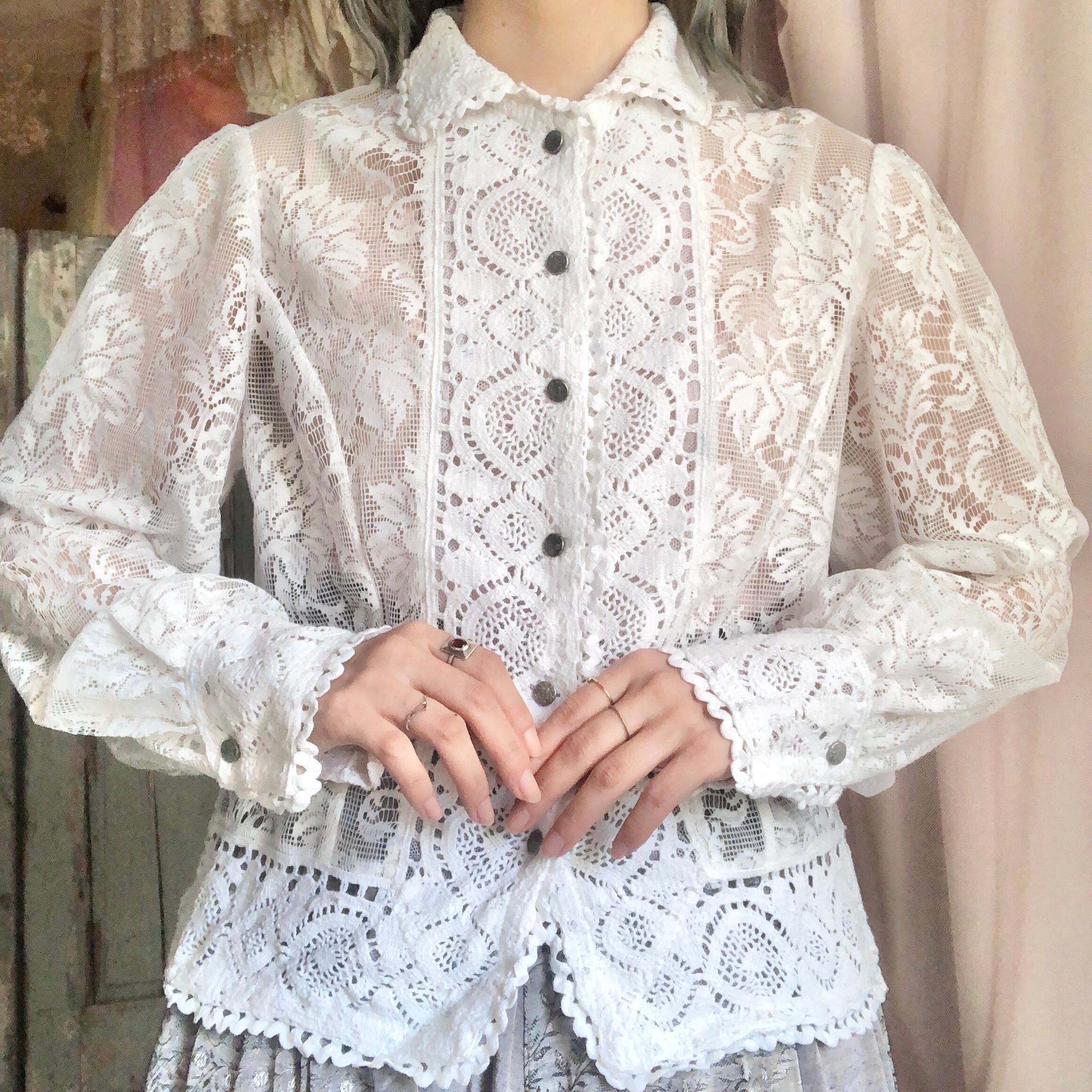 全てのボタンを閉めてシンプルにブラウスとしても着ていただけますし、羽織として着ても可愛いです。大人ロマンチックな一着。