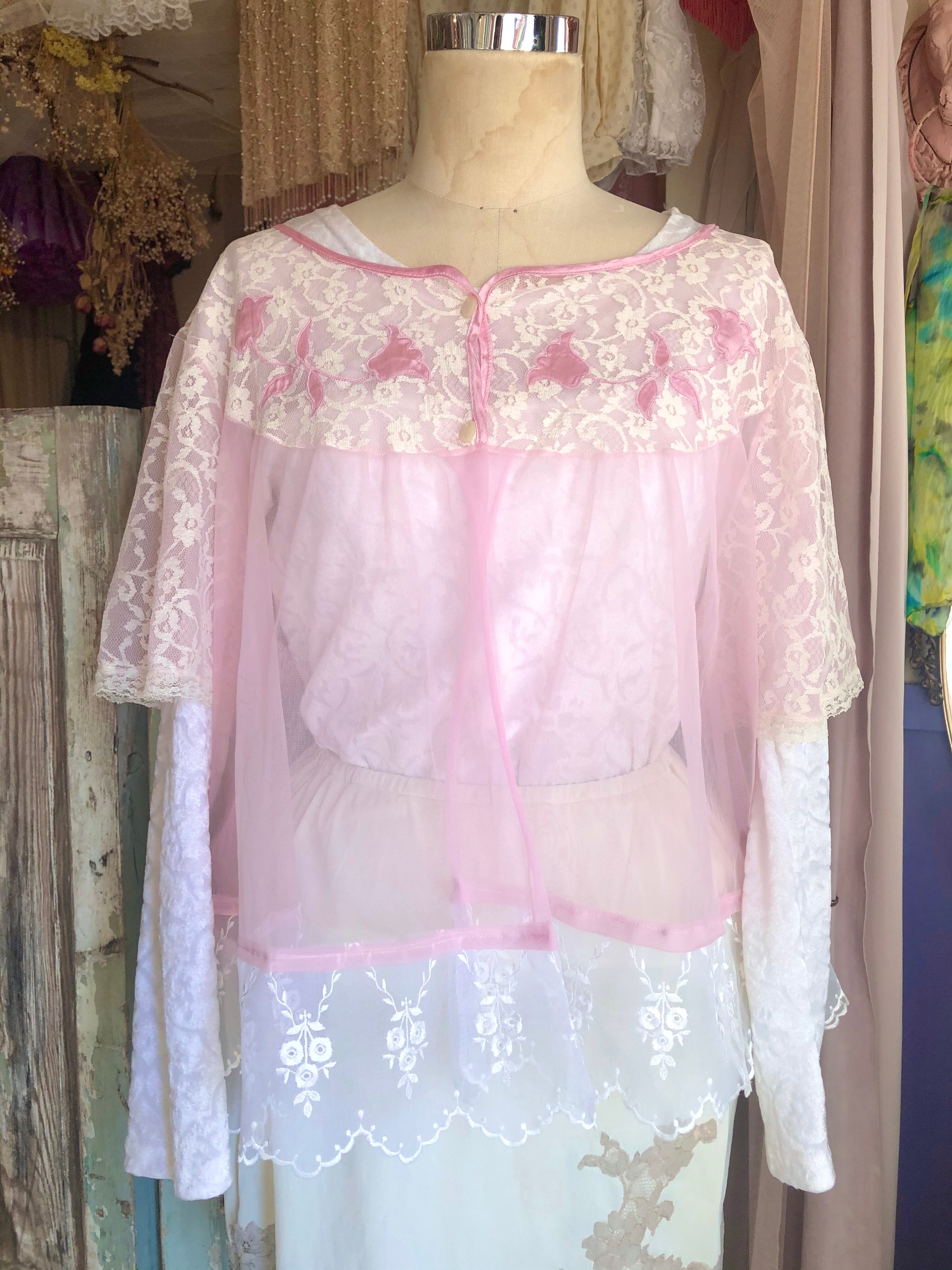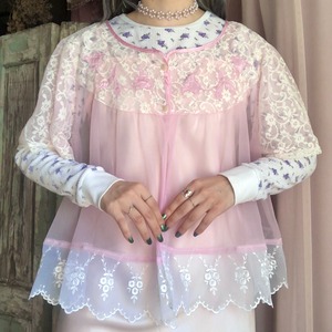 長かったランジェリーガウンにvintageのスカートのレースをつけたリメイクものです。