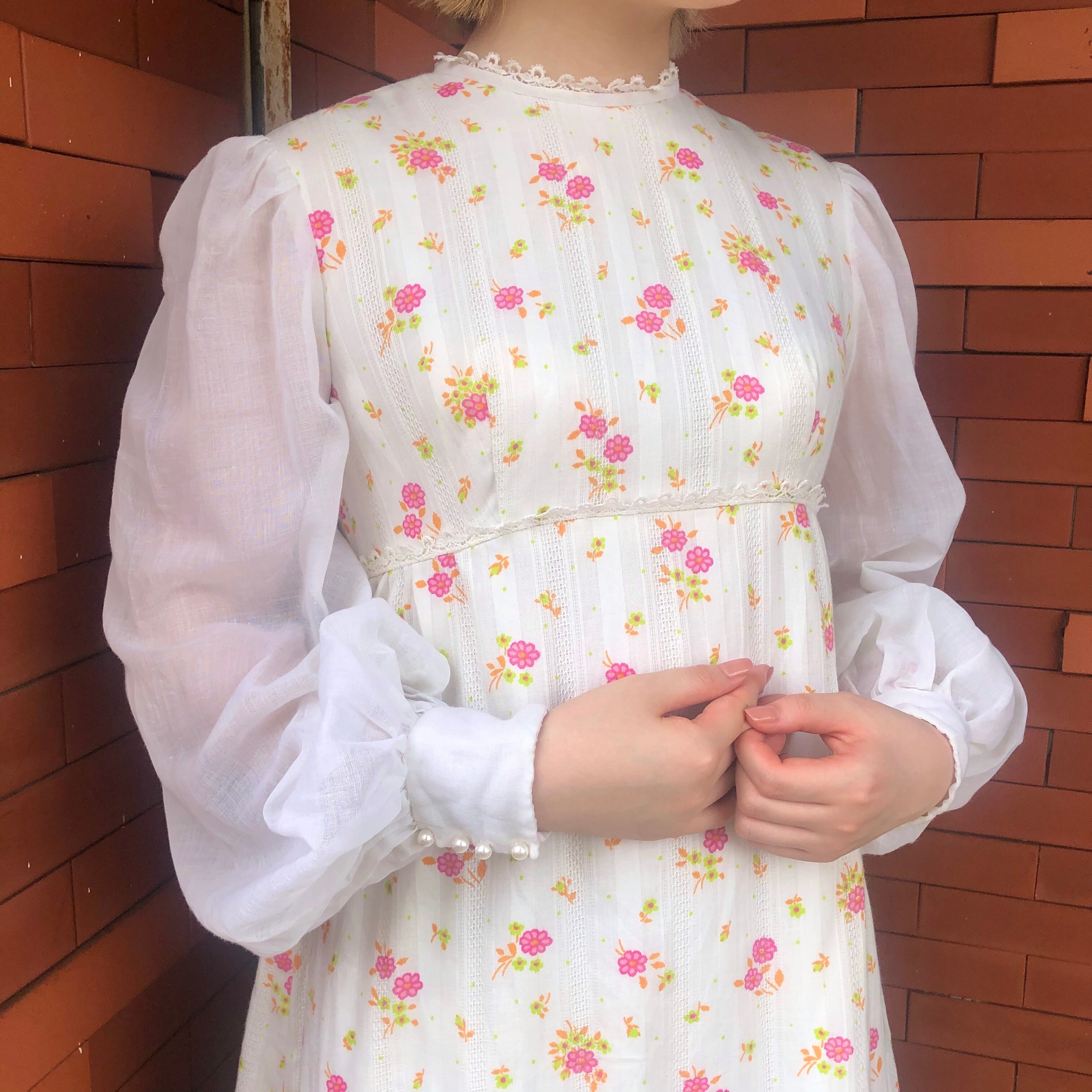 ボディに使われた花柄がどこか懐かしい雰囲気漂うワンピースです。