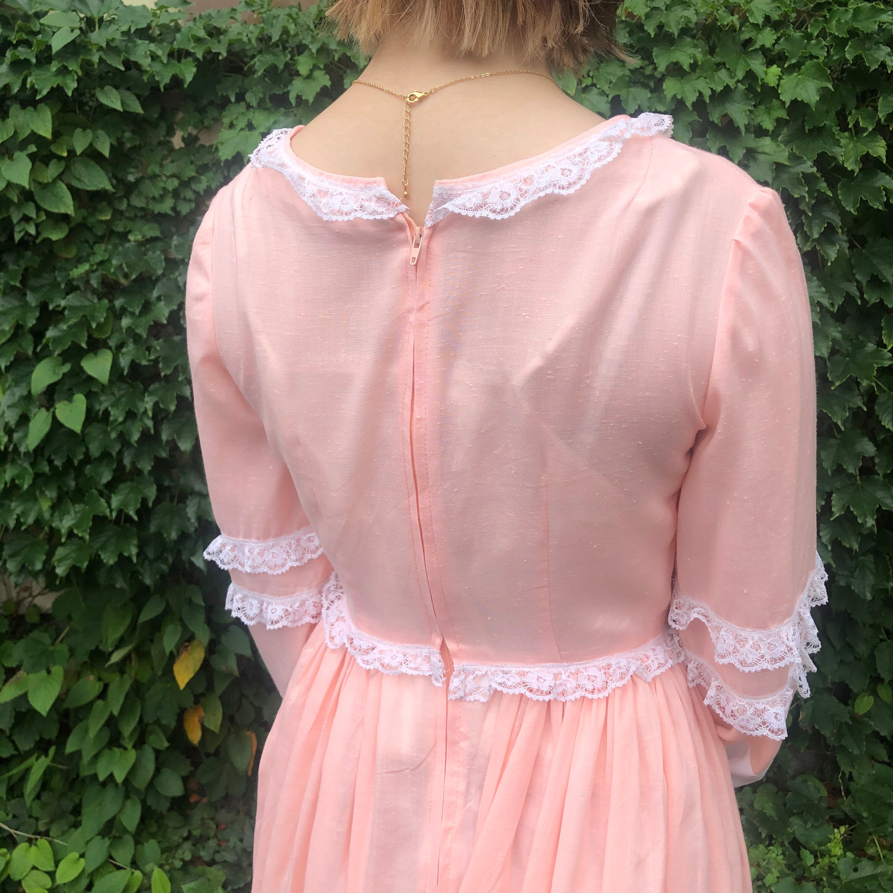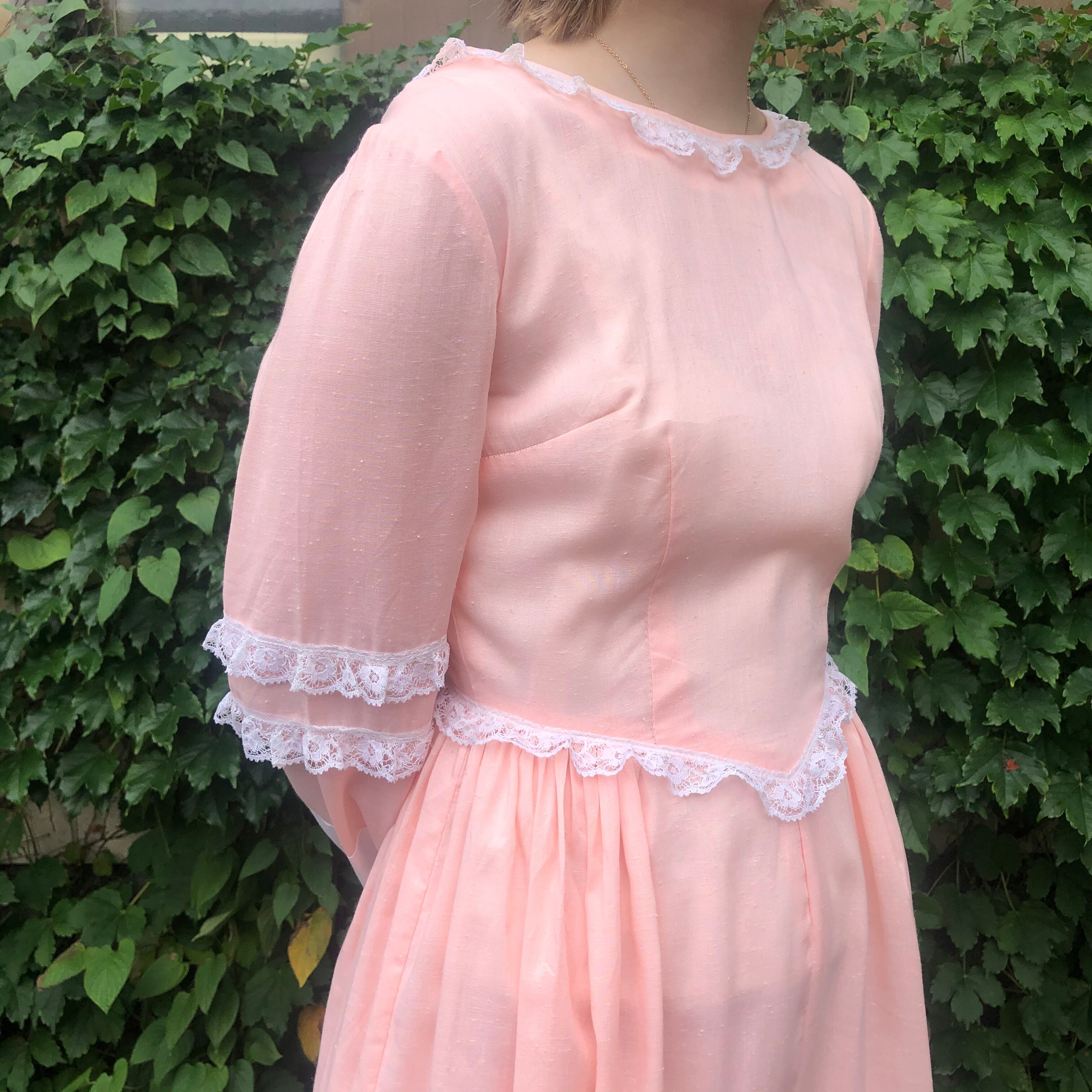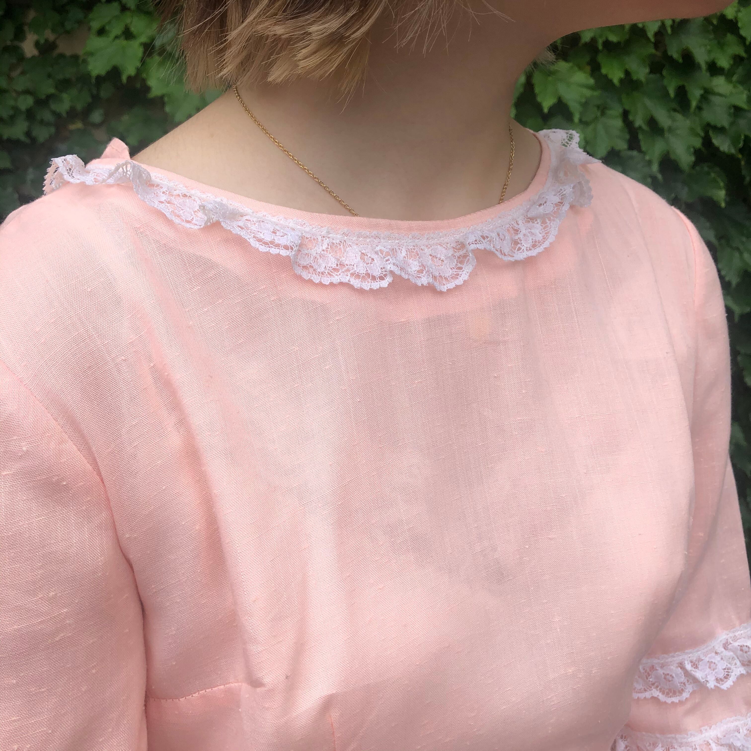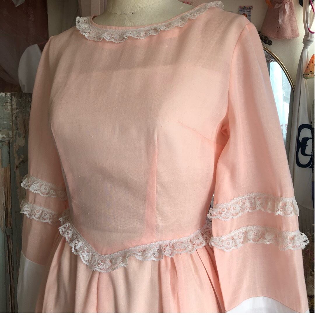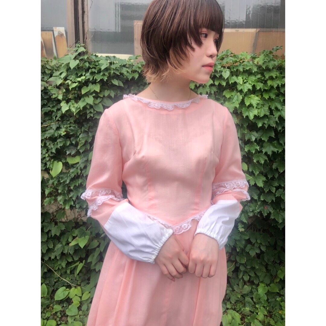 ウエスト、首元、袖に2連についたレースが愛らしいです。