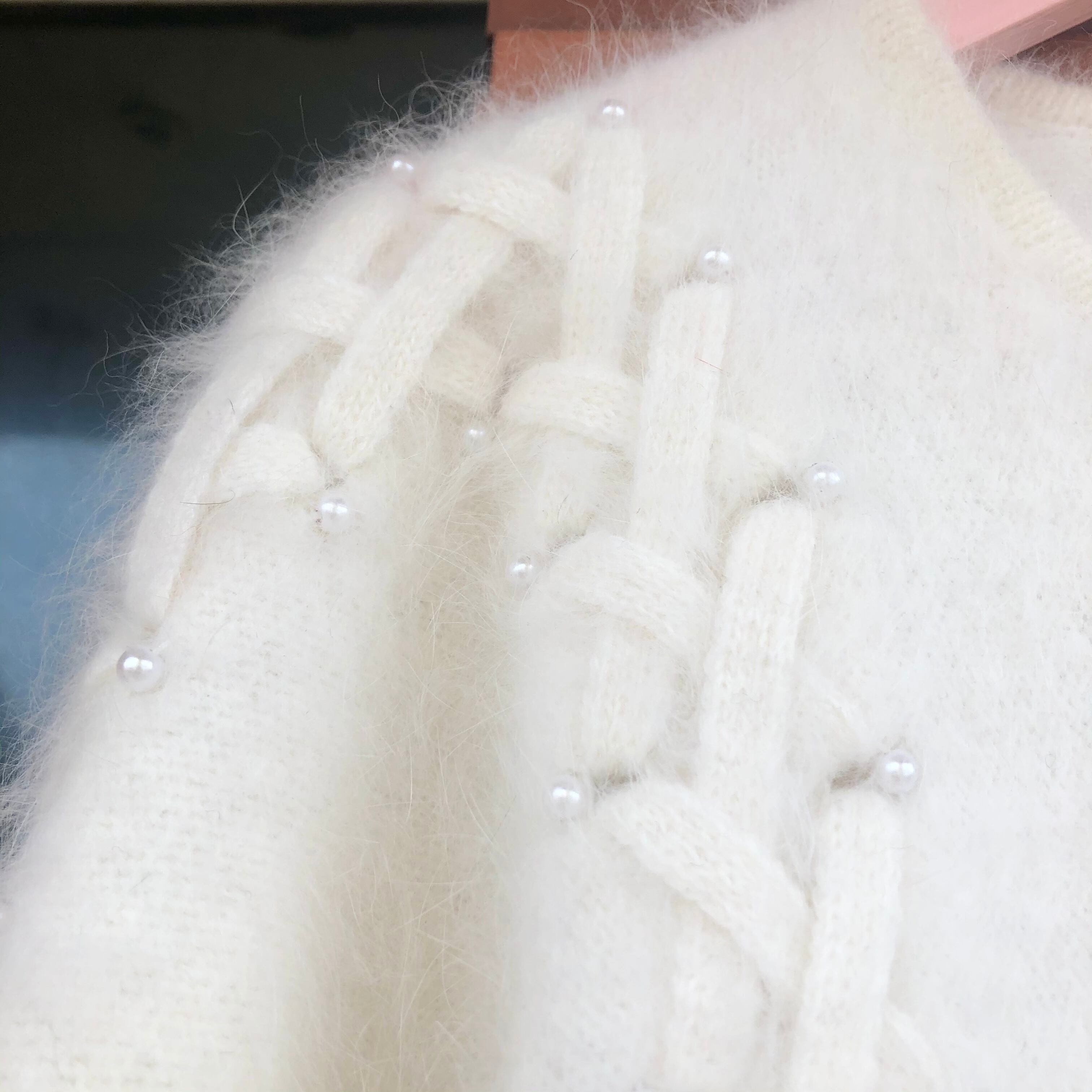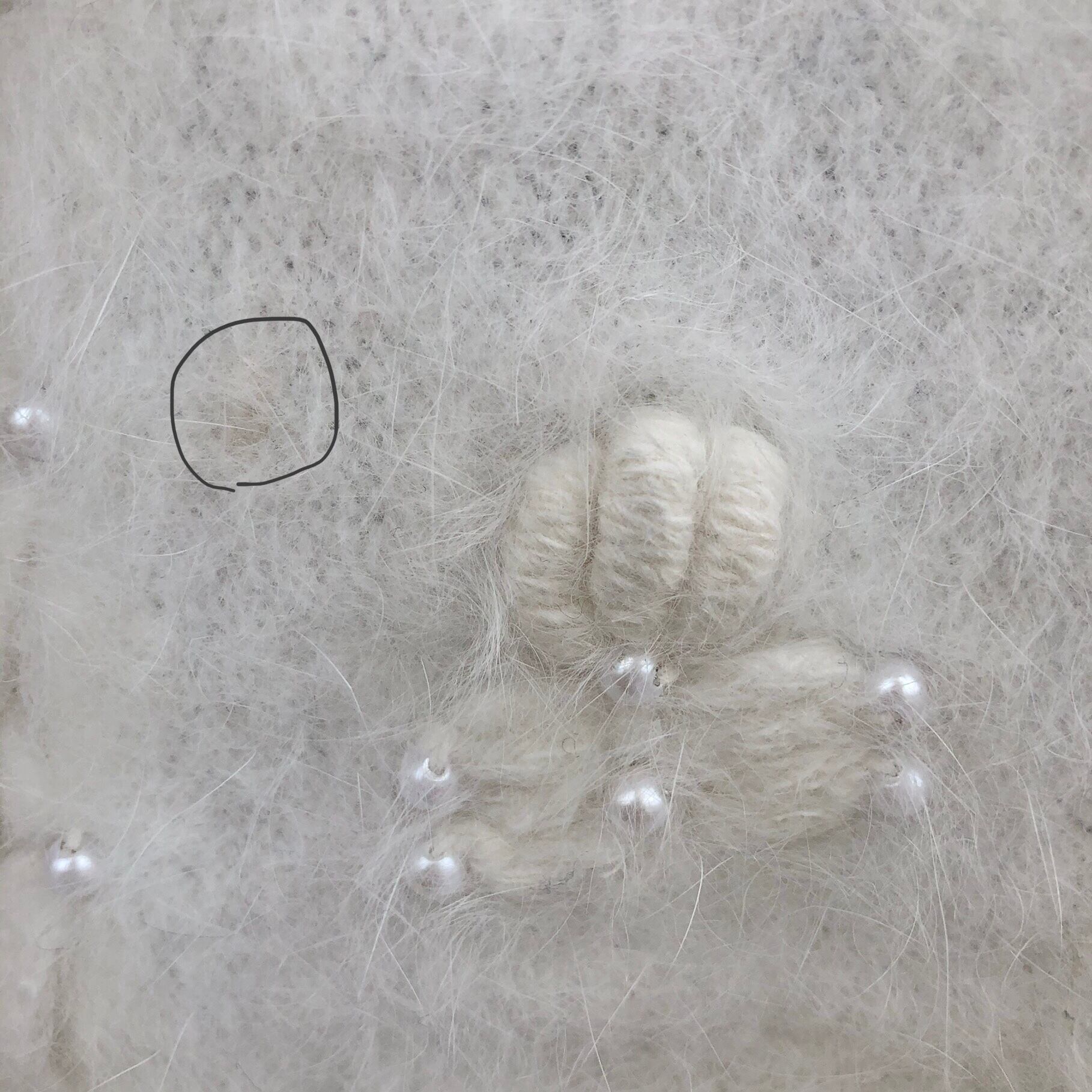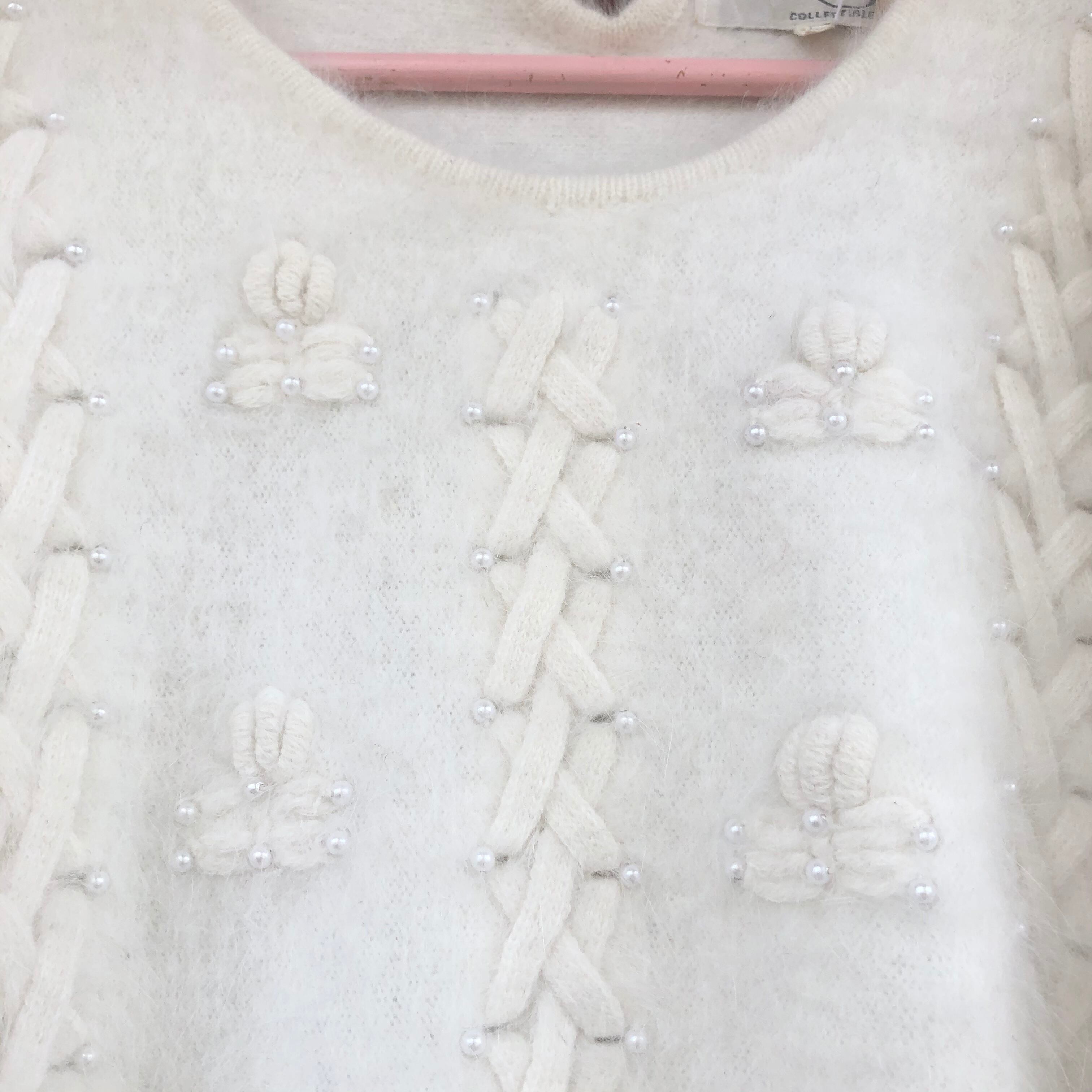 パールやクロスモチーフの装飾がされたアンゴラセーターです。