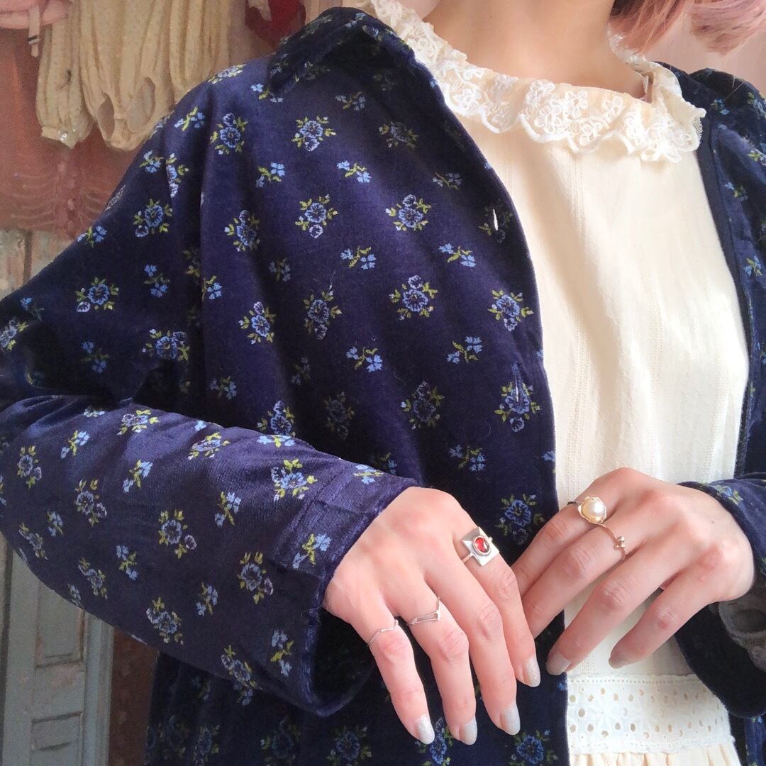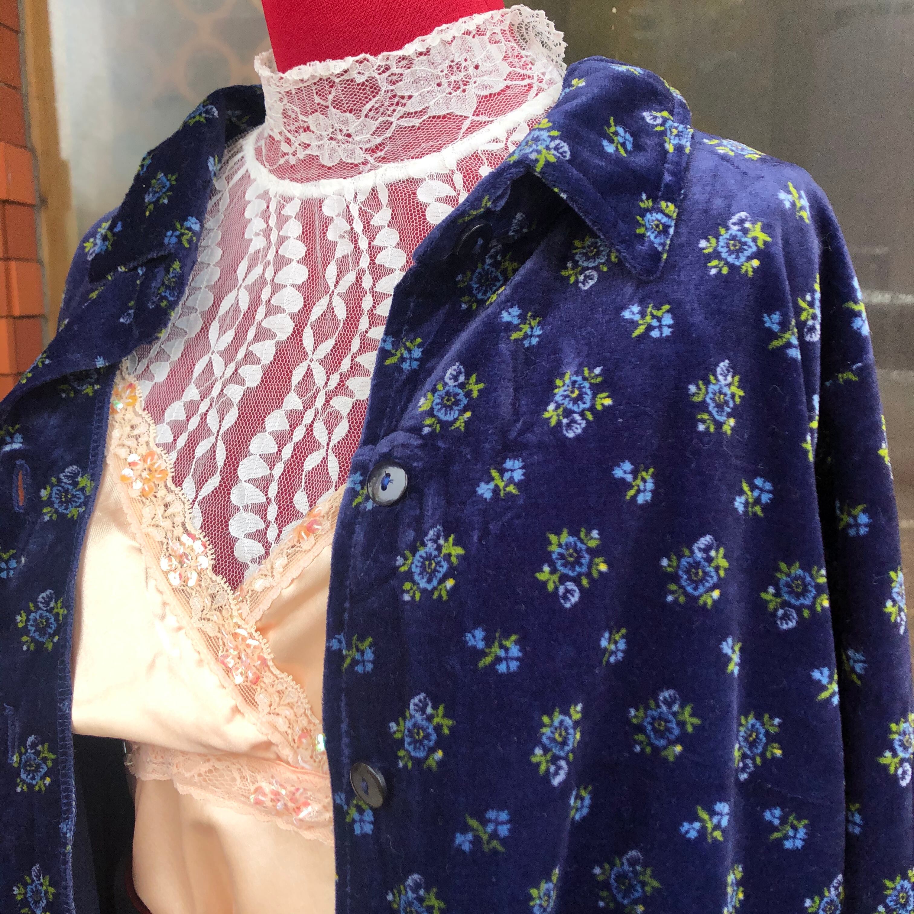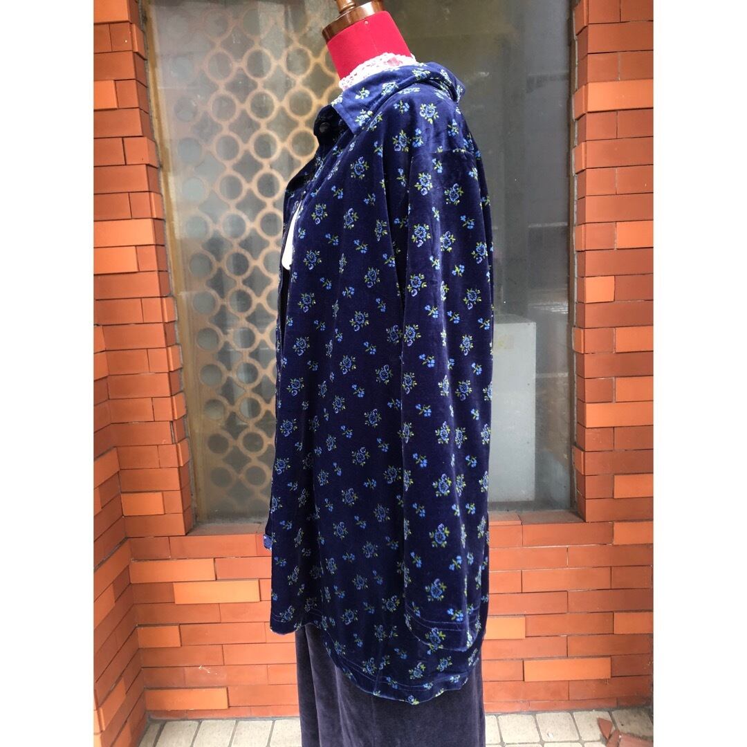 紺色のベロアネイビーシャツです。花柄なところが珍しいです^^