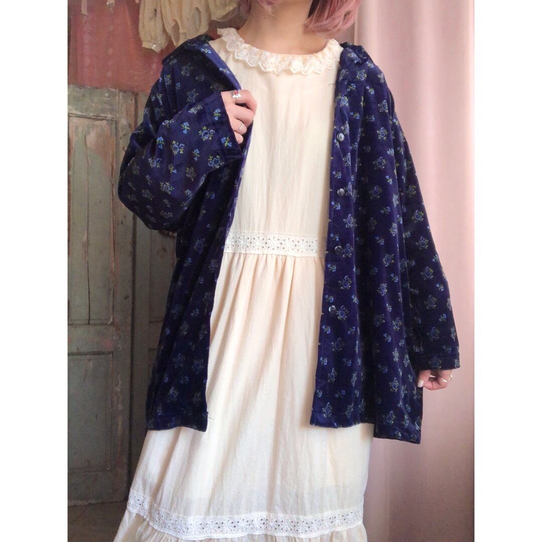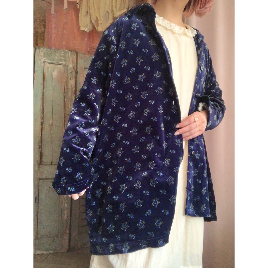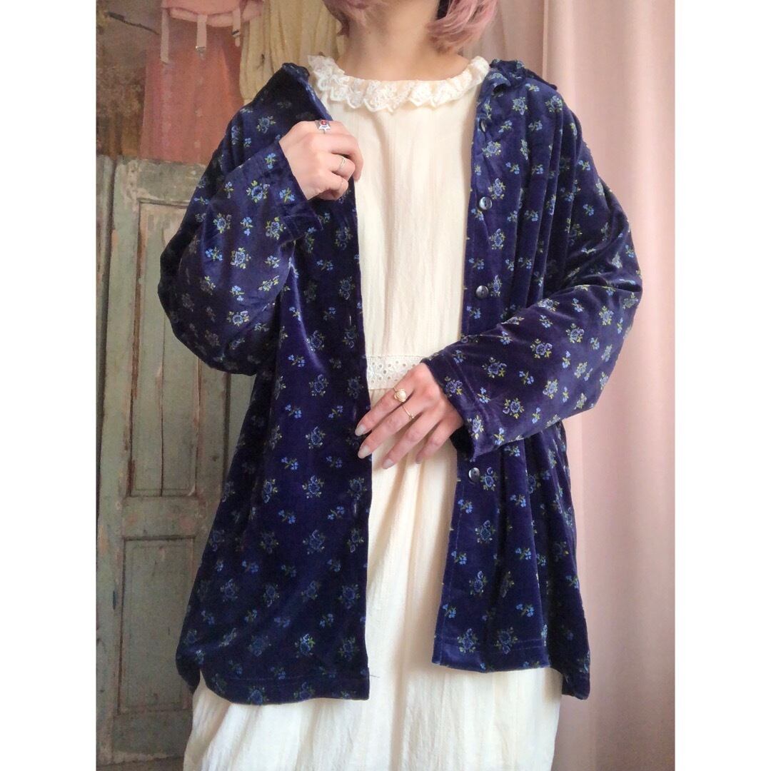紺色のベロアネイビーシャツです。花柄なところが珍しいです^^
