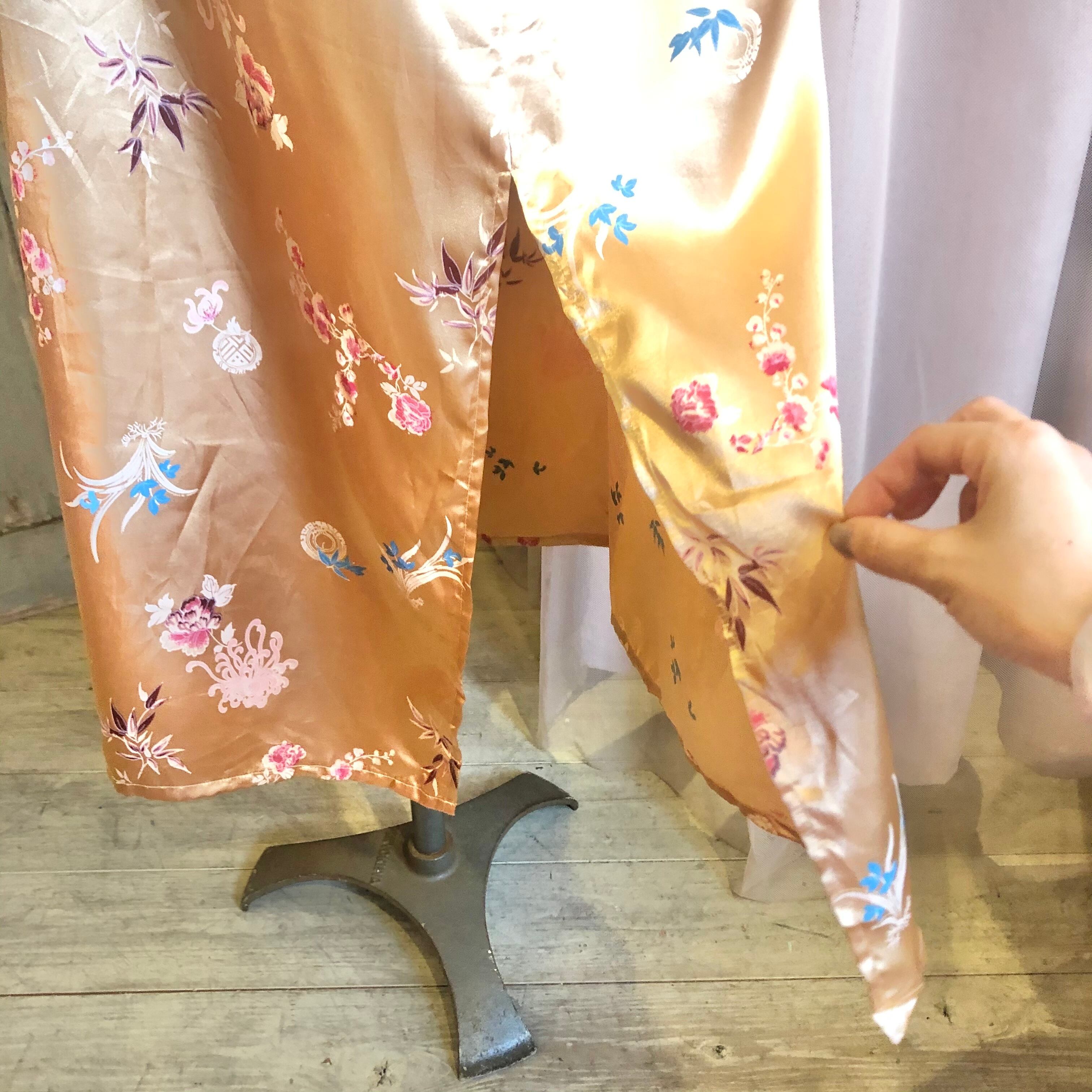 縁起の良い雰囲気漂うゴールドのチャイナテイストワンピース。