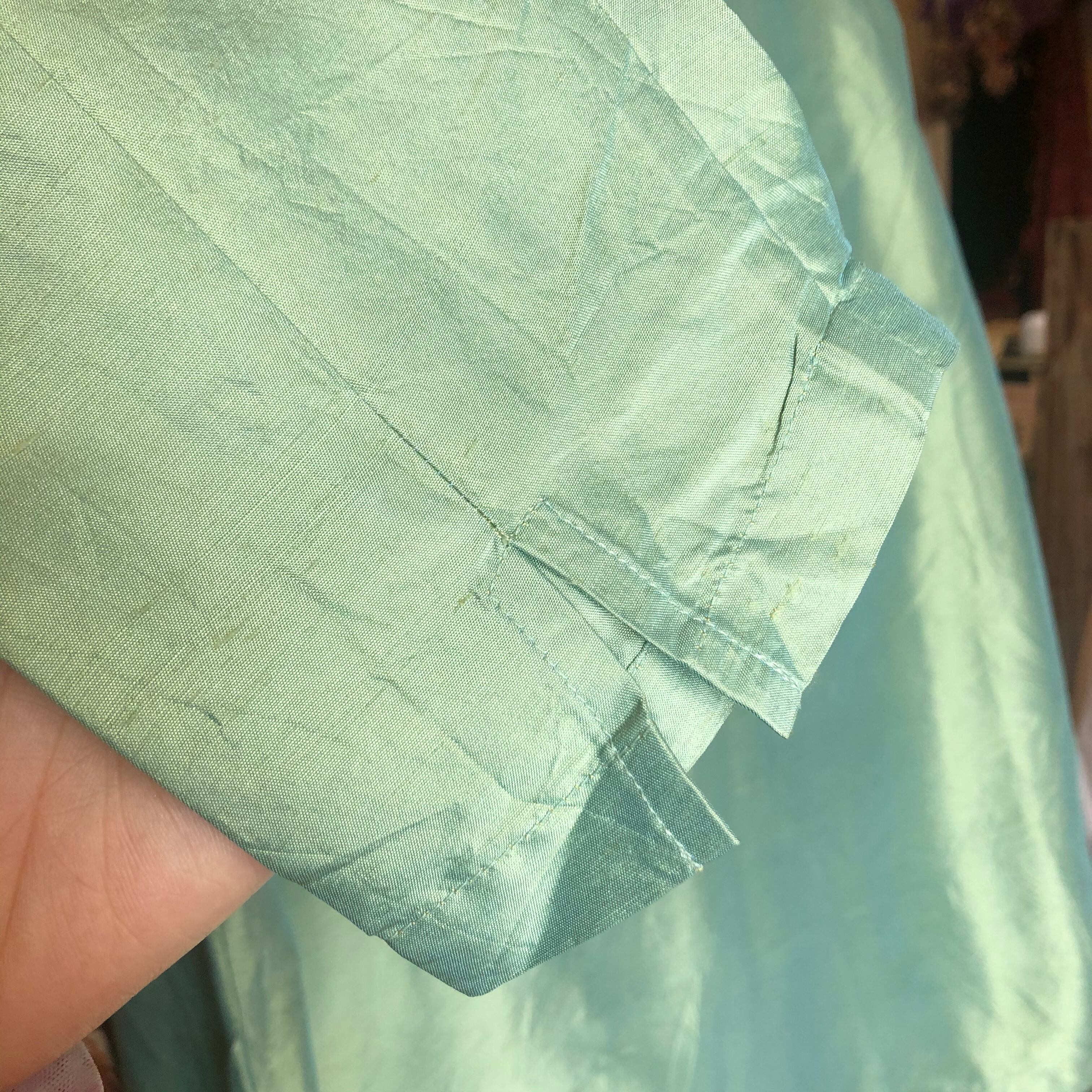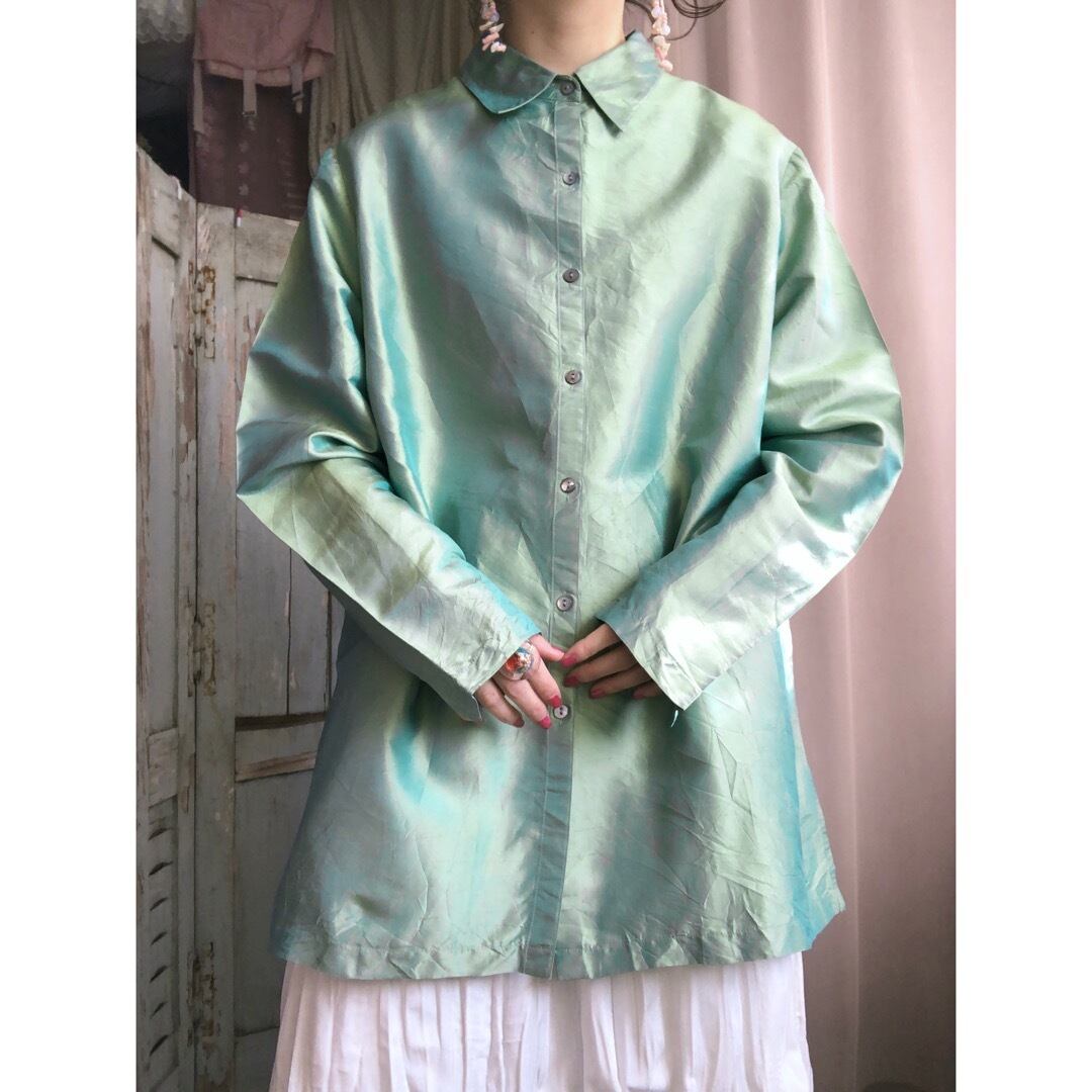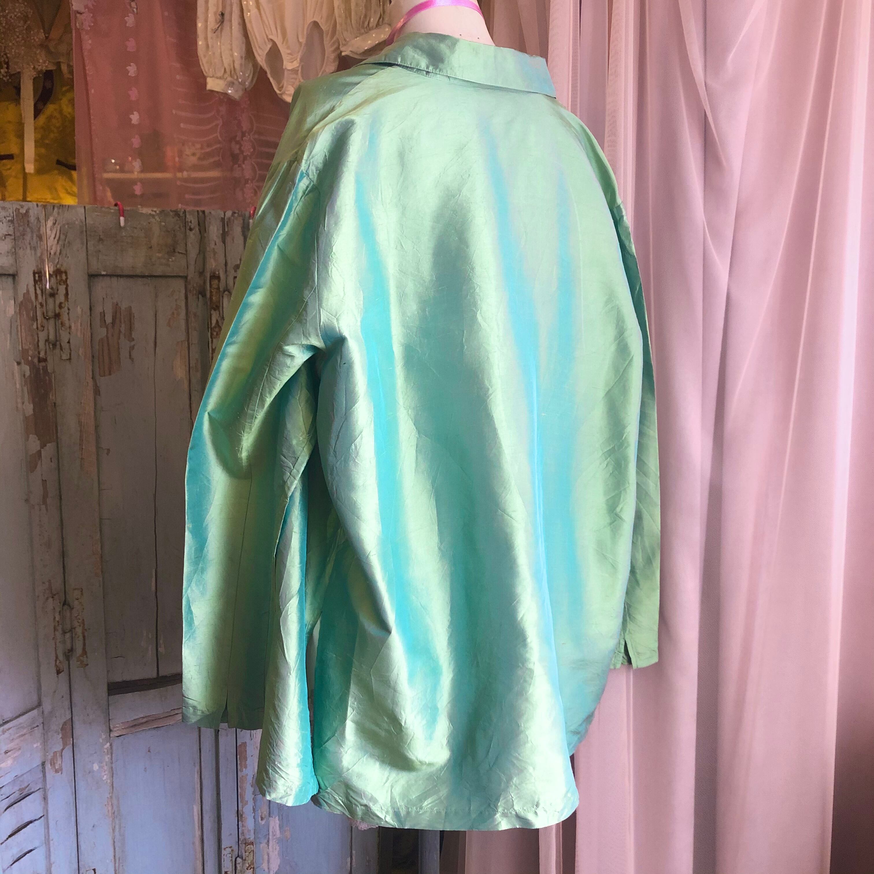 シルクの美しいグリーンのシャツです。