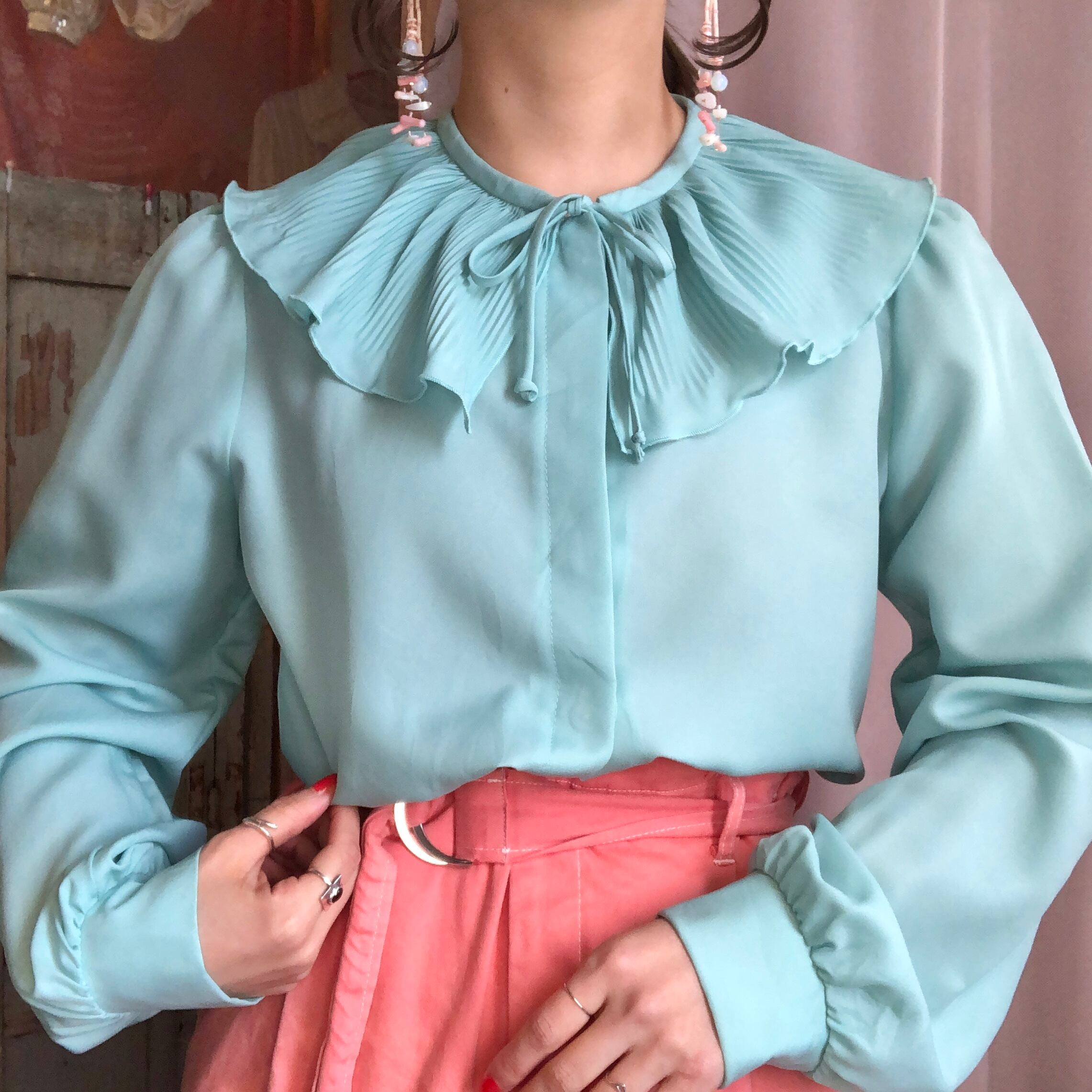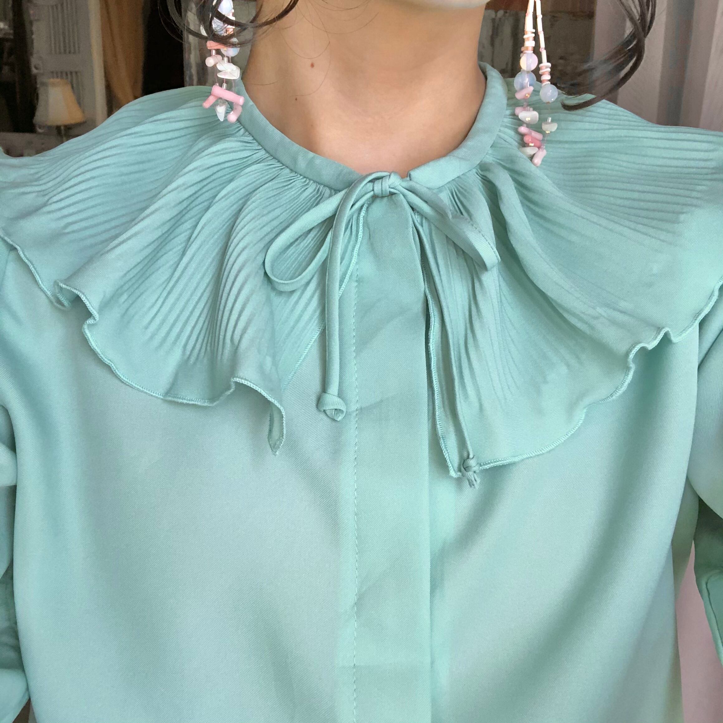 ひらひらと金魚のようなプリーツの襟が目を惹きます。