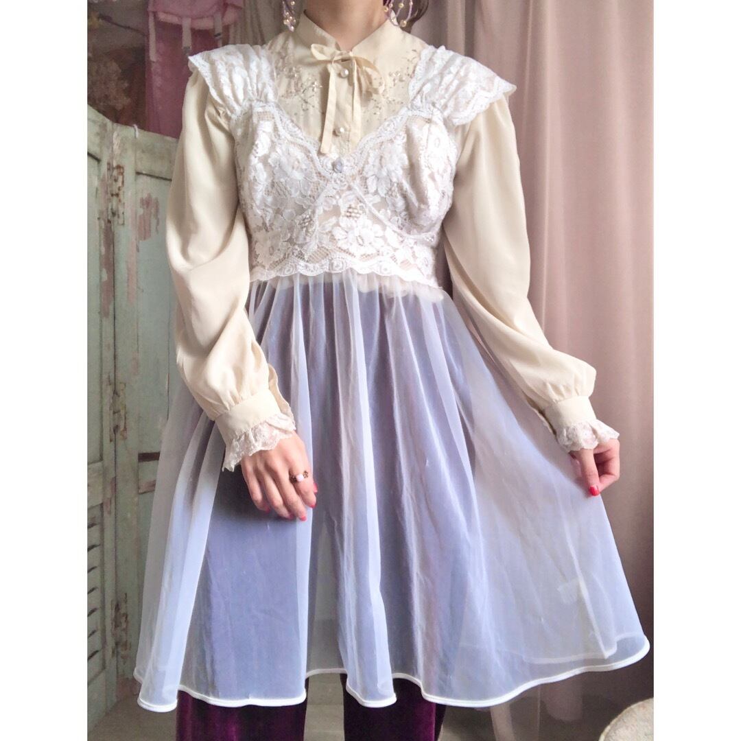 上半身がレースのランジェリーワンピース。