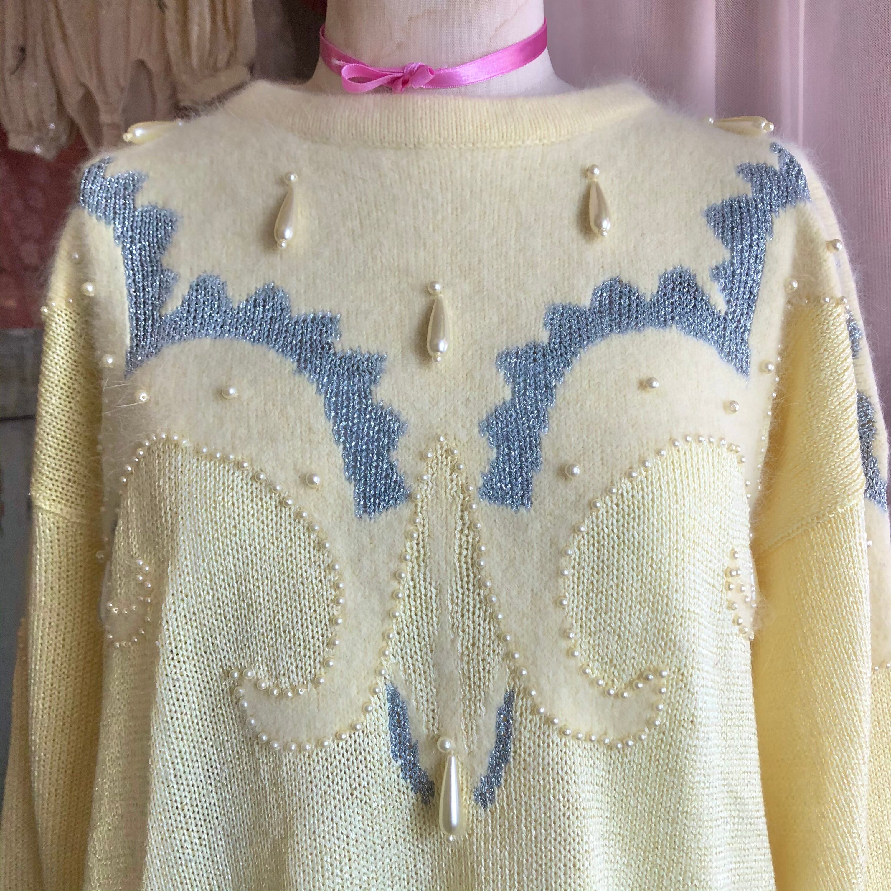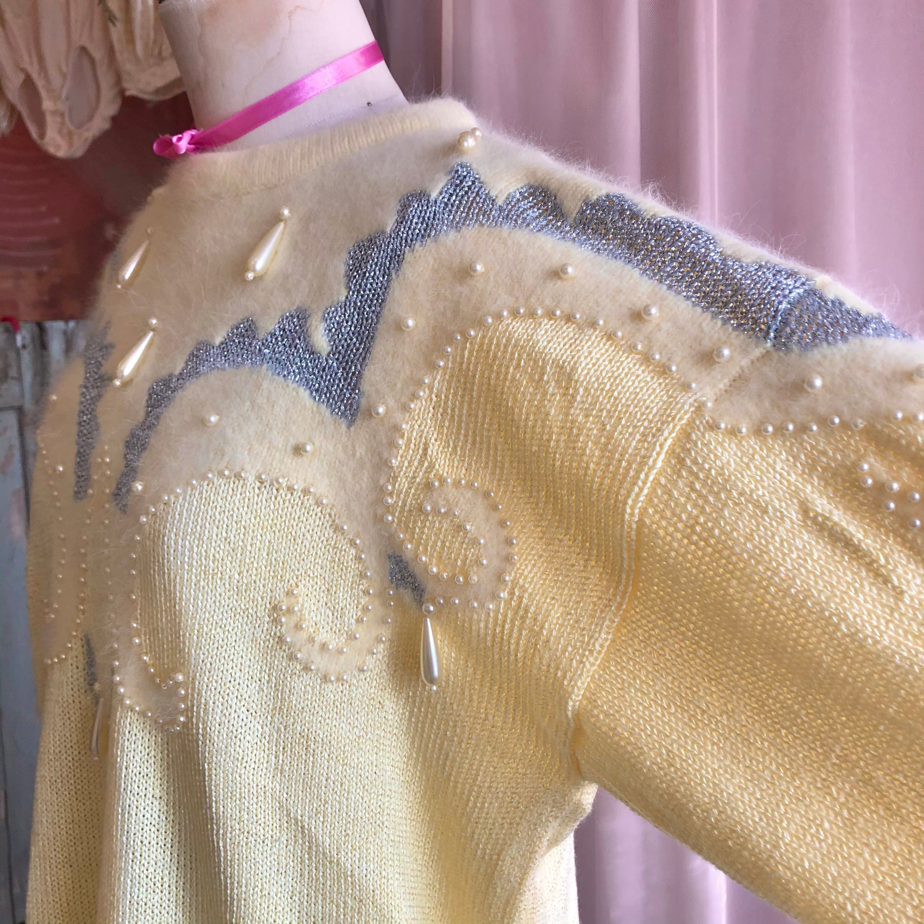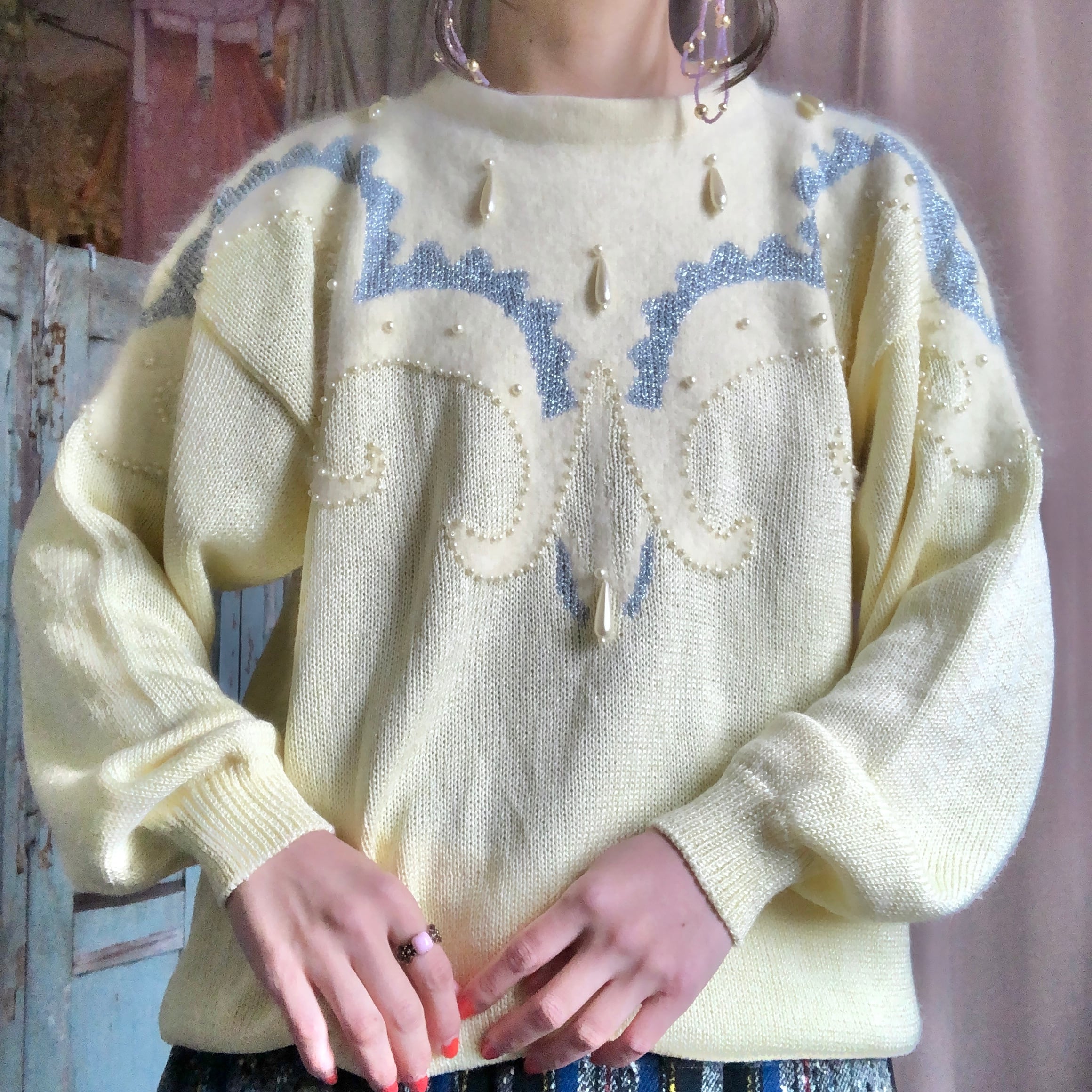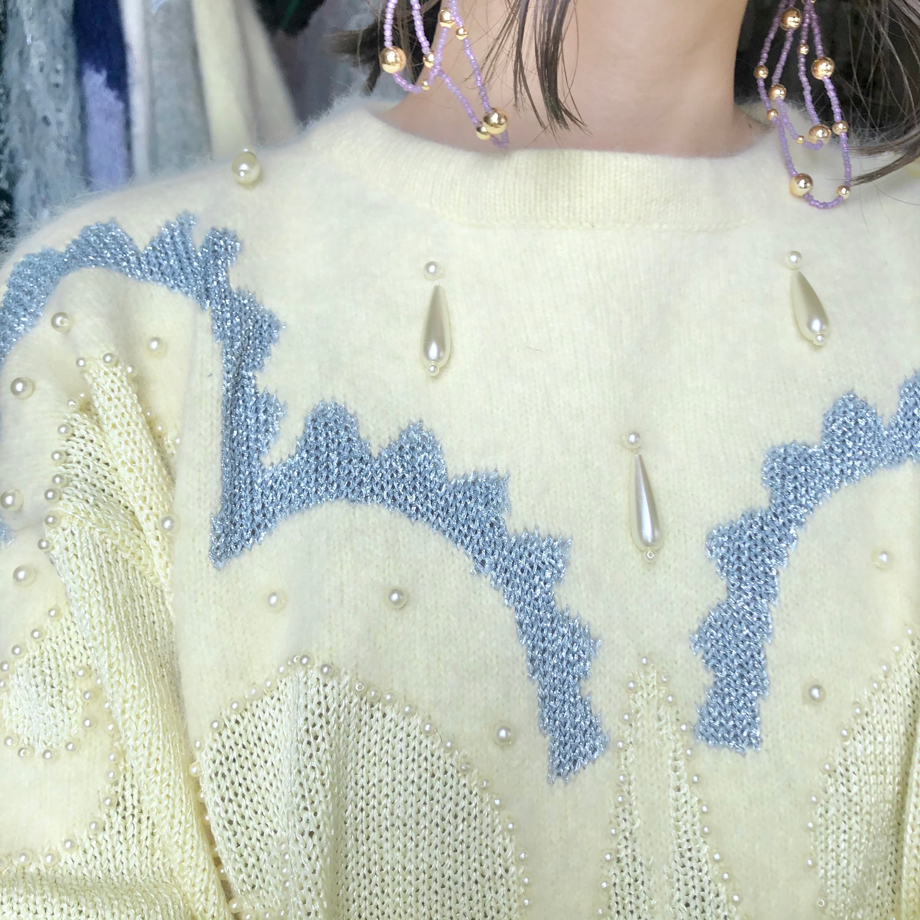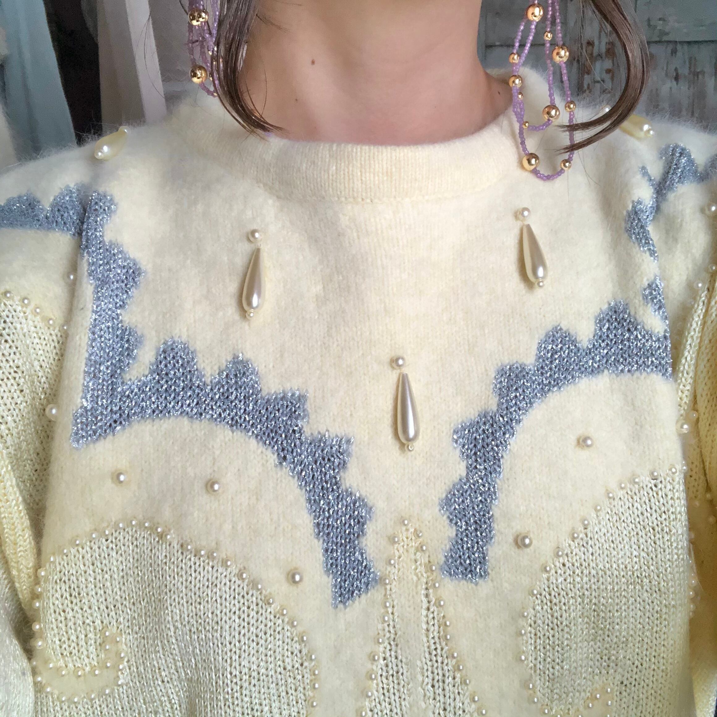 涙の雫のようなイミテーションパールの装飾やシルバーの糸でデザインされた模様が特徴的。