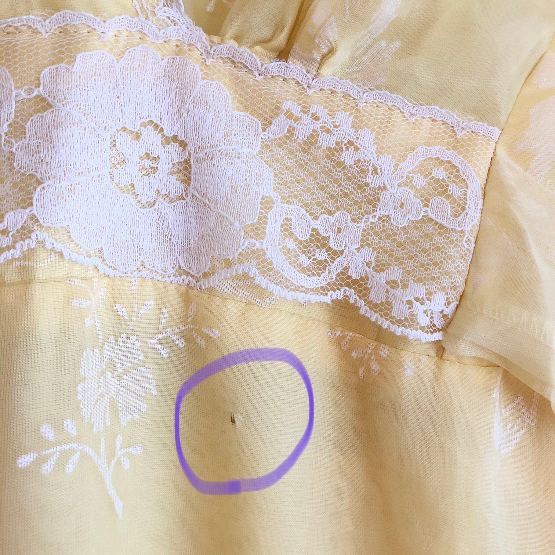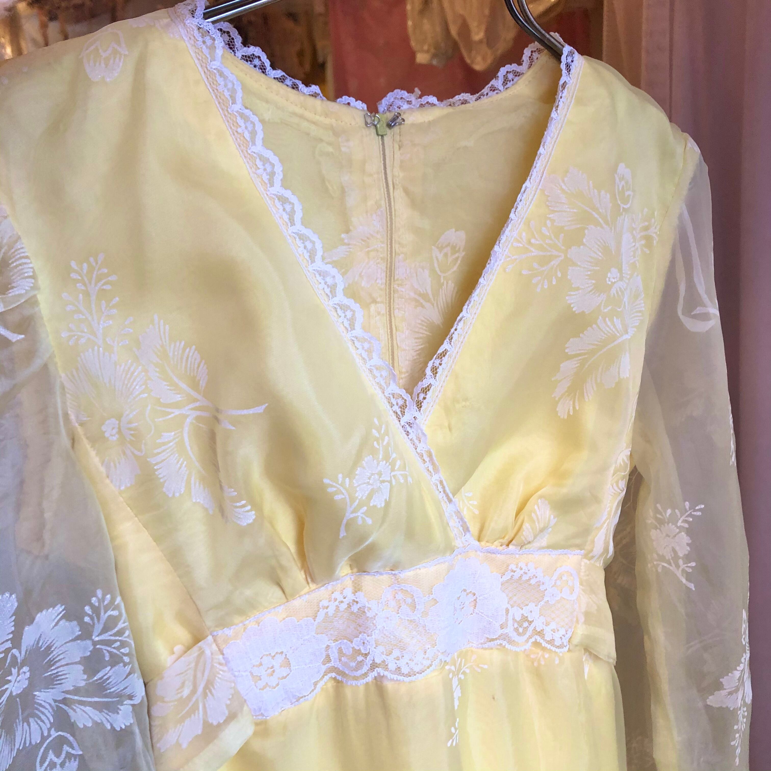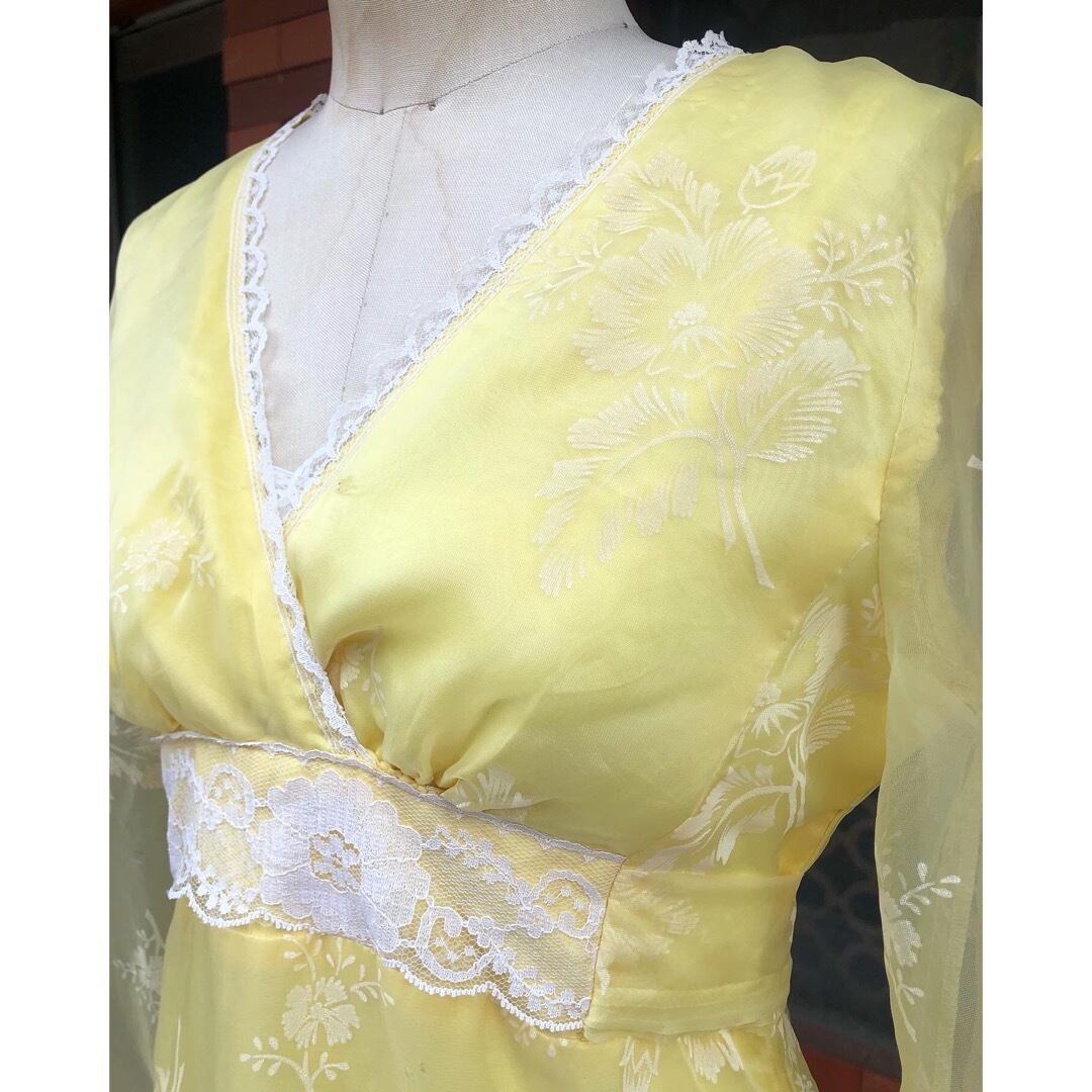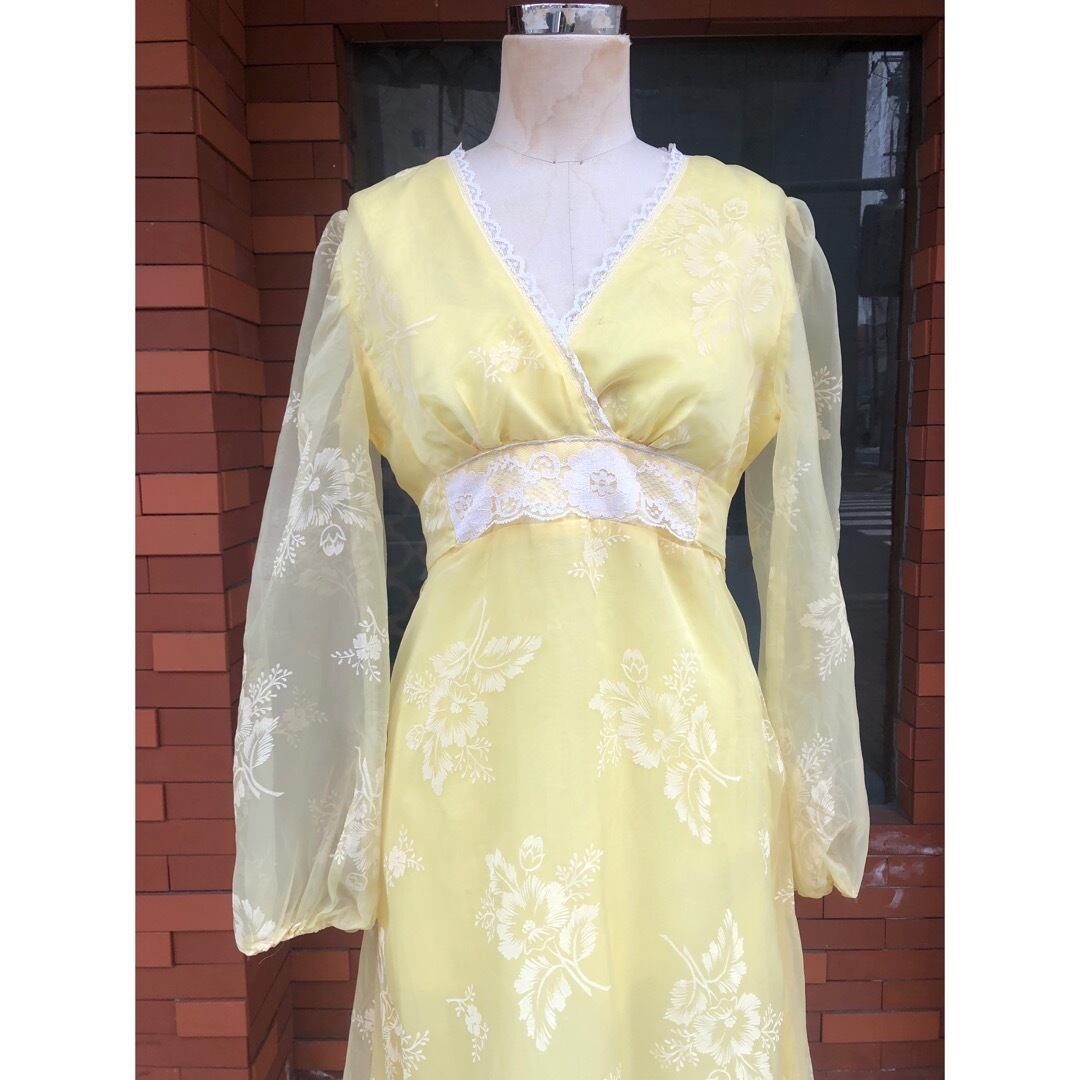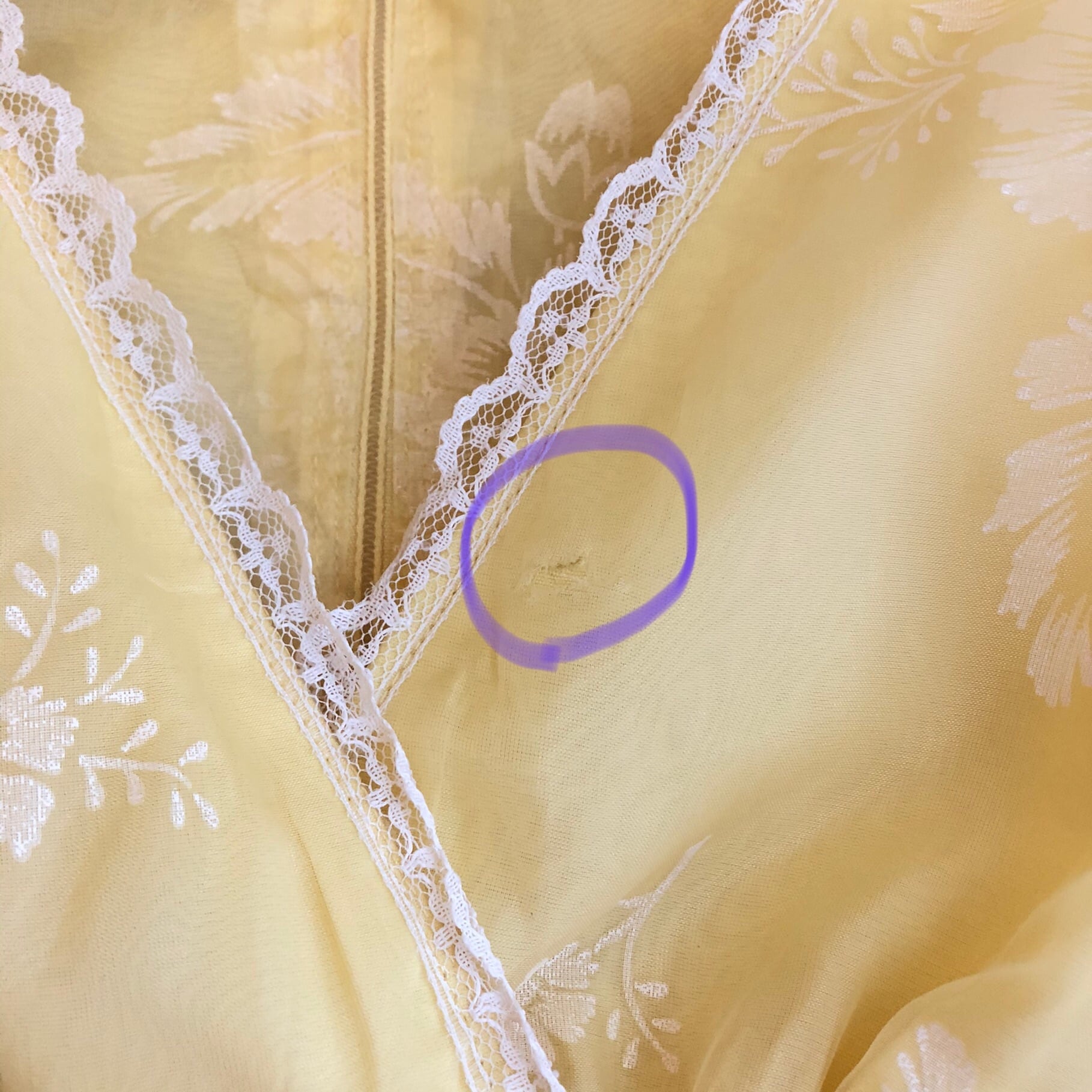 フロッキープリントのお花がぼんやり浮かび上がったイエローのシアーワンピース。