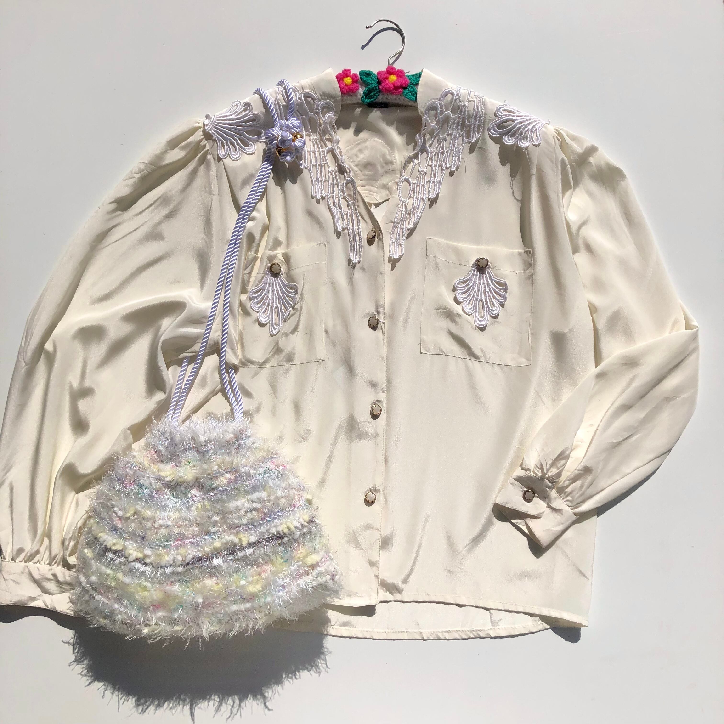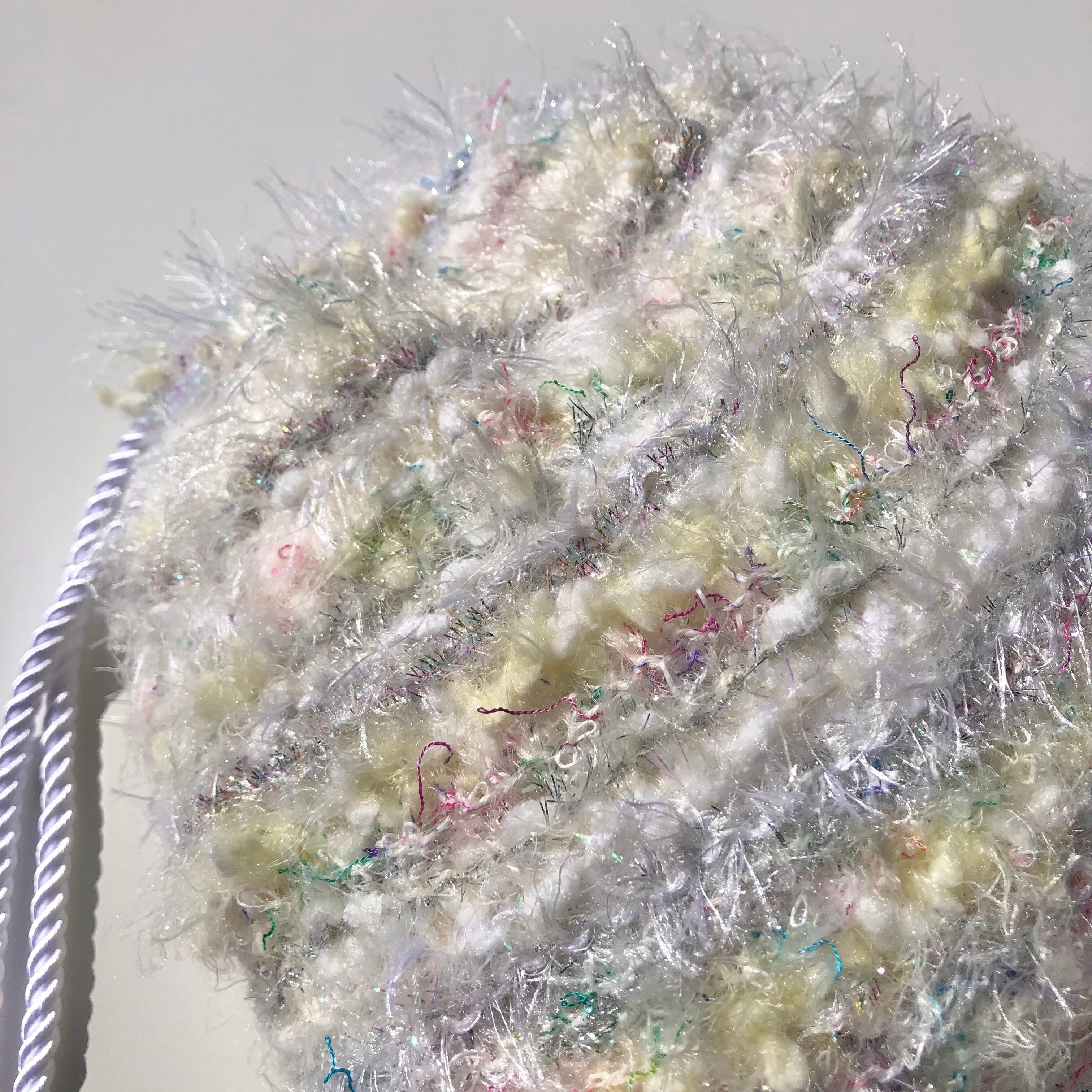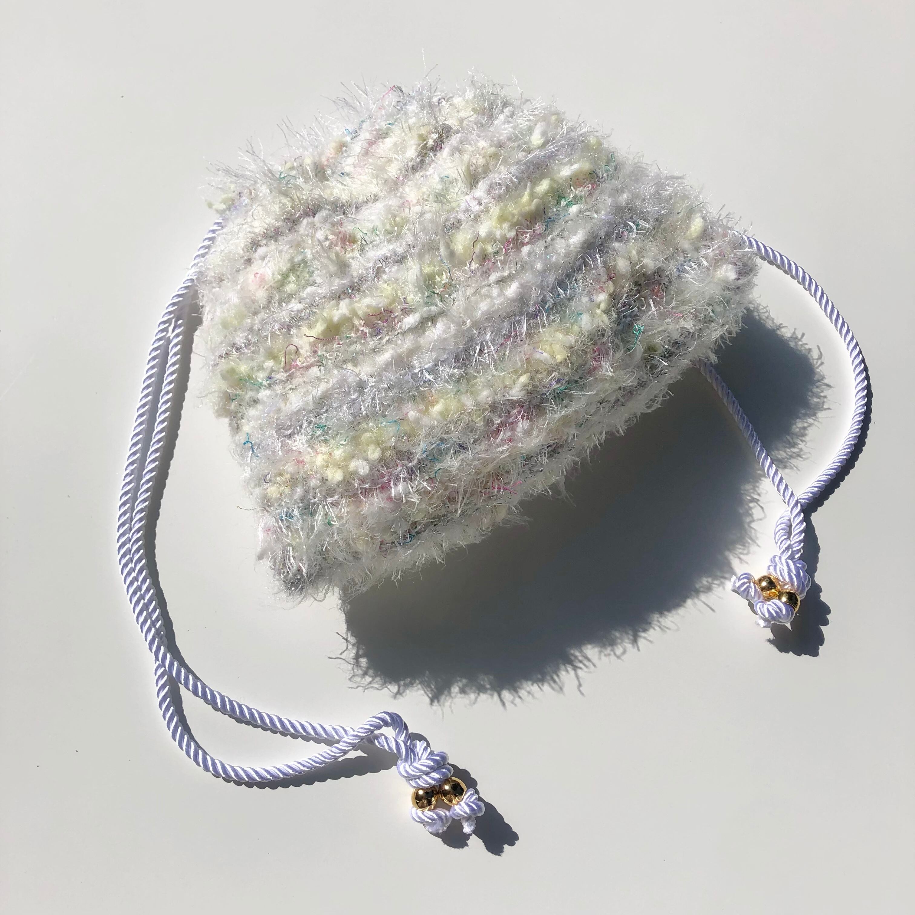 海外で仕入れた糸を使い、店主が1点ずつ編んだshe so定番のハンドニットバッグです。