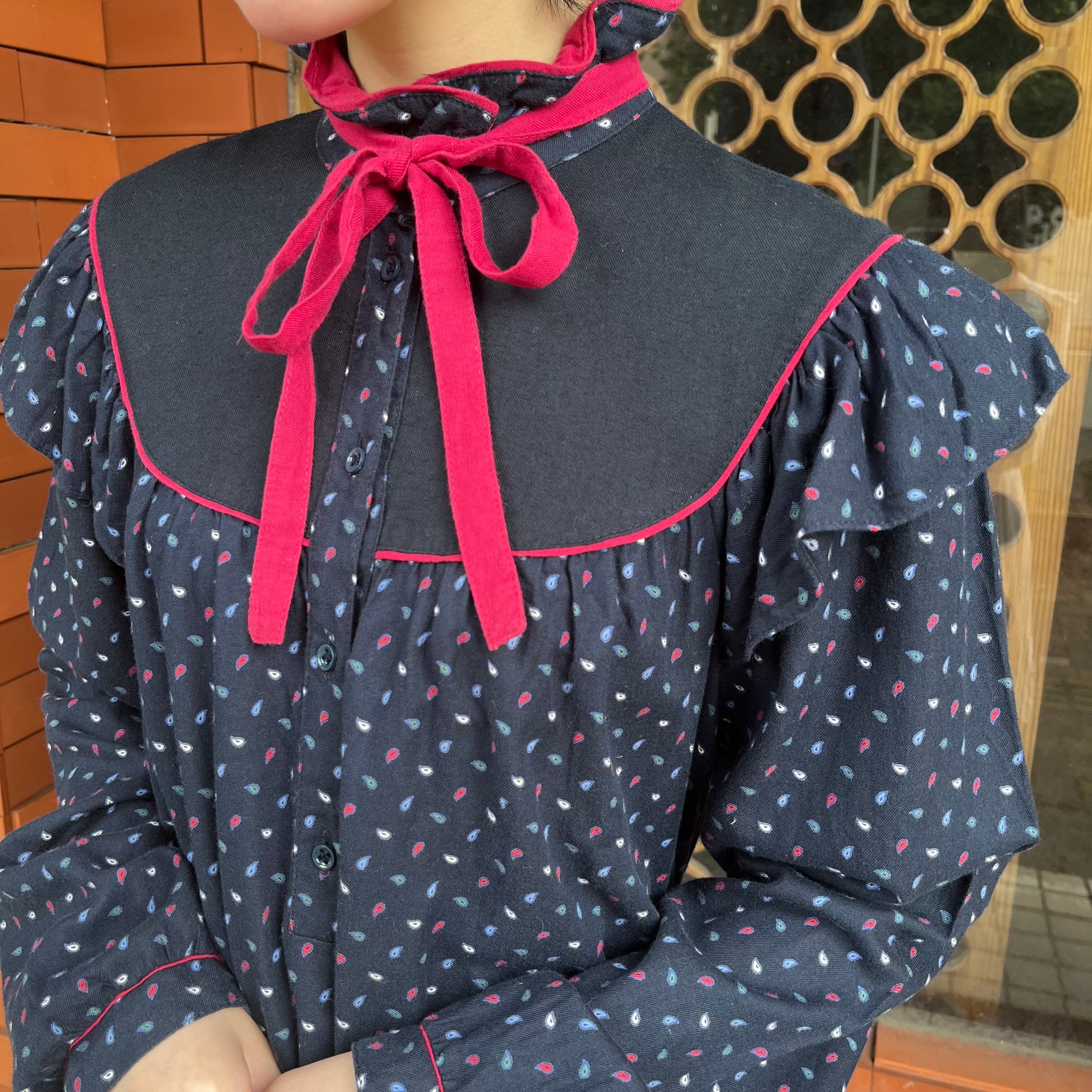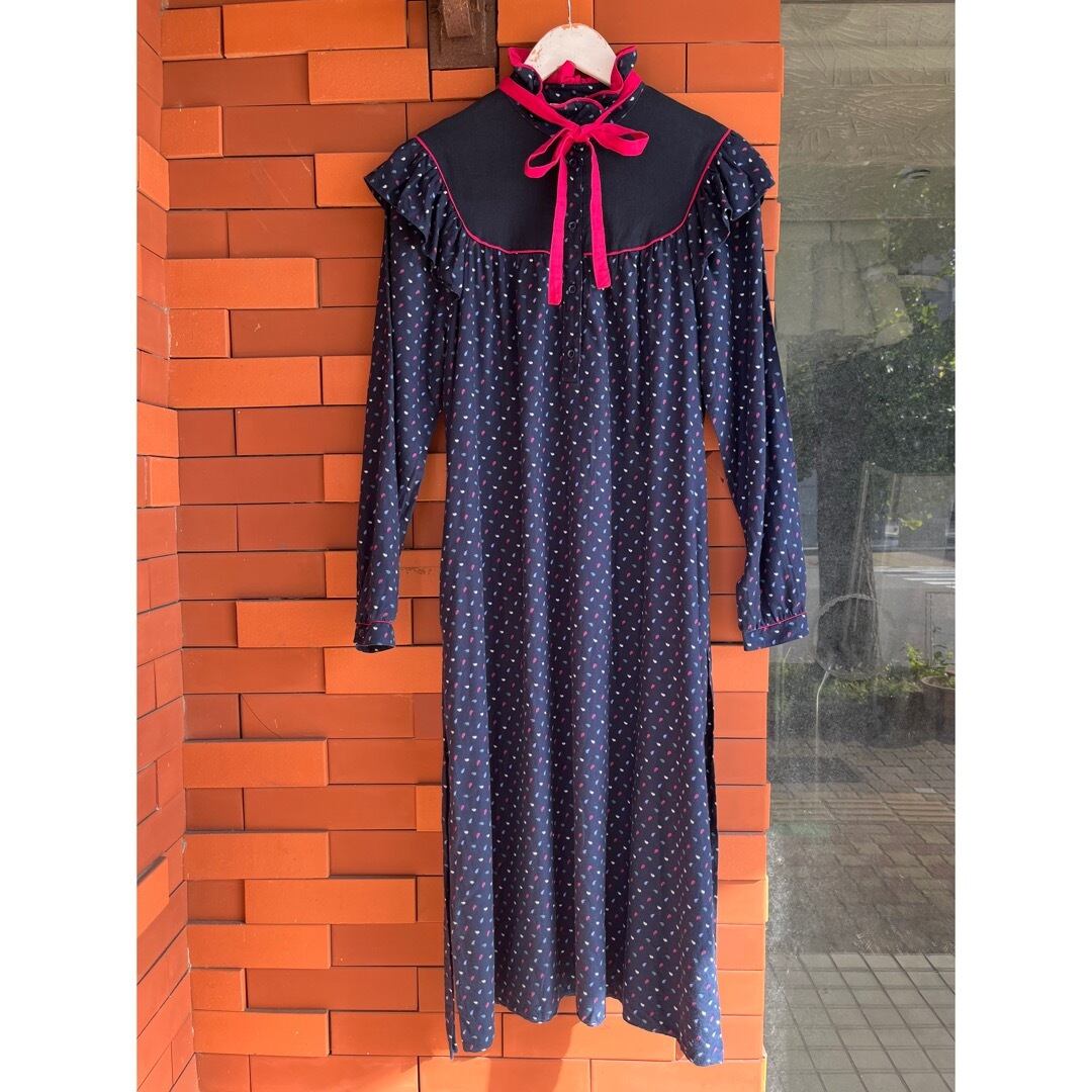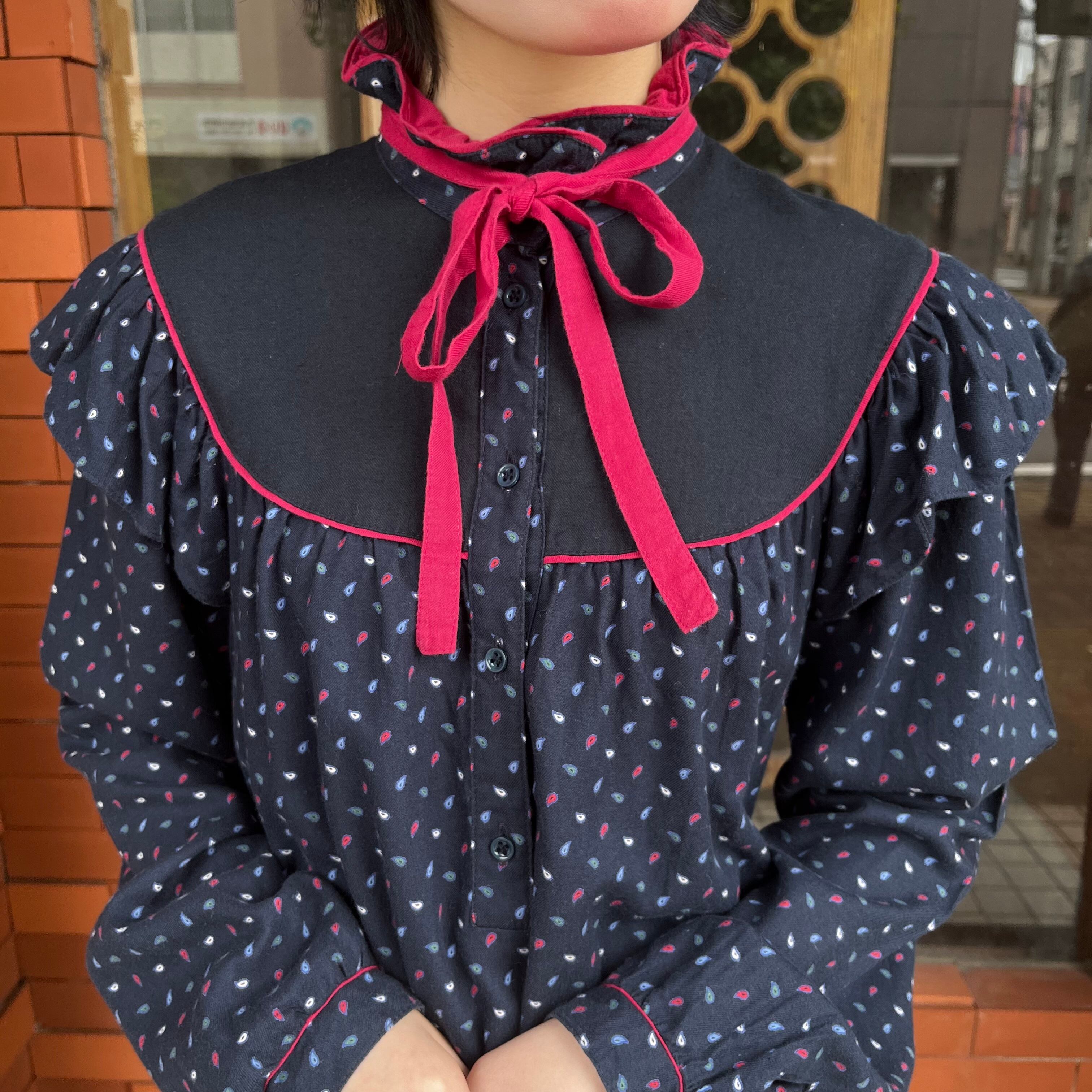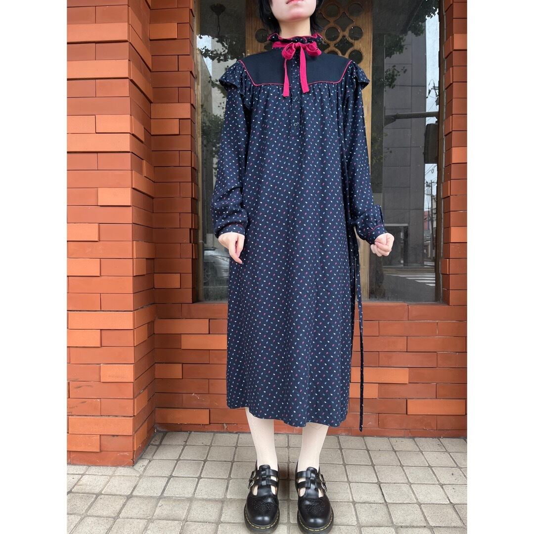 赤いパイピングやリボンタイがポイントになり目を惹くお品。