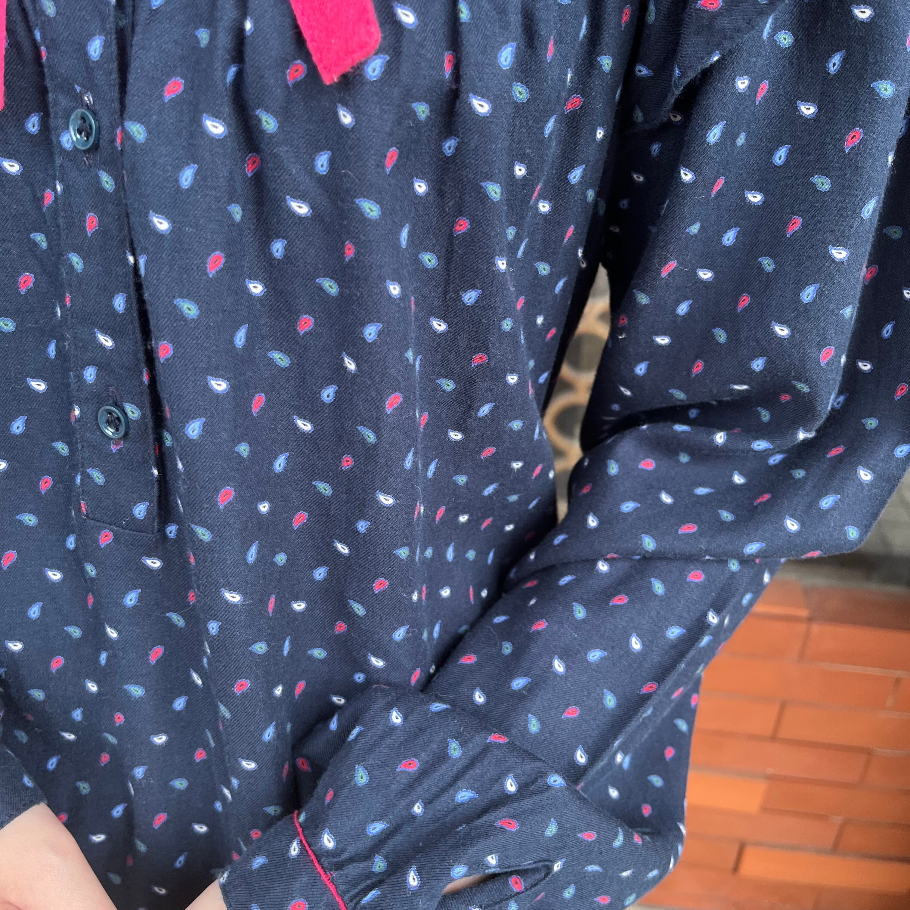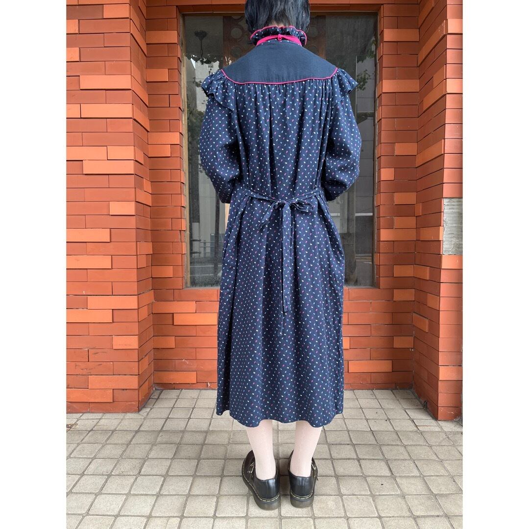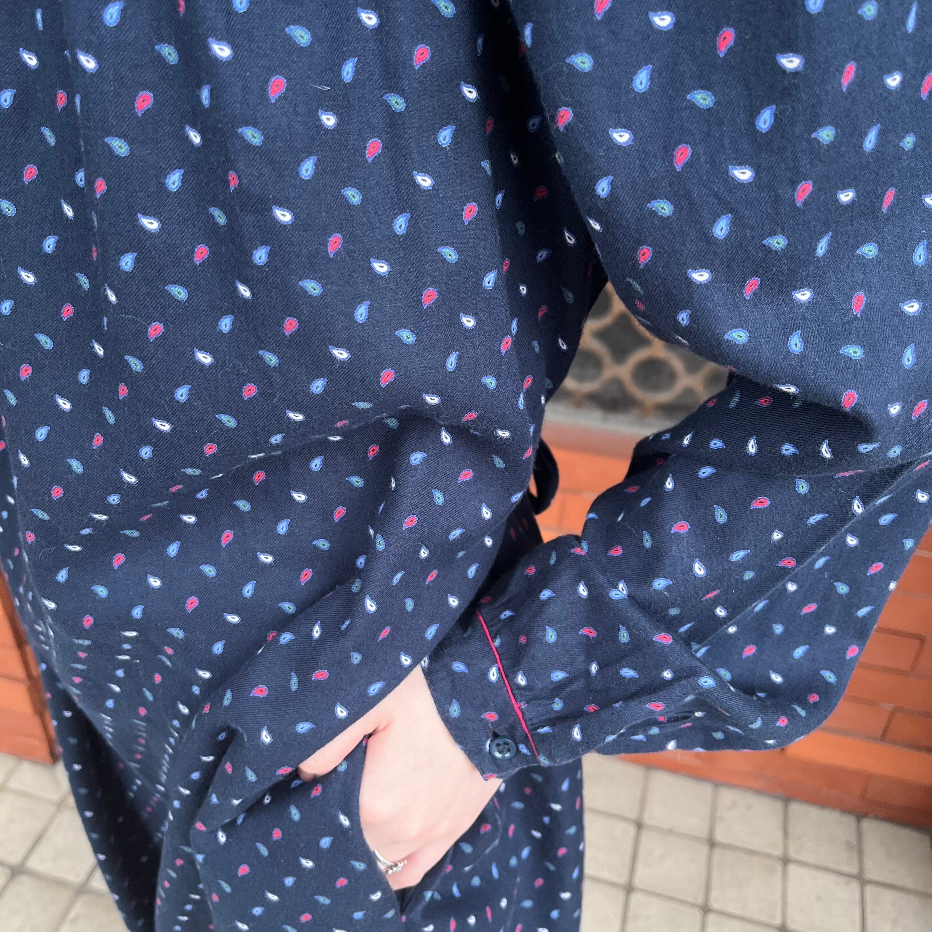 ネイビーのペイズリー柄ワンピース.
