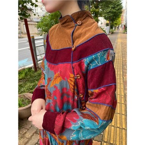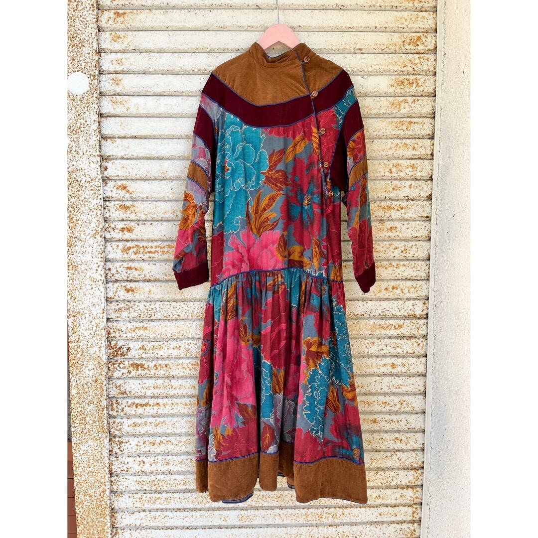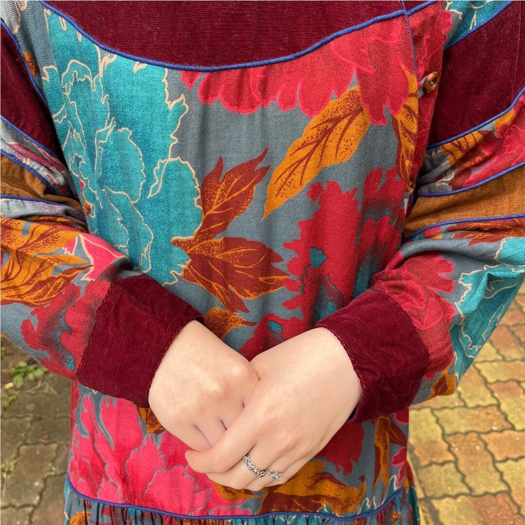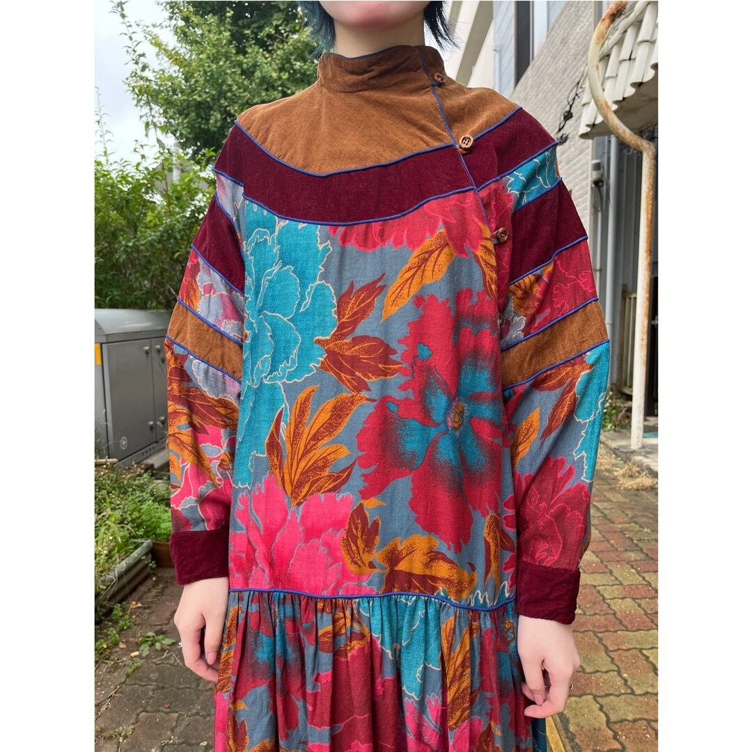 大花柄の、おそらく椿のお花が咲いたワンピース。一枚で存在感を放ちます。