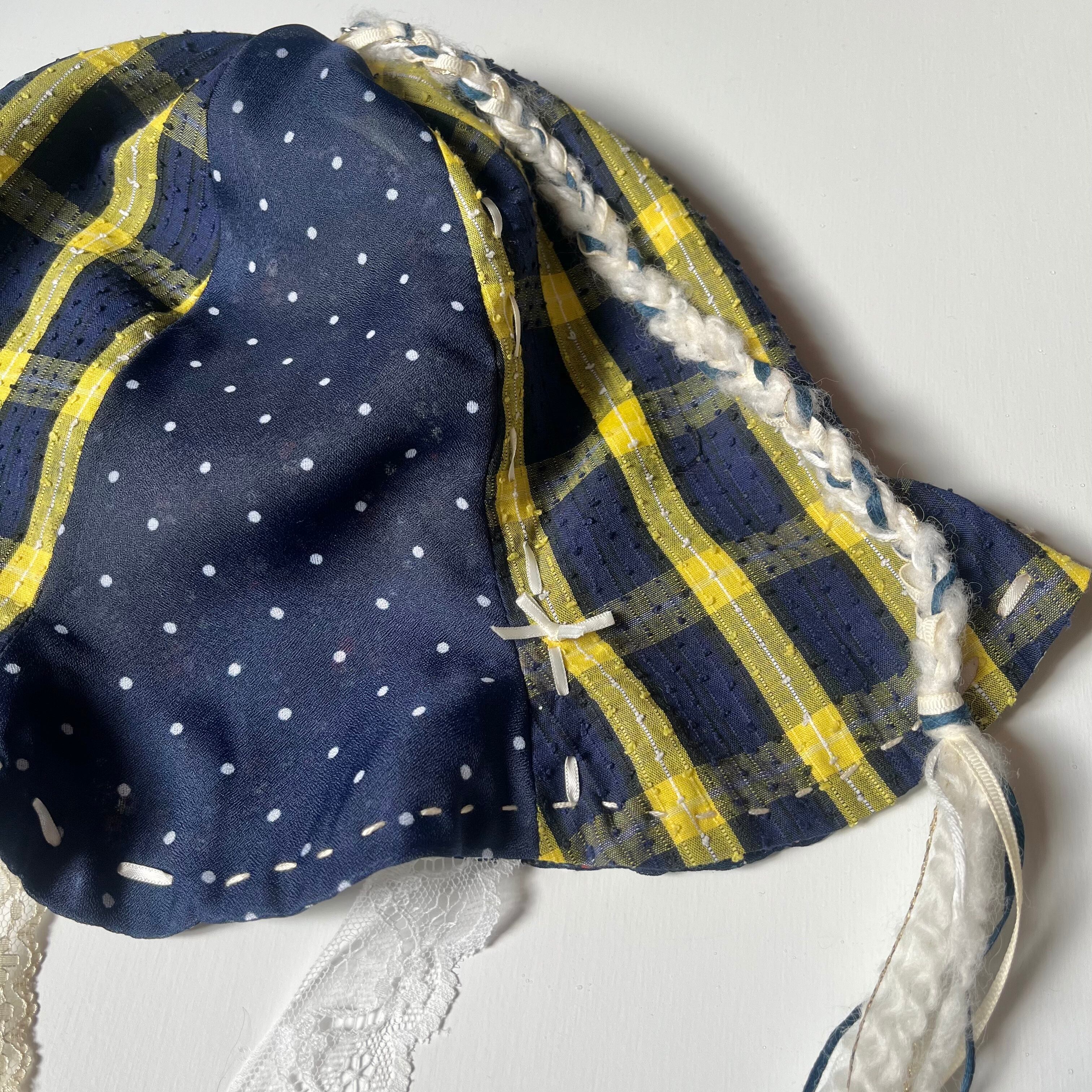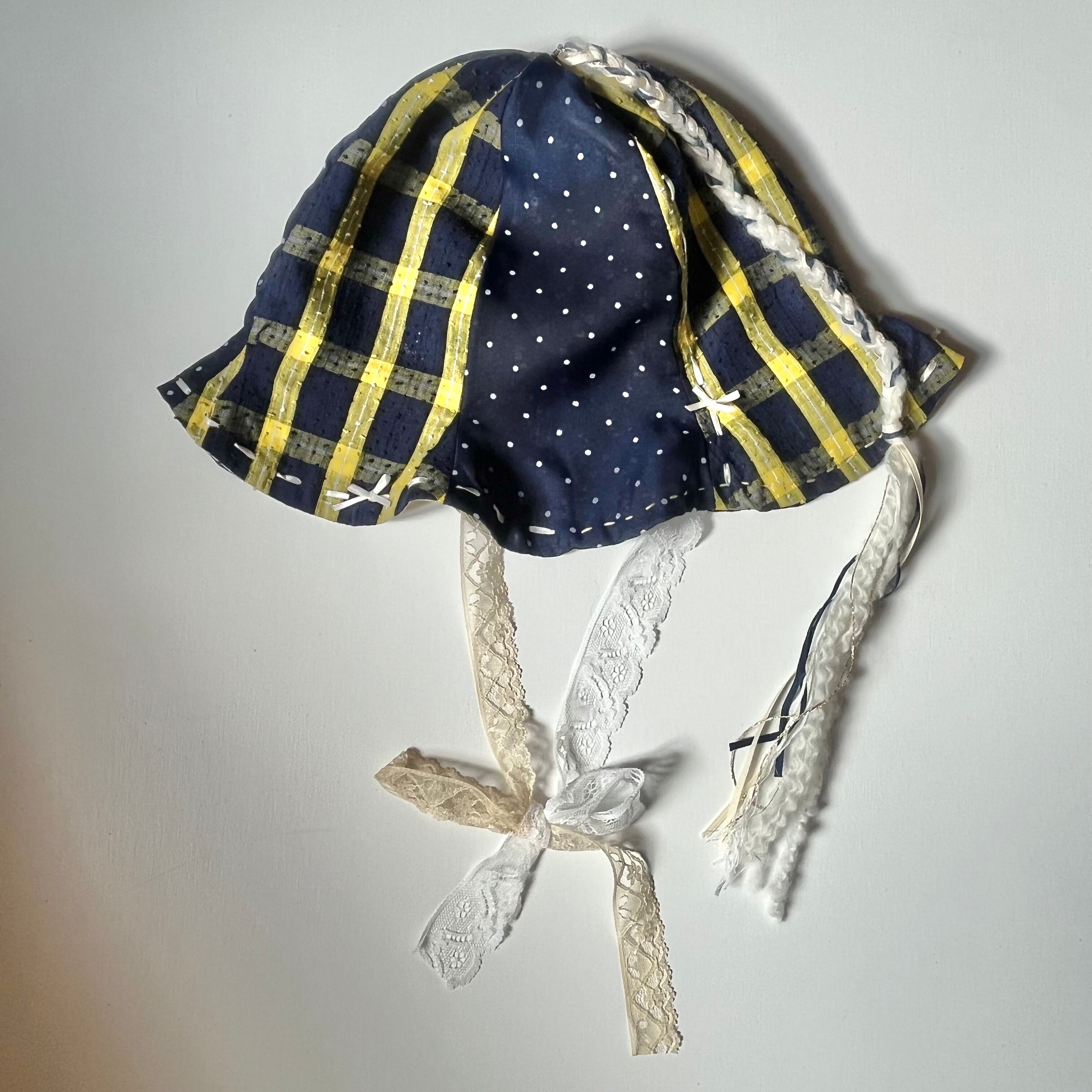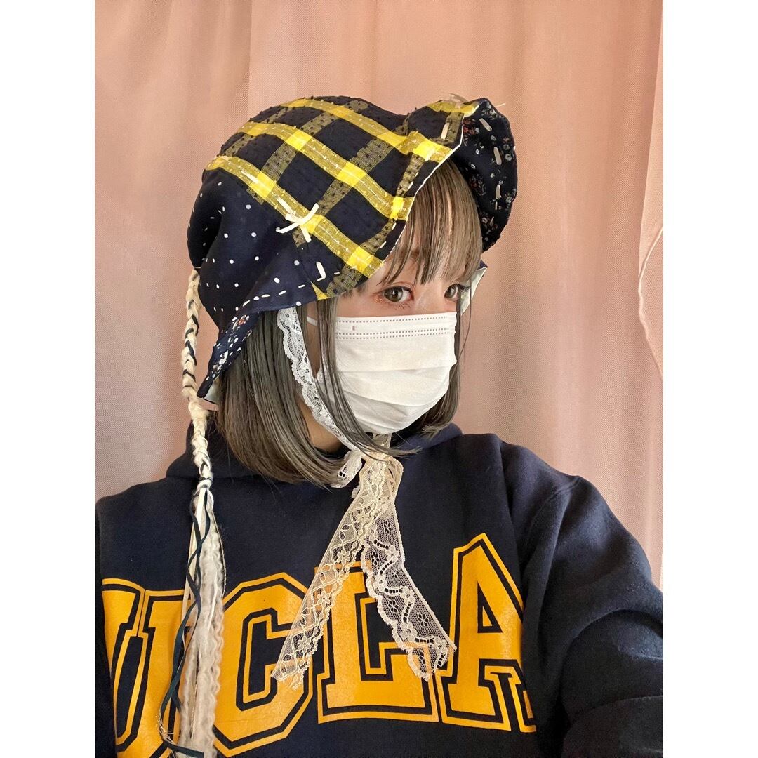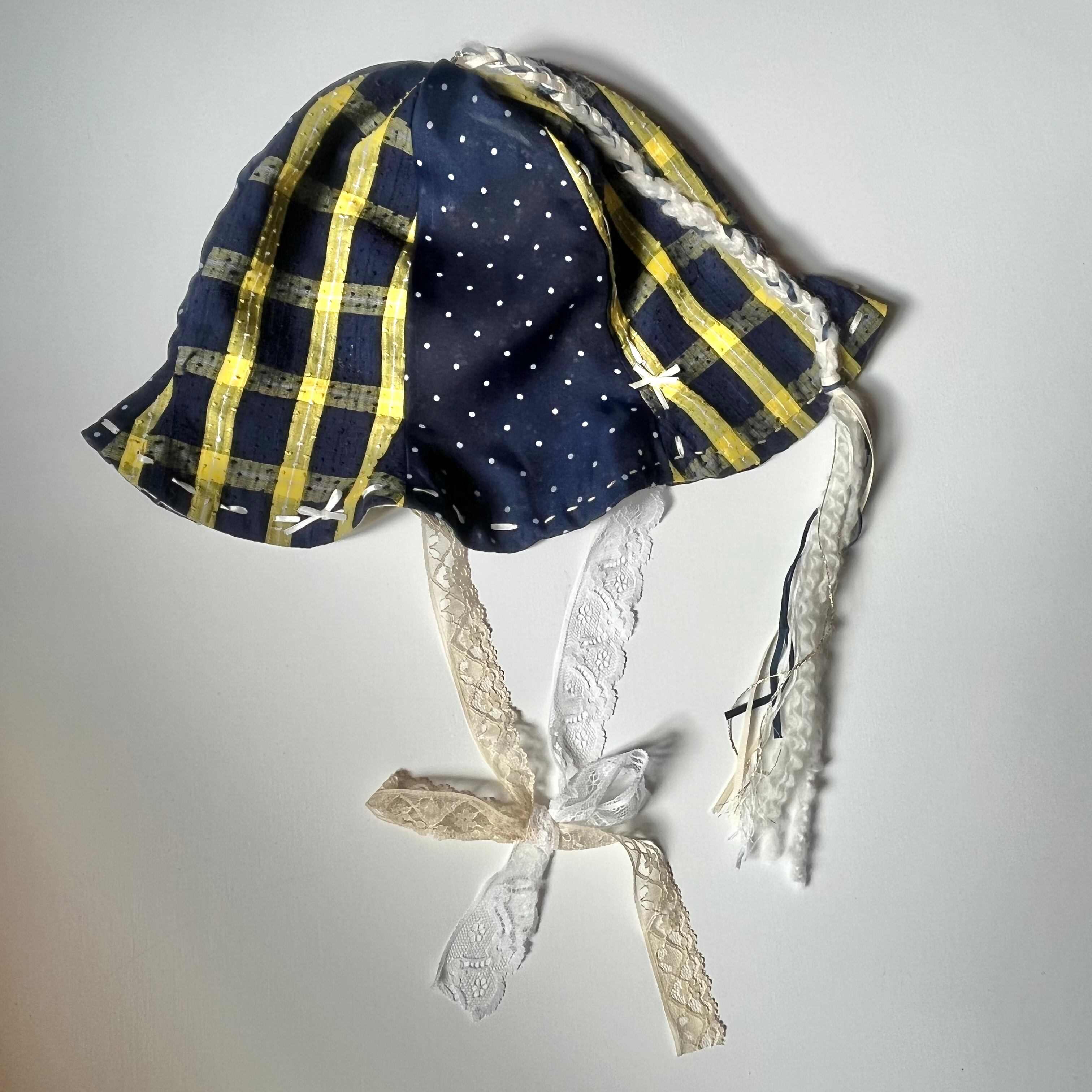 non≒senceとshe soのコラボアイテムです。she soの古着からうまれた古布たちをつかってできた一点もののお帽子です