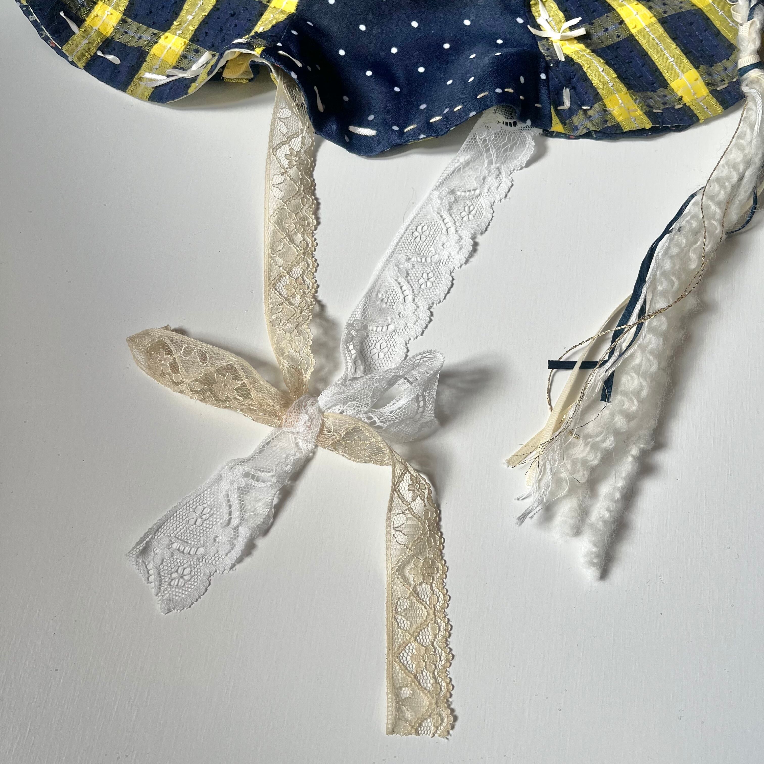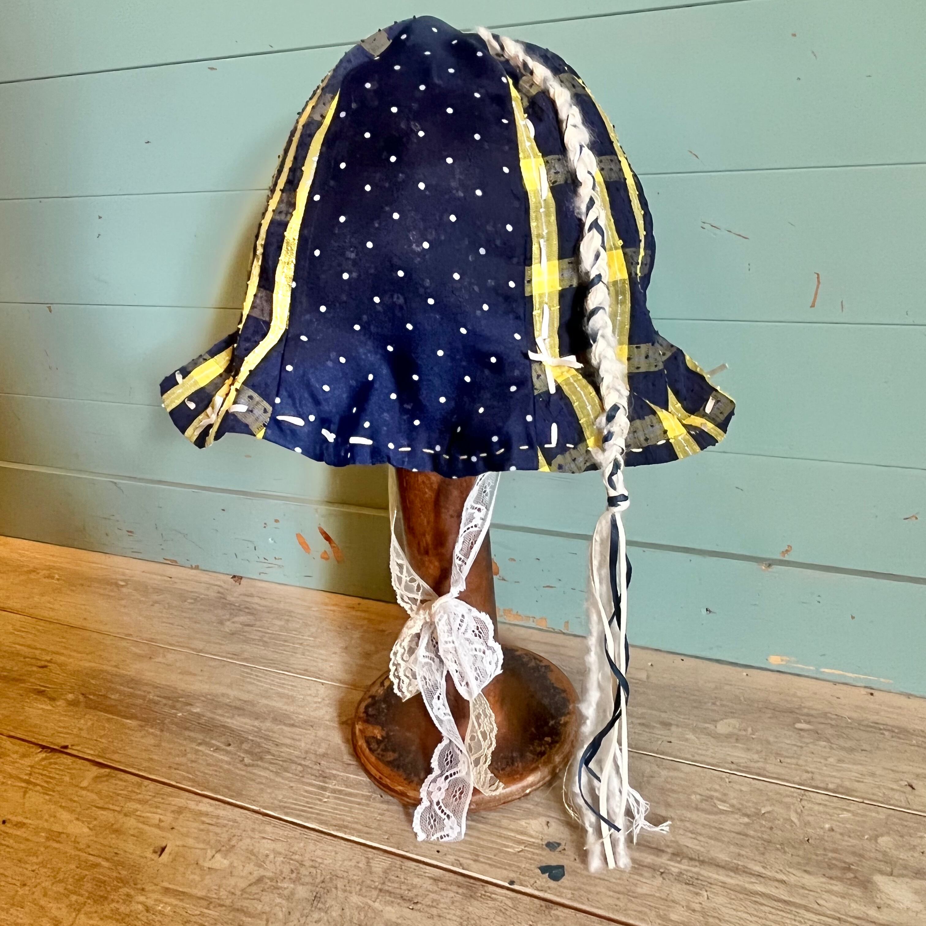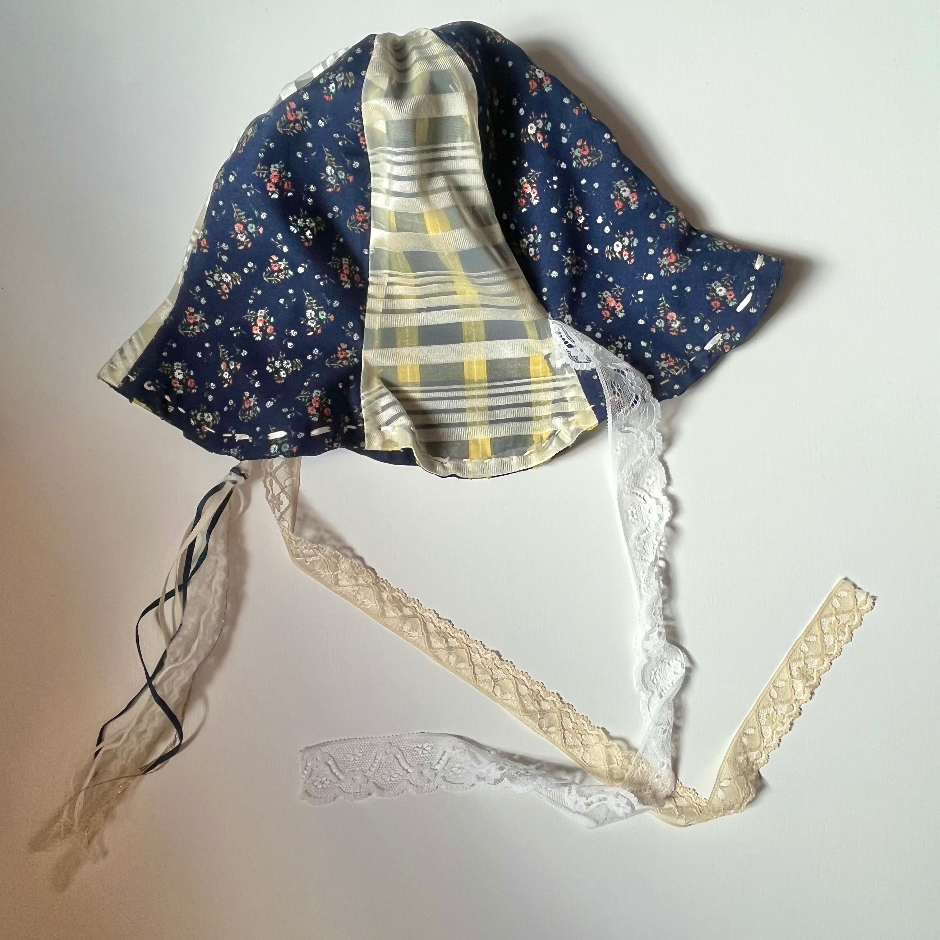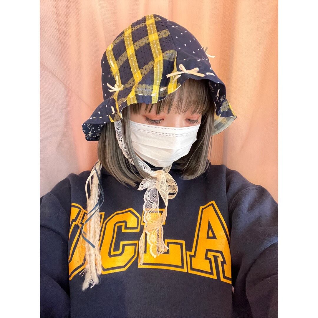 non≒senceとshe soのコラボアイテムです。she soの古着からうまれた古布たちをつかってできた一点もののお帽子です