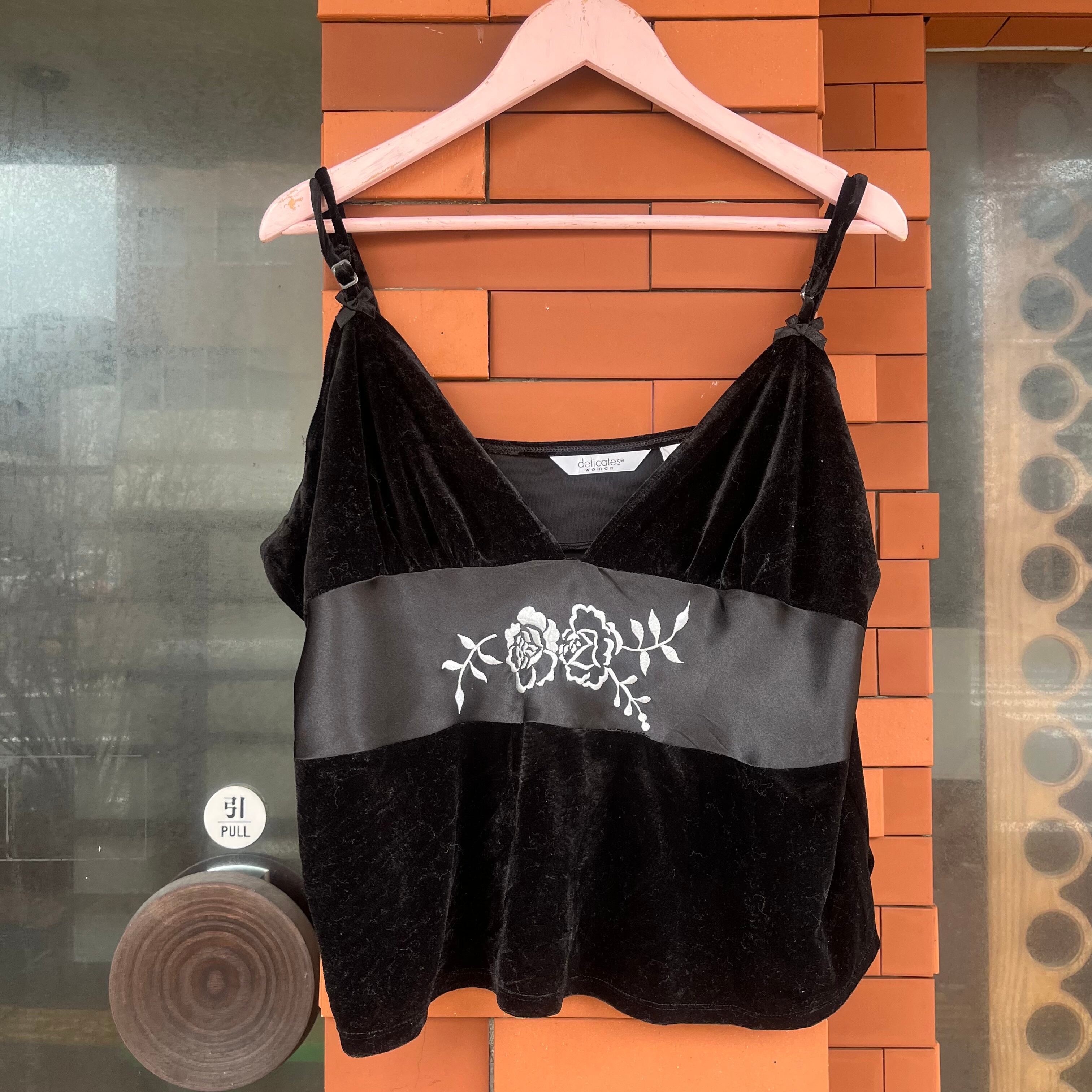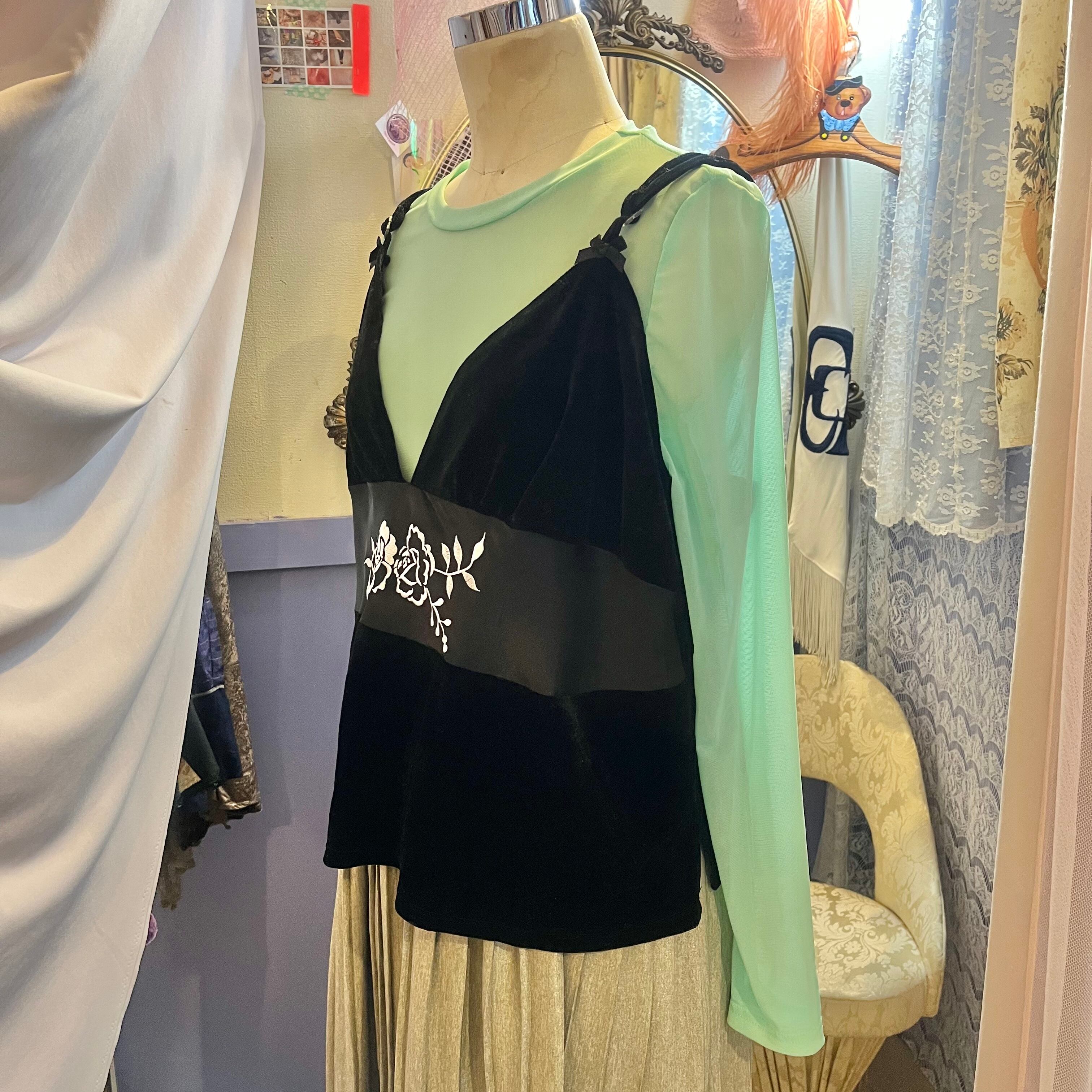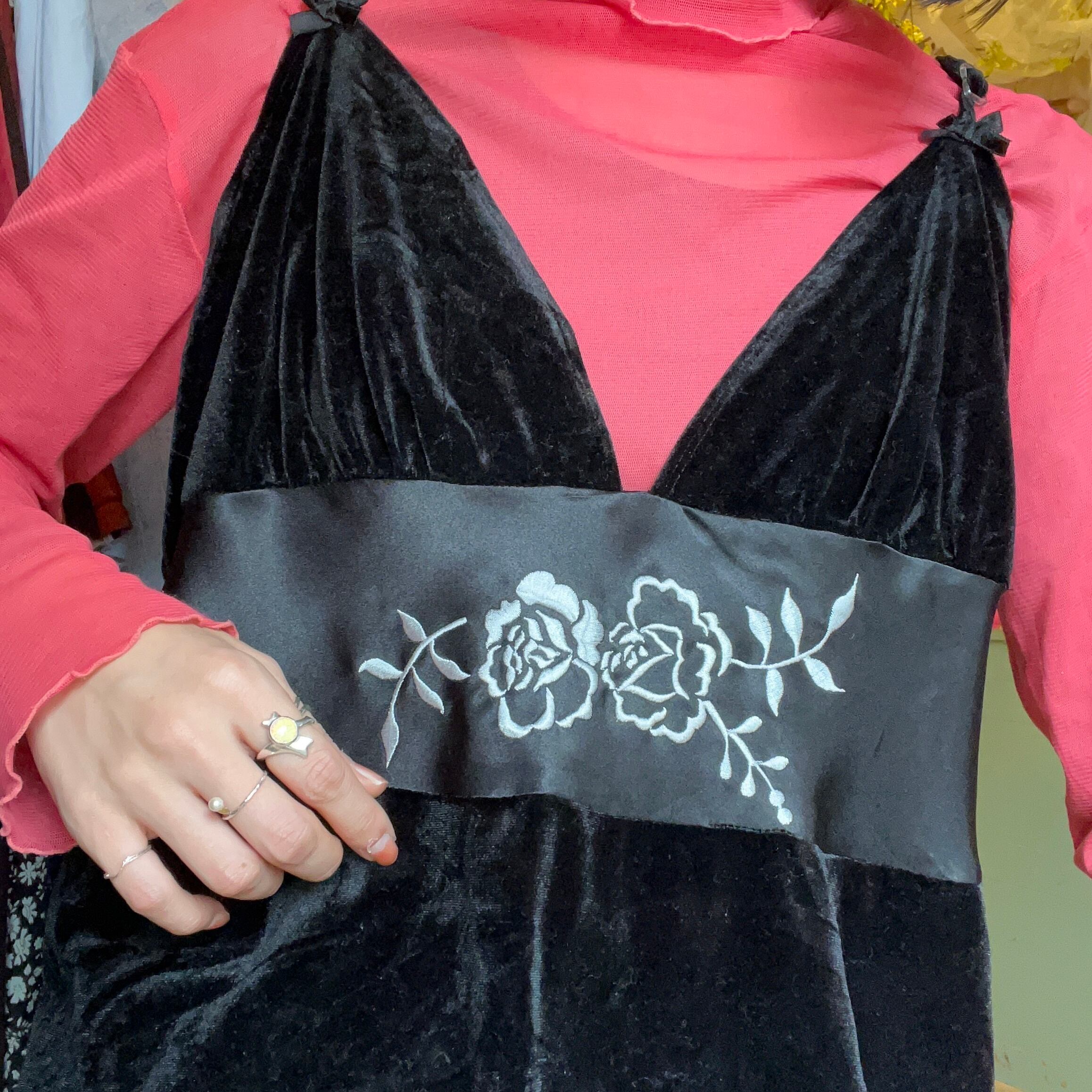 真ん中のお花刺繍と肩紐についた小さなリボンがポイント。