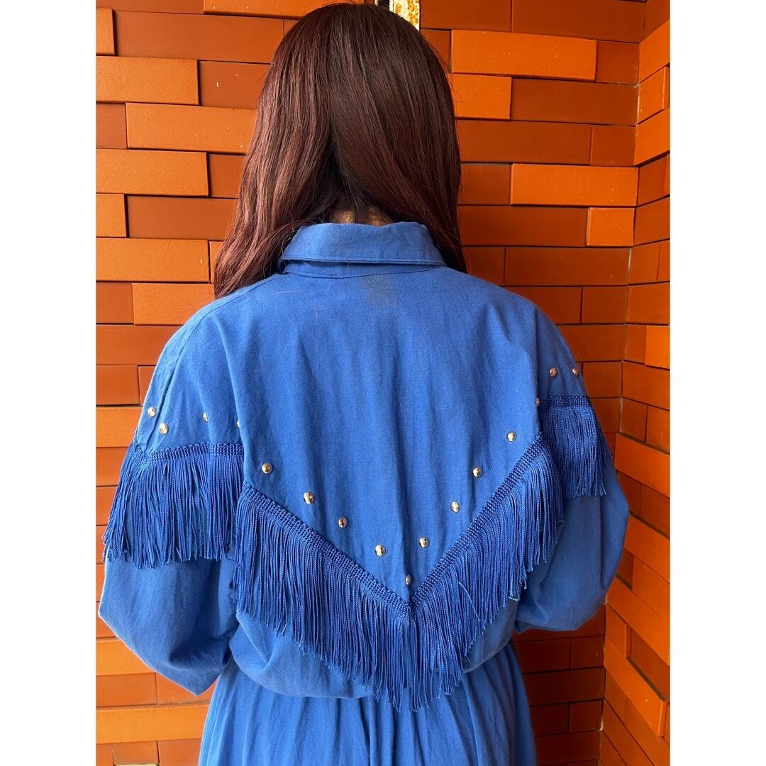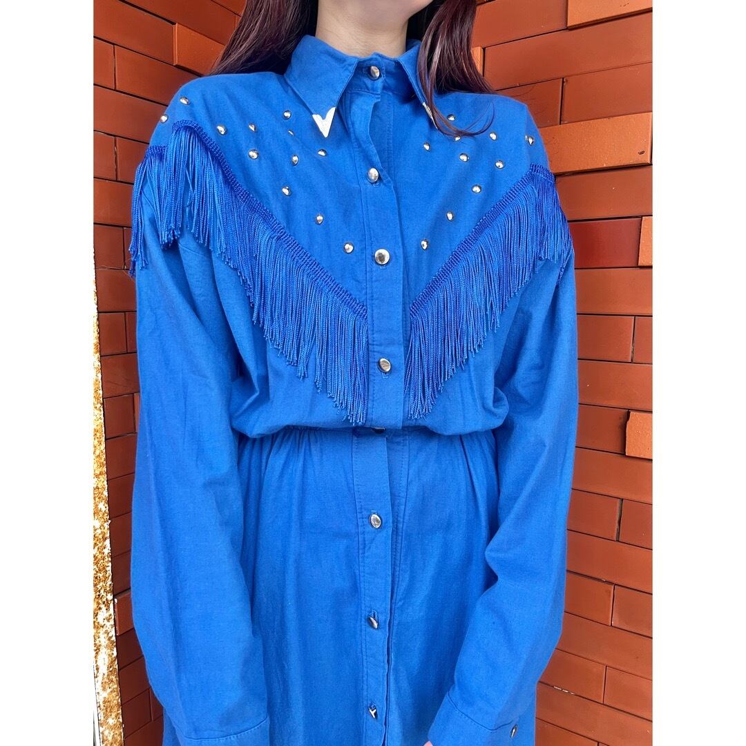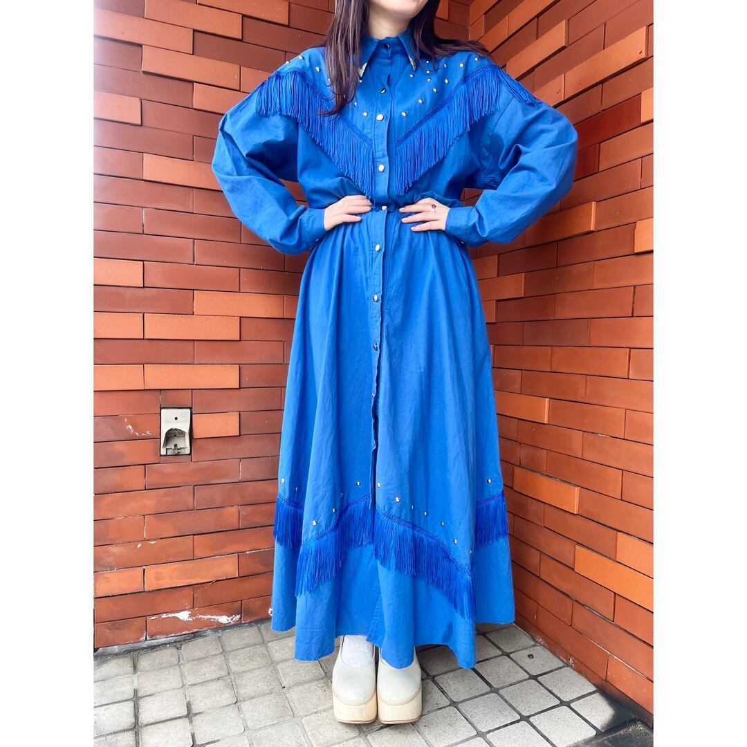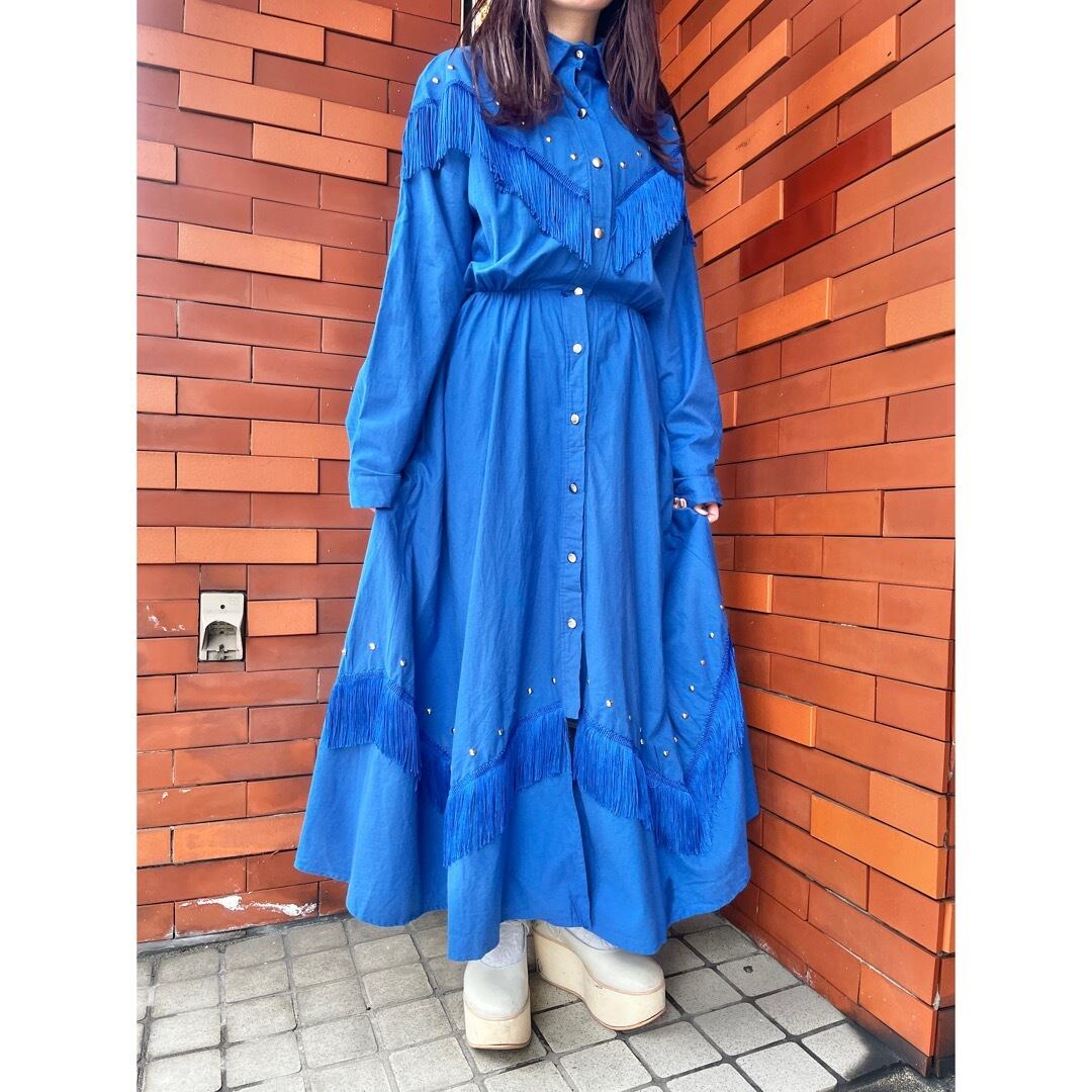 目の覚めるようなブルーにスタッズやフリンジがポイントに◎