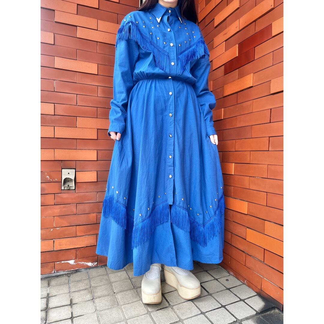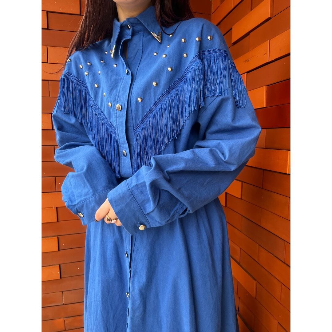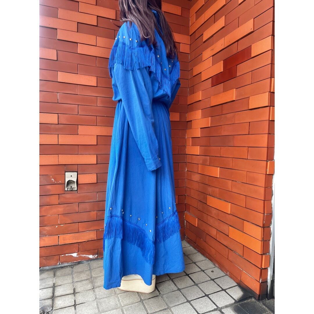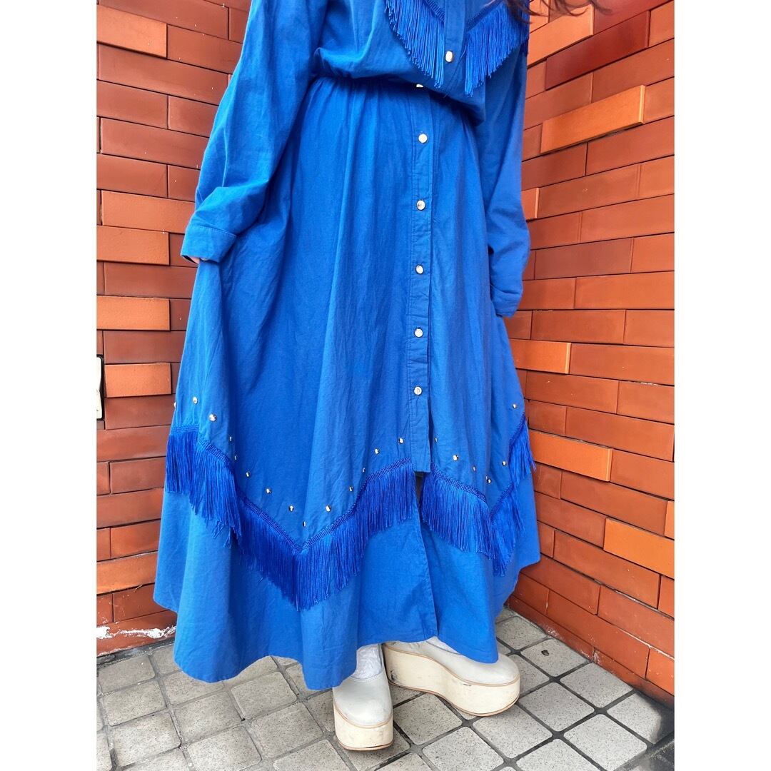 目の覚めるようなブルーにスタッズやフリンジがポイントに◎