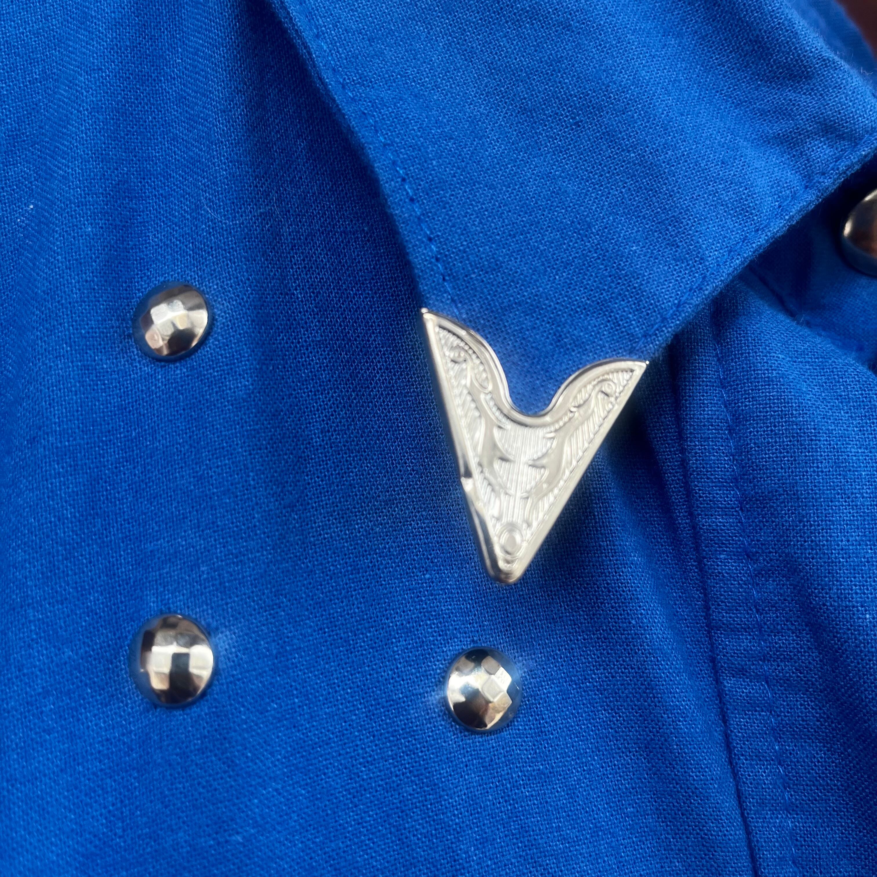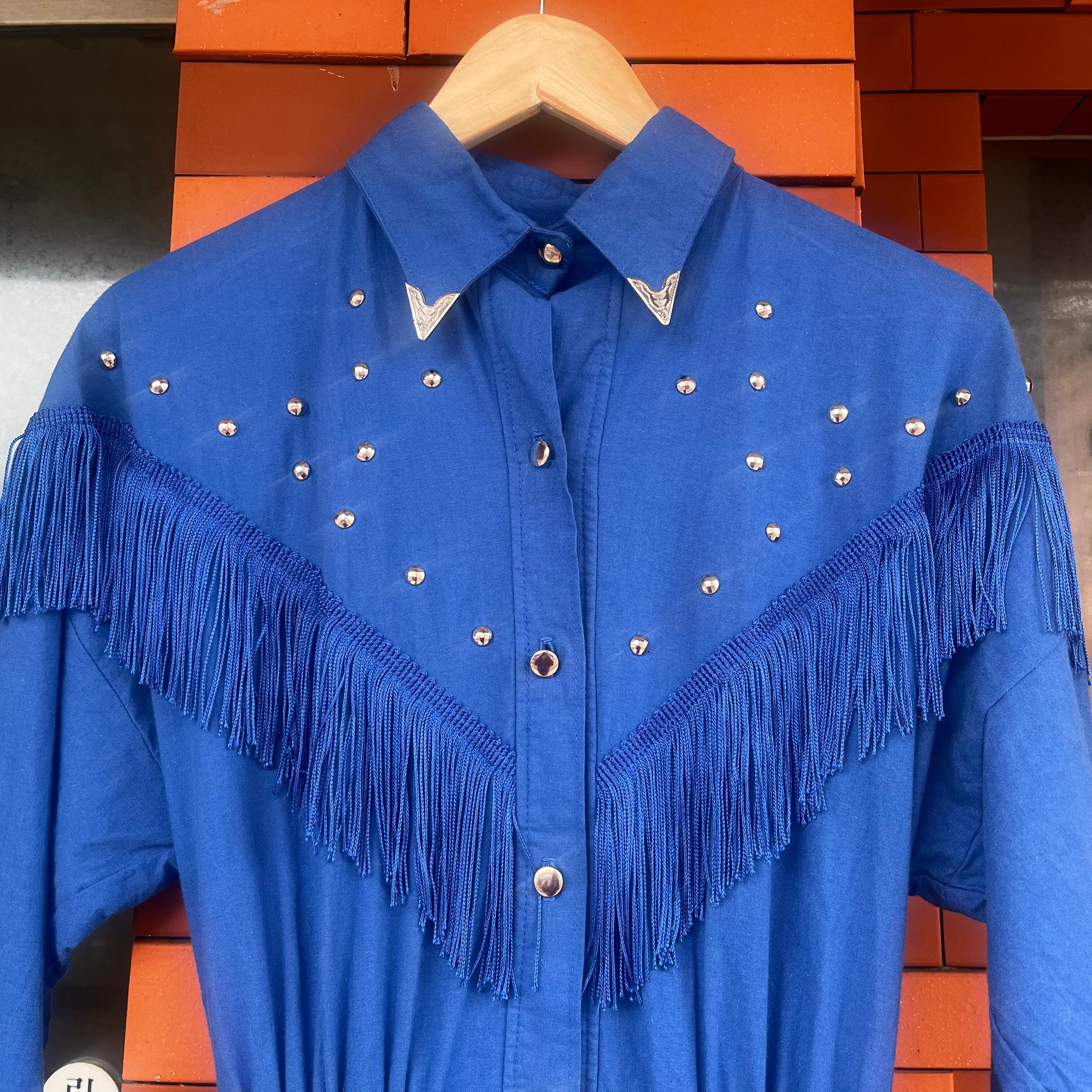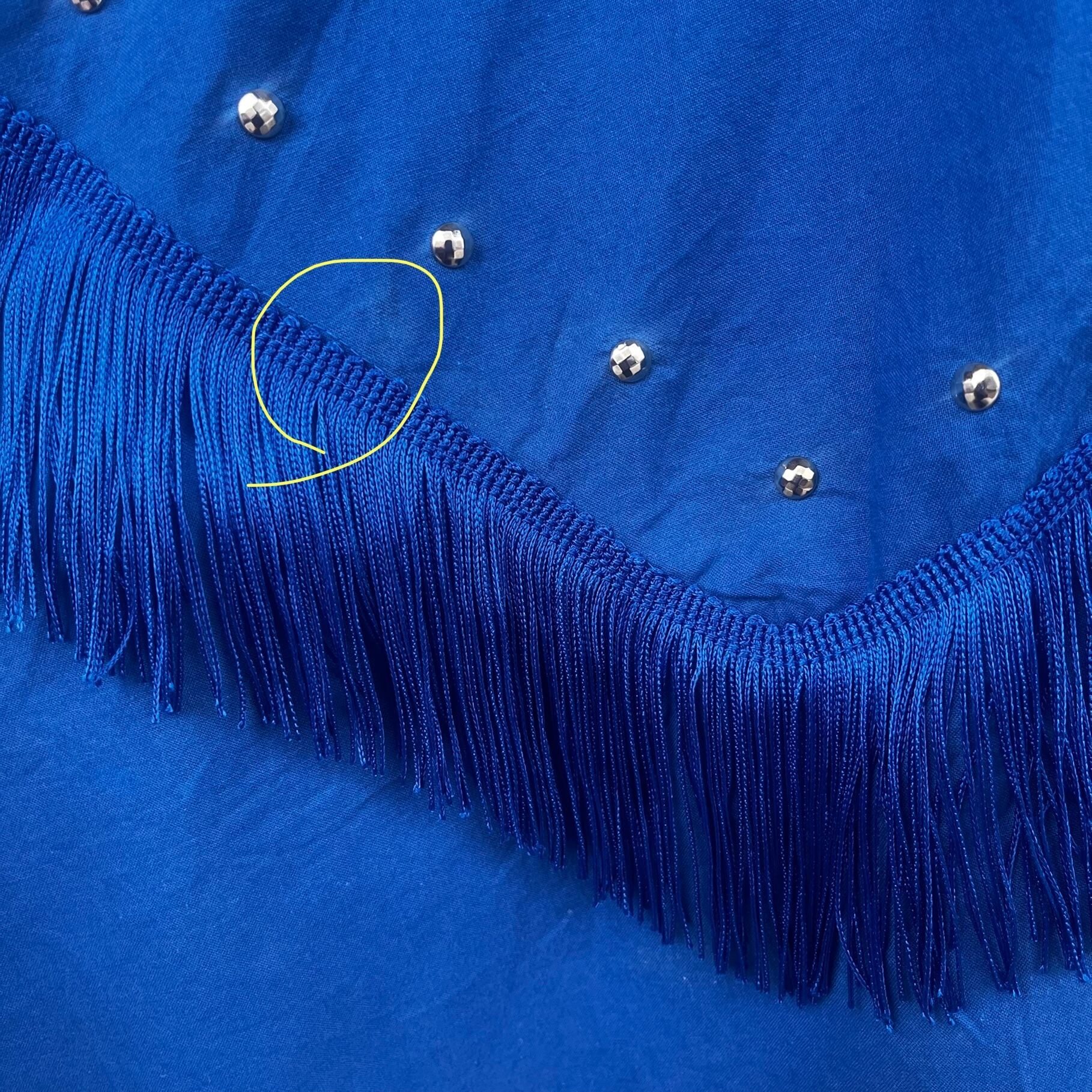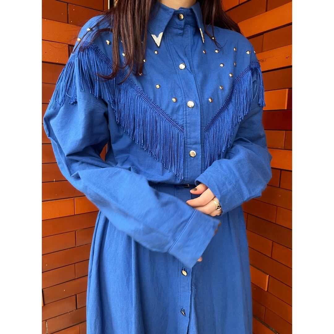 目の覚めるようなブルーにスタッズやフリンジがポイントに◎