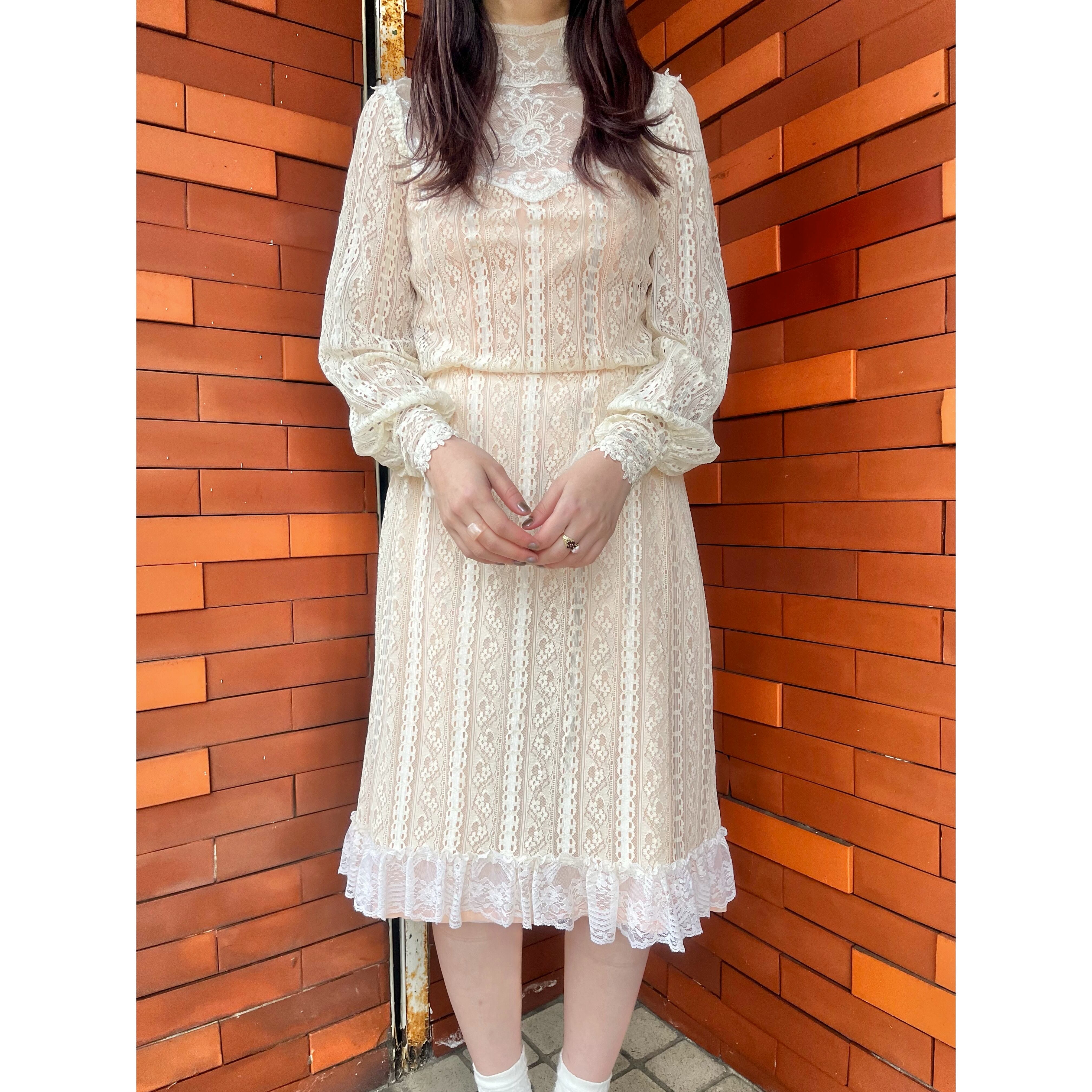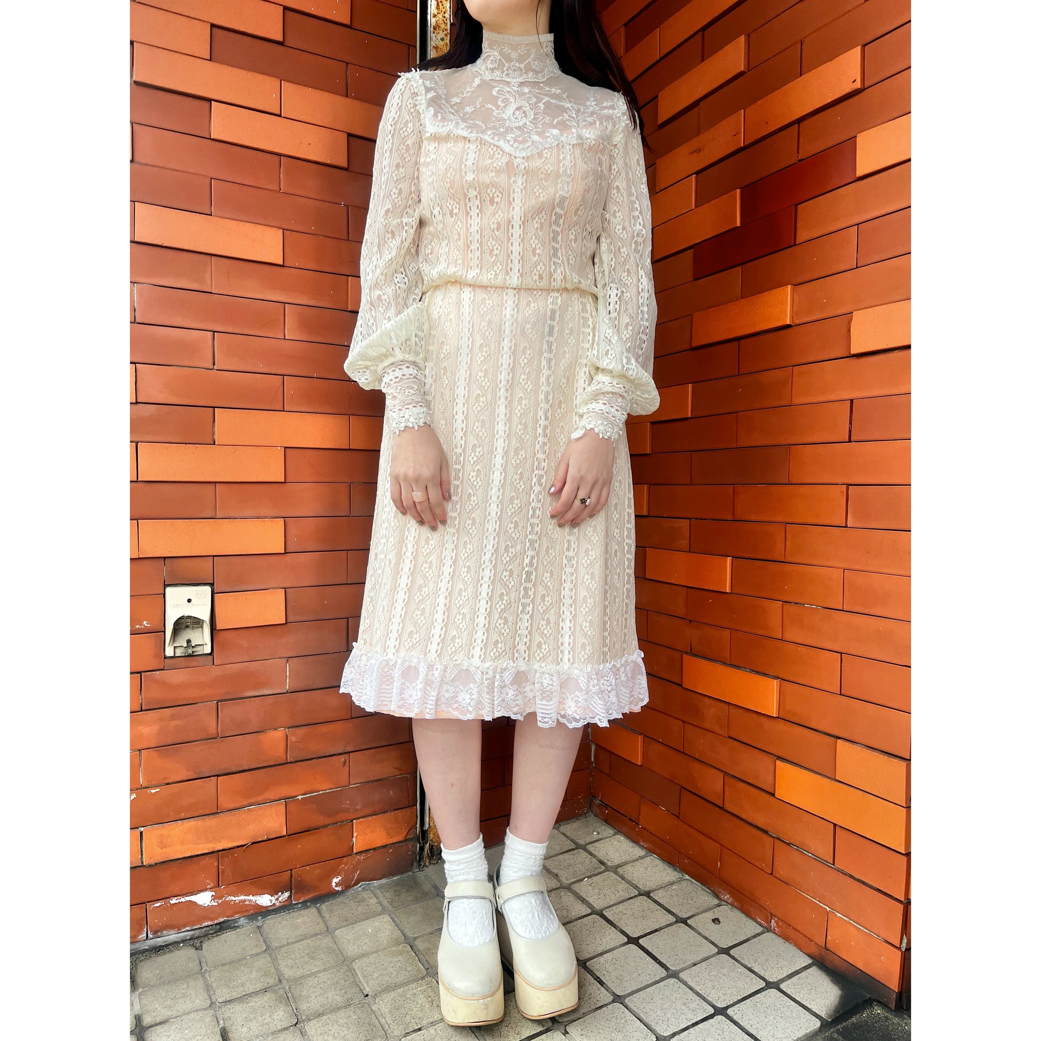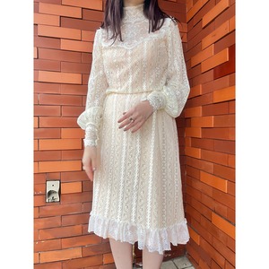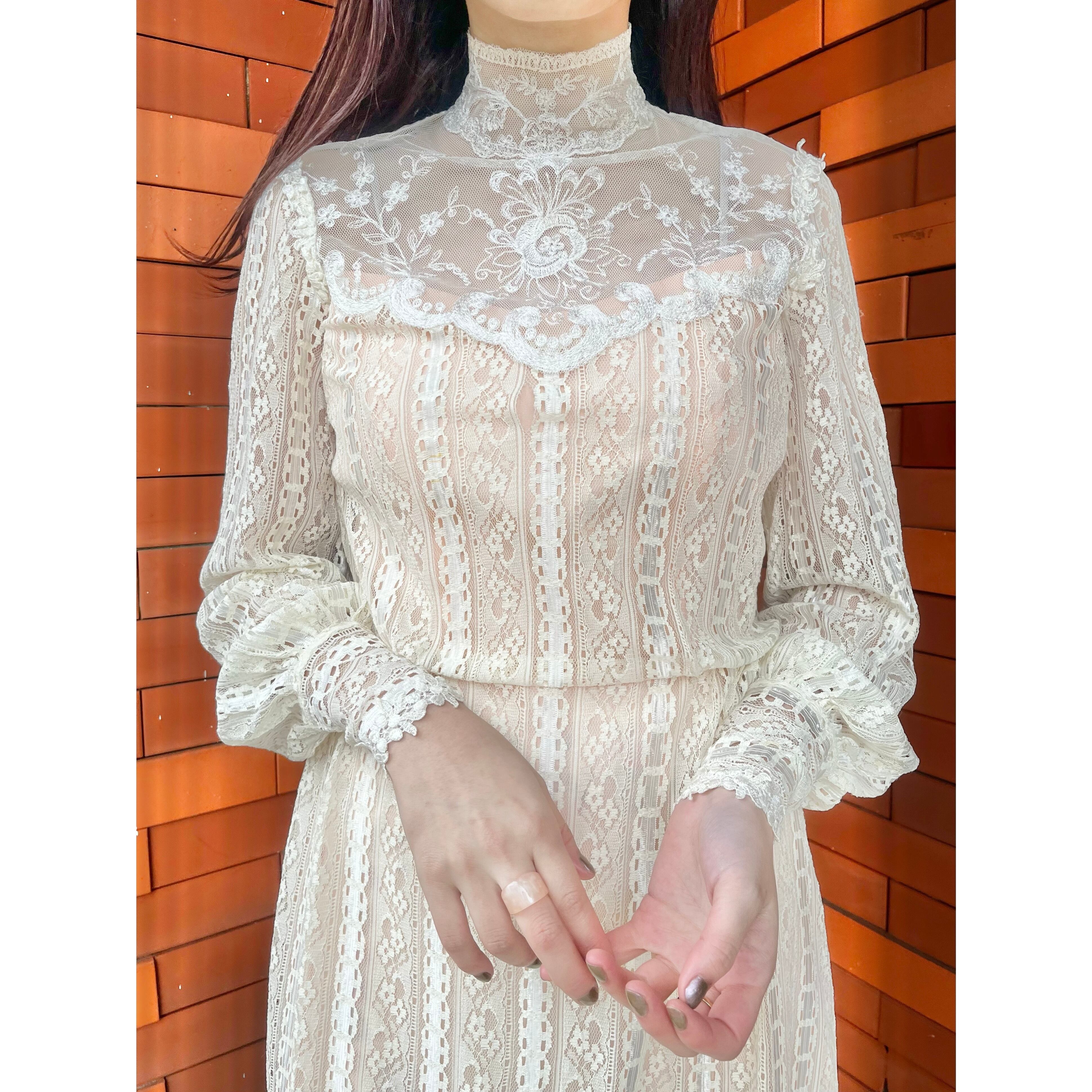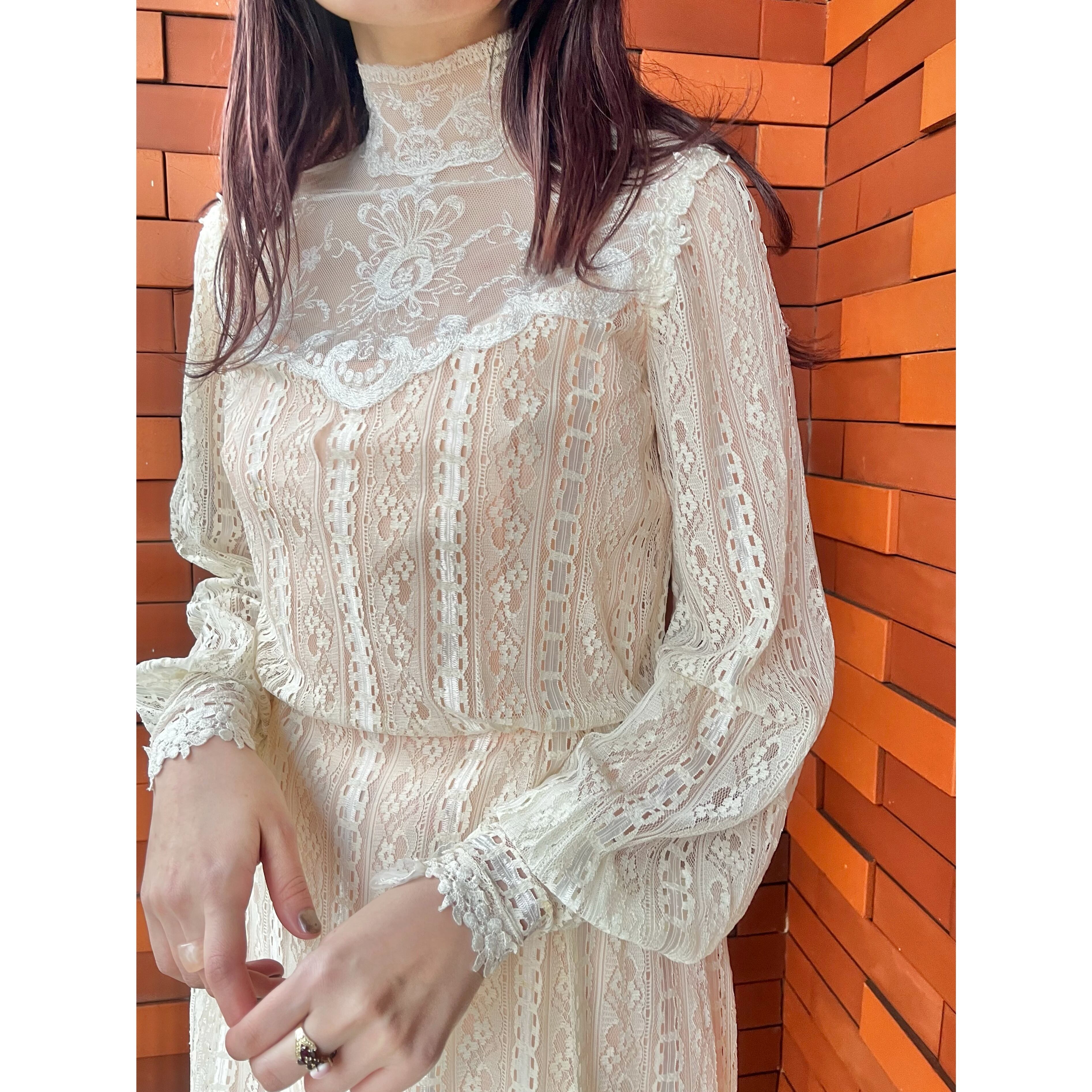 首元まで覆うレースや袖口、裾の細部、全てがロマンチックなお品です