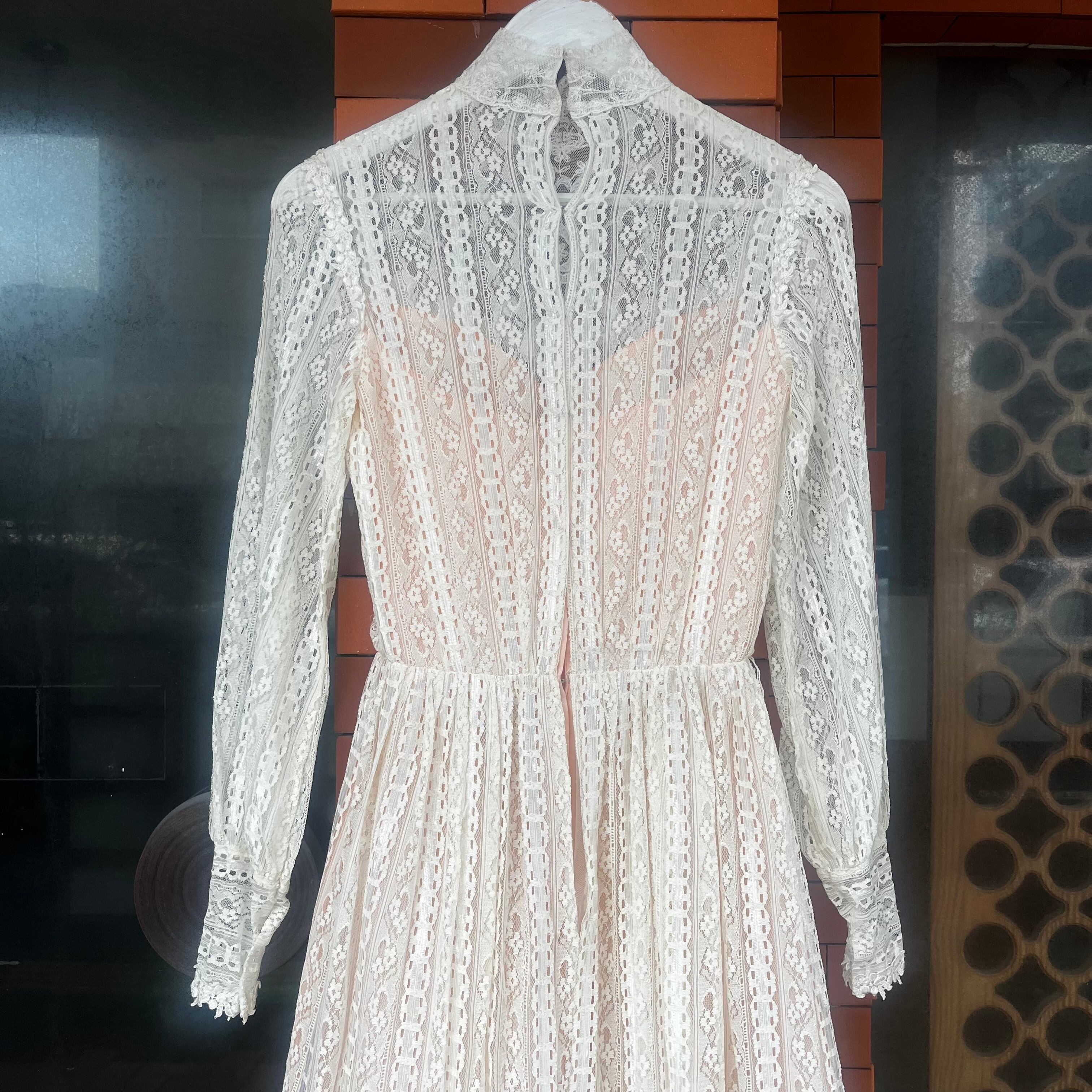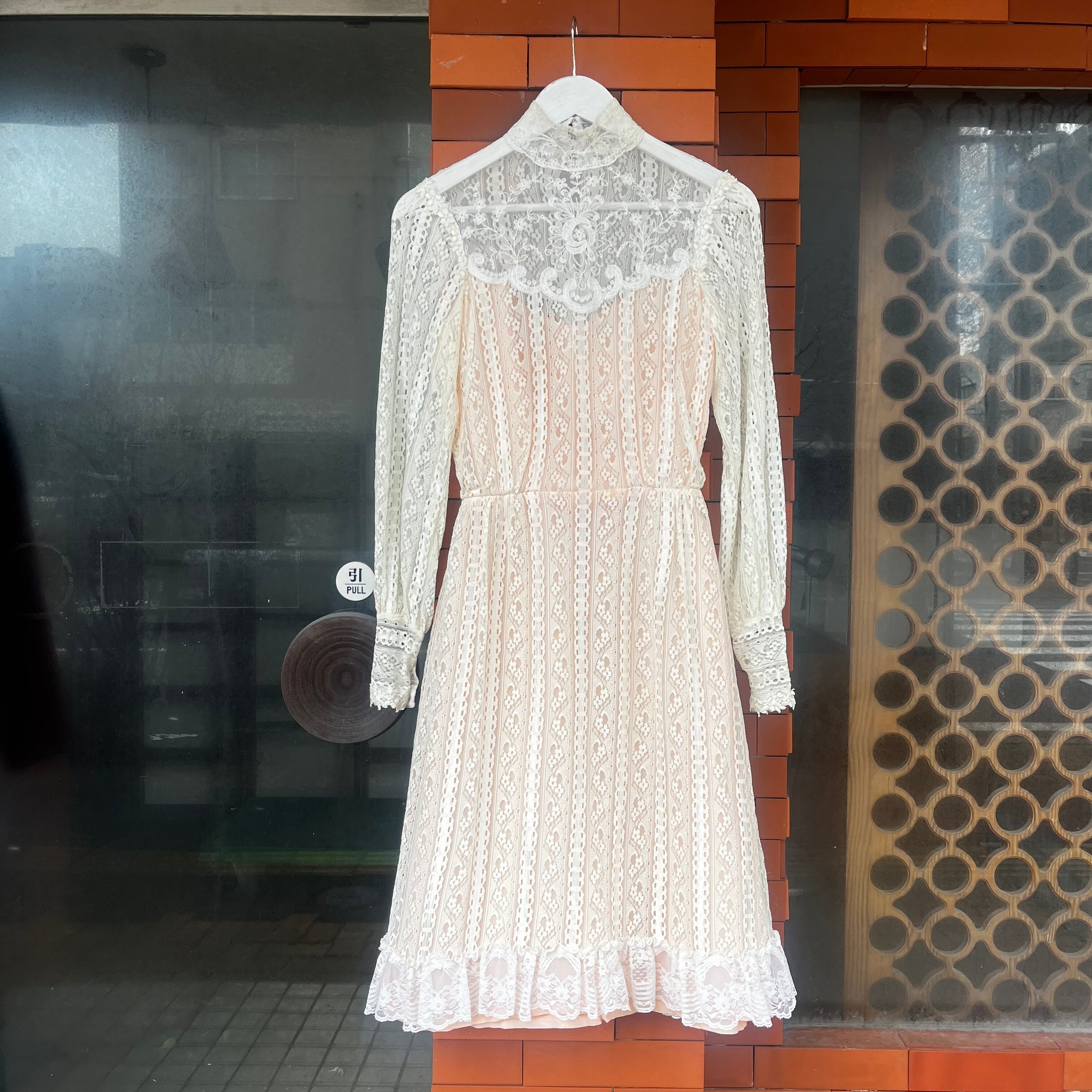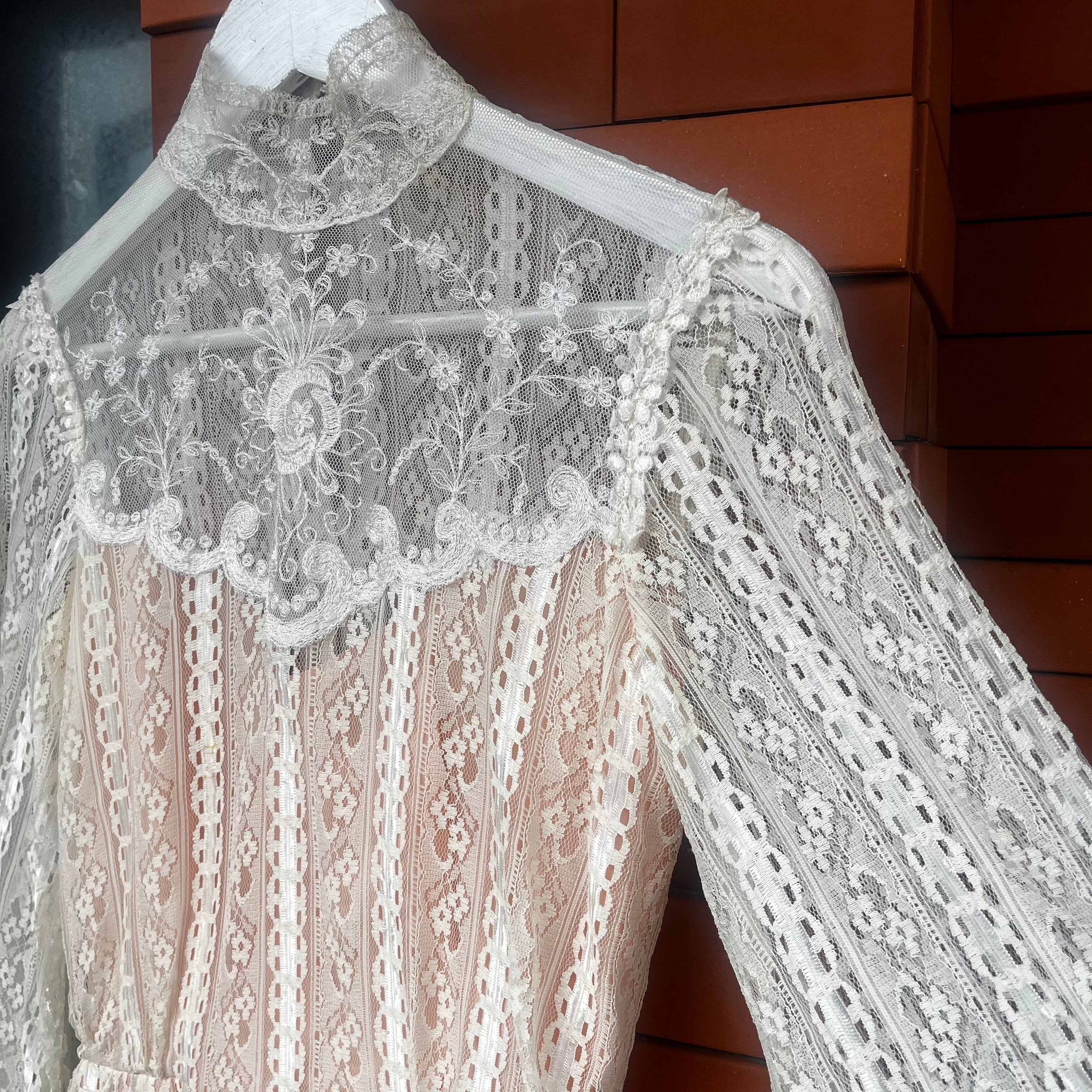首元まで覆うレースや袖口、裾の細部、全てがロマンチックなお品です