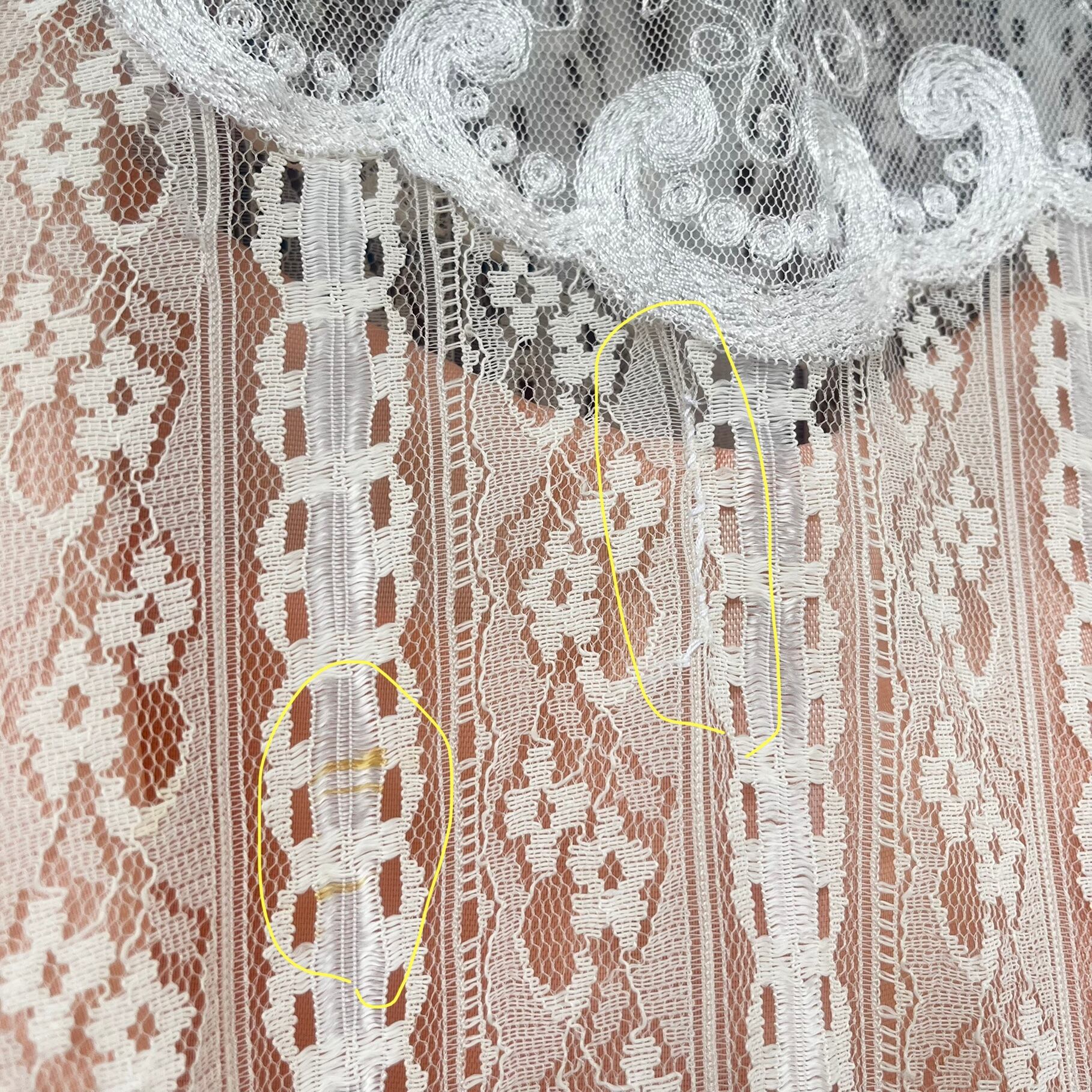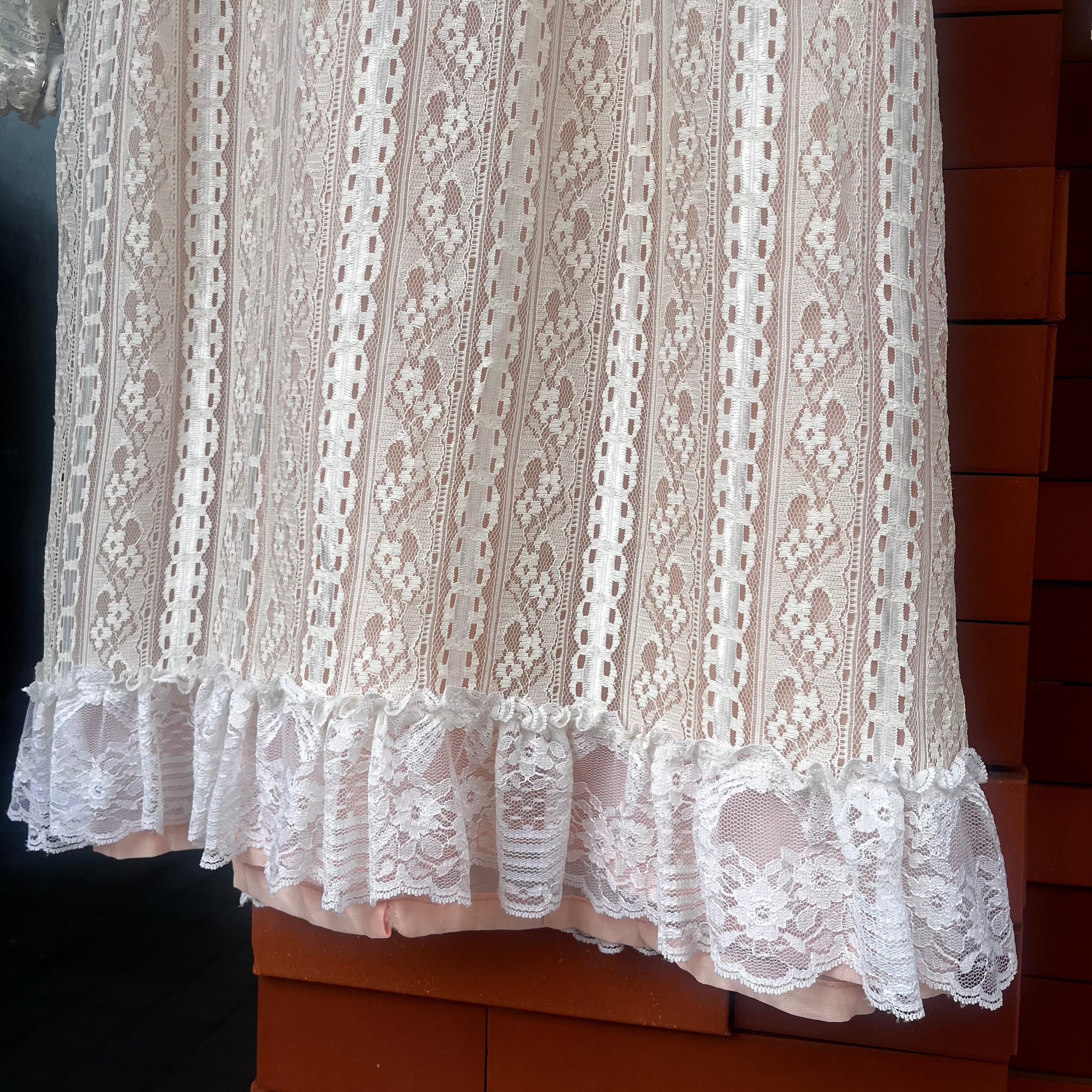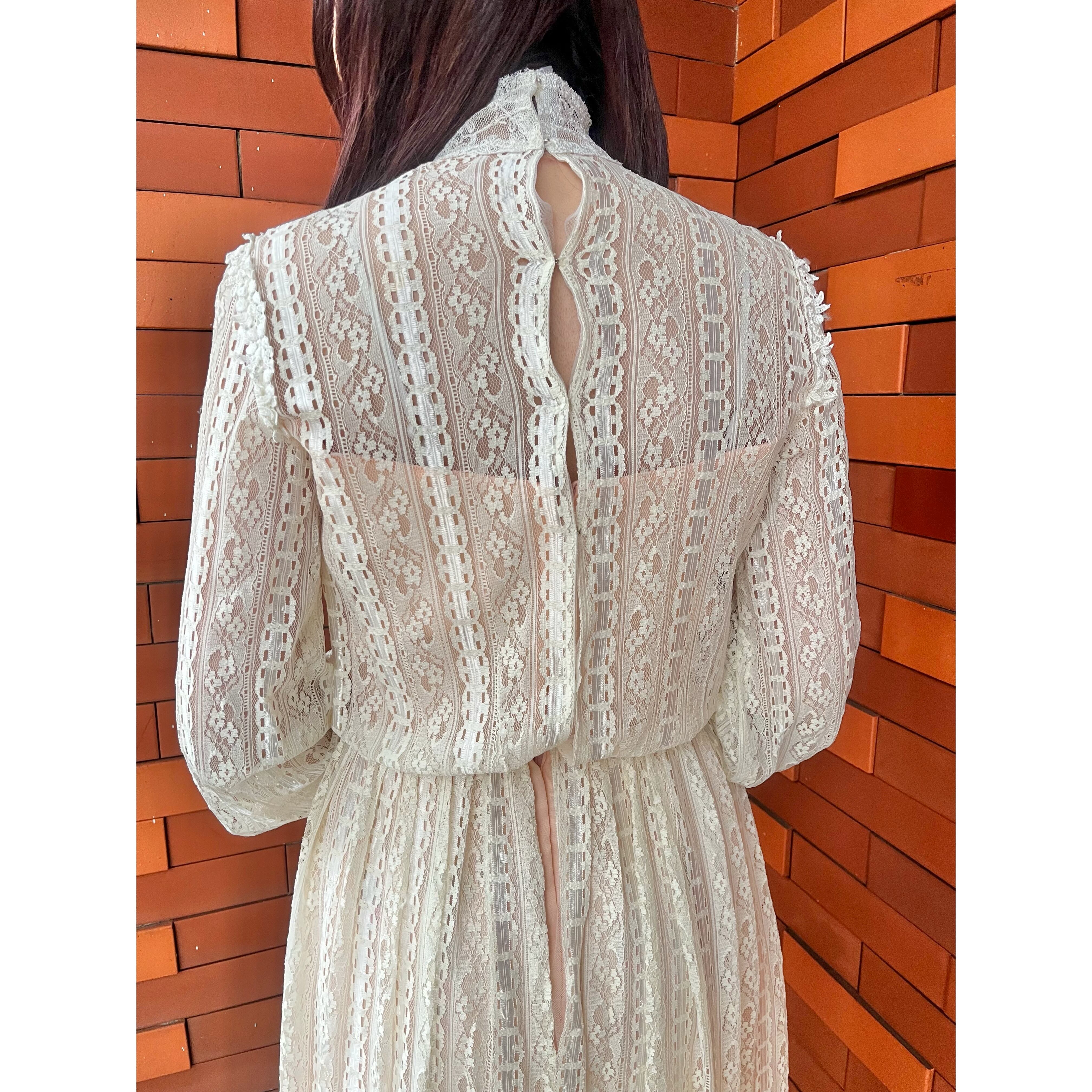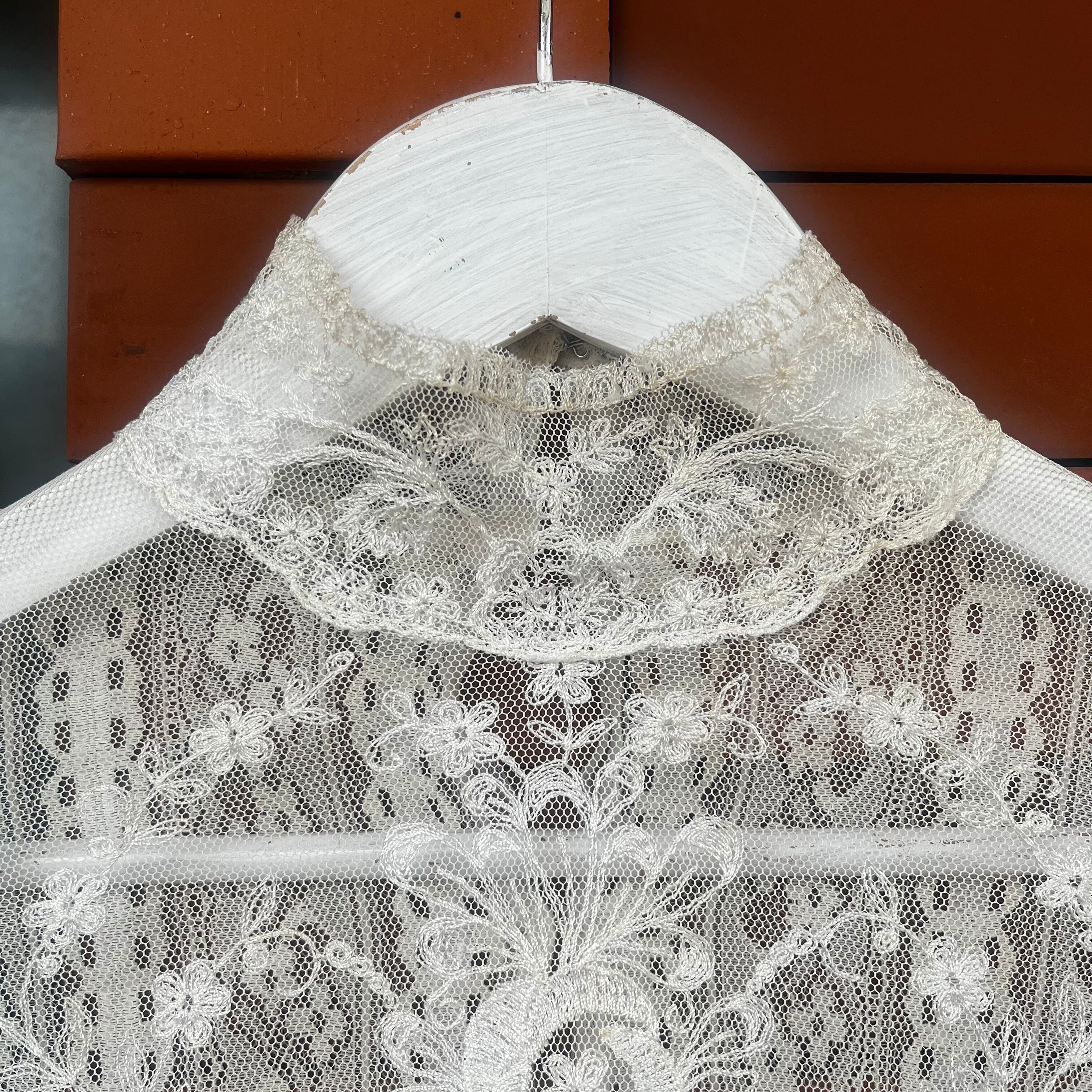 首元まで覆うレースや袖口、裾の細部、全てがロマンチックなお品です