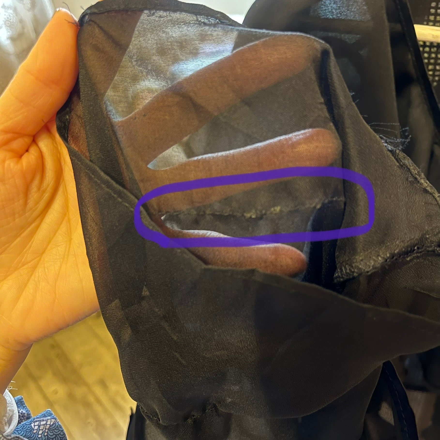 袖口部分ゴムの劣化によりかたくなったゴムがお洗濯の際に落ちてくる可能性があります