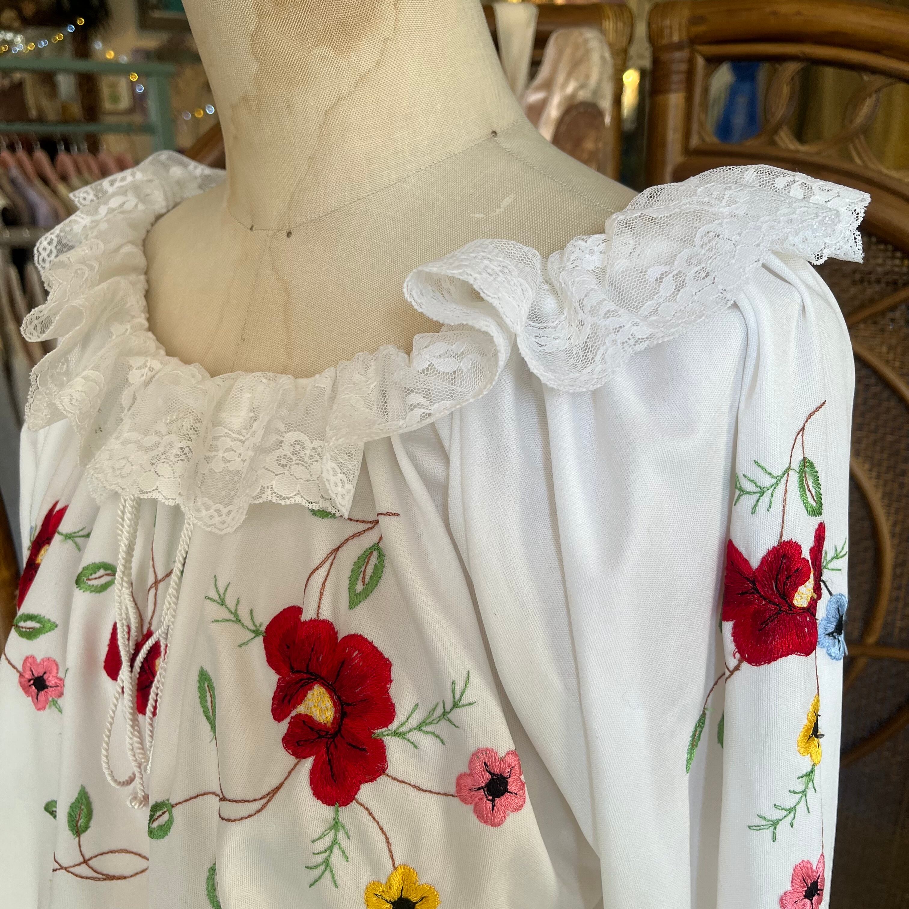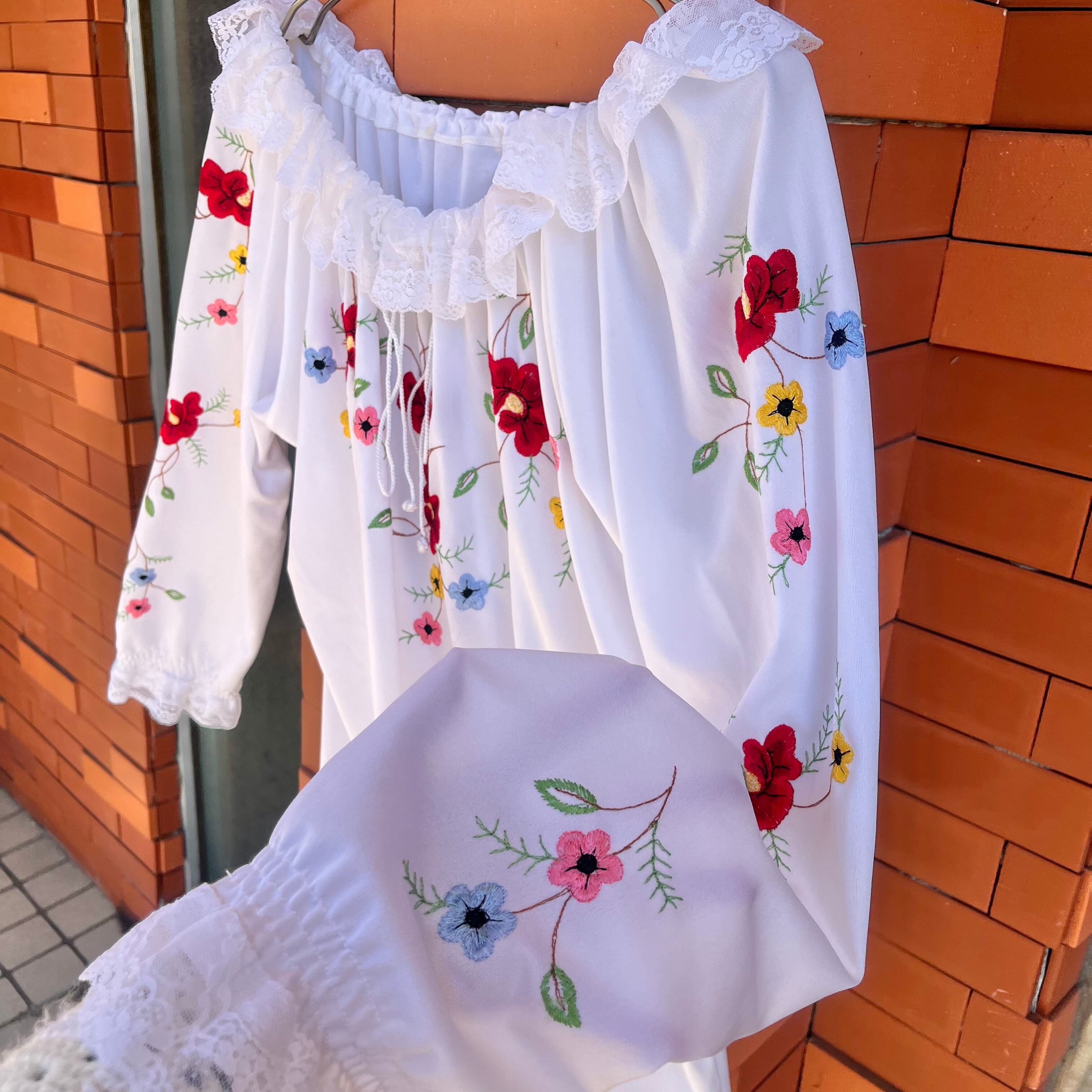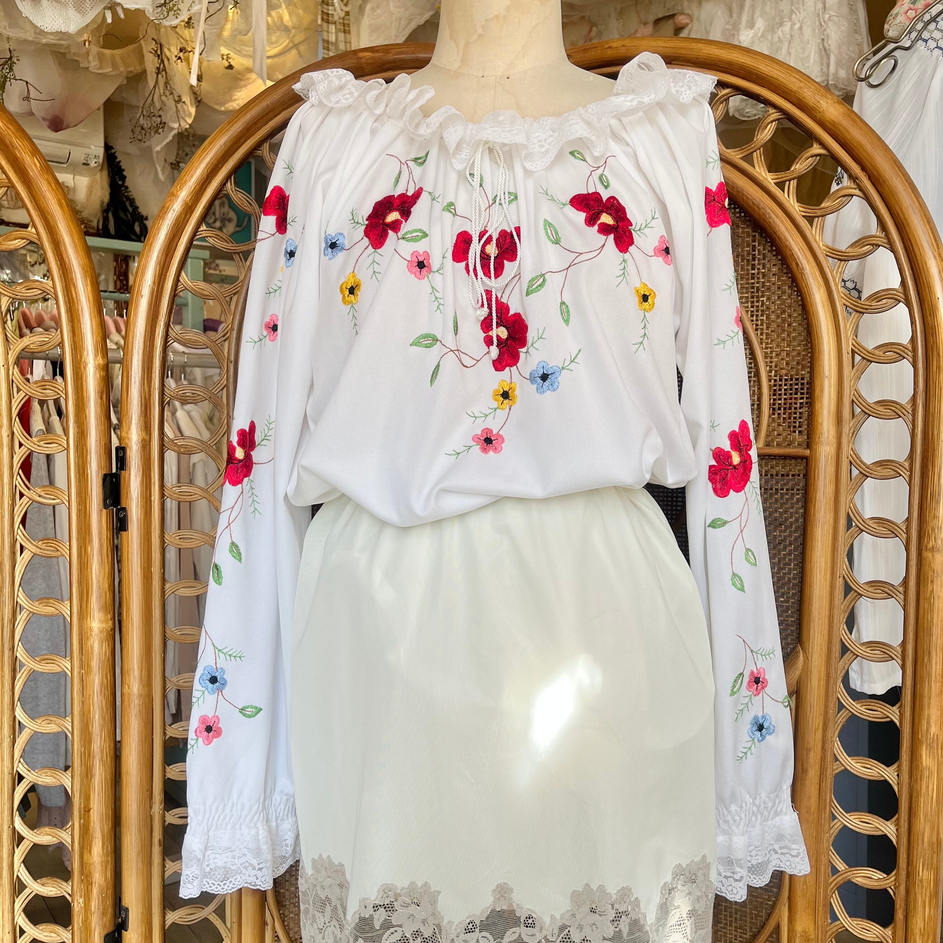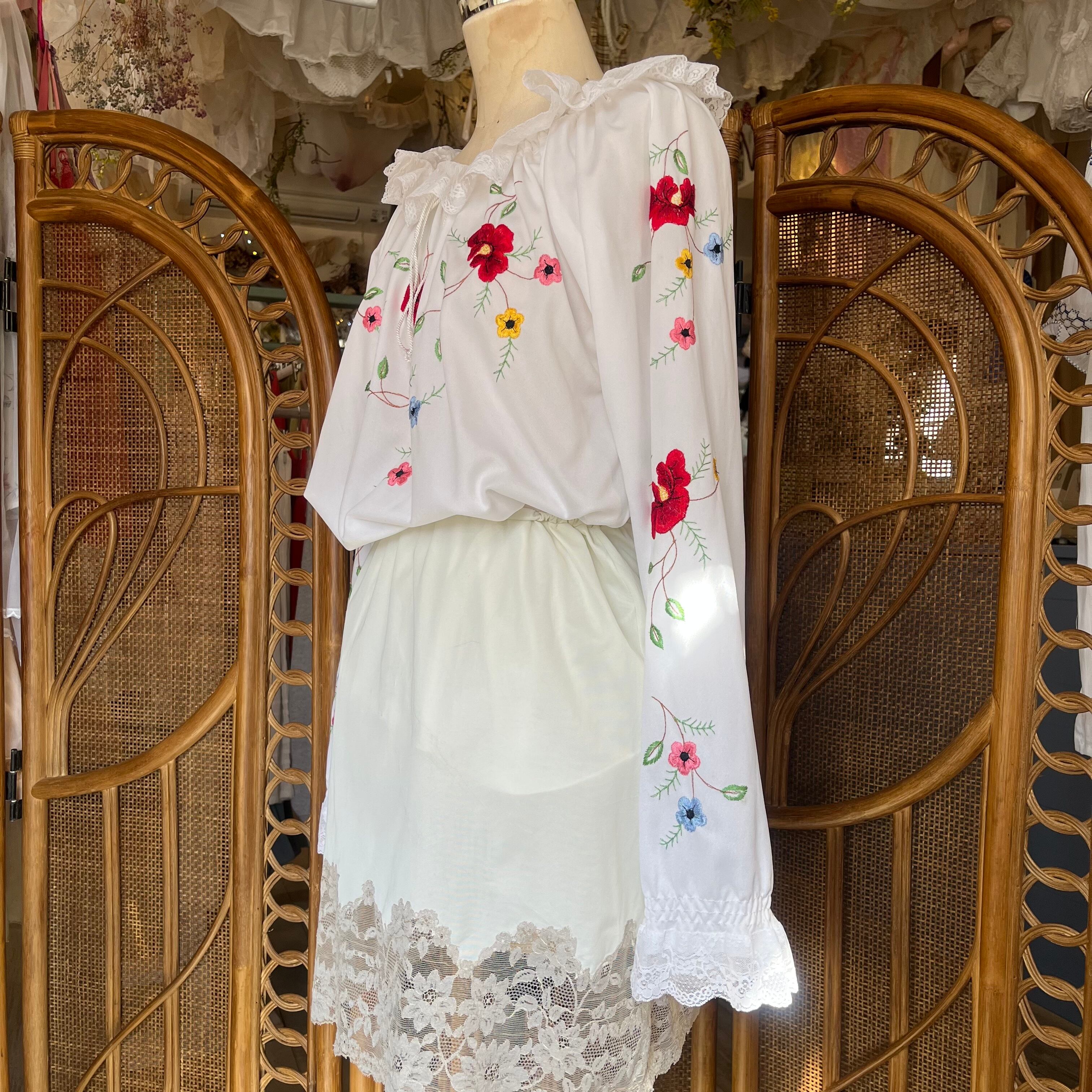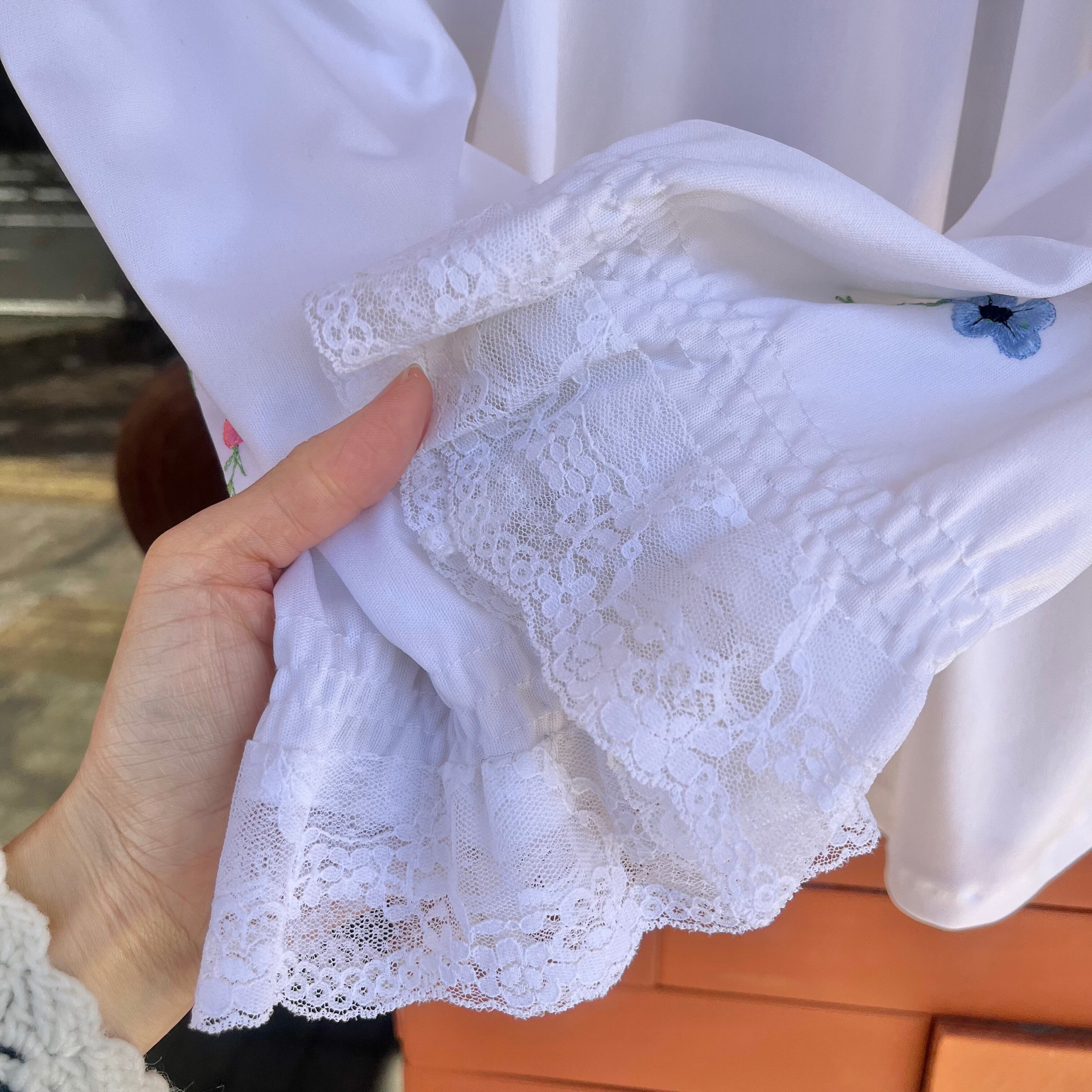 春気分を盛り上げてくれるお花刺繍の鮮やかなチュニック。両腕にも刺繍が入っていることや首もとや袖口のレースが甘く贅沢です。