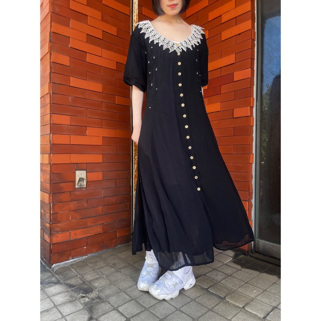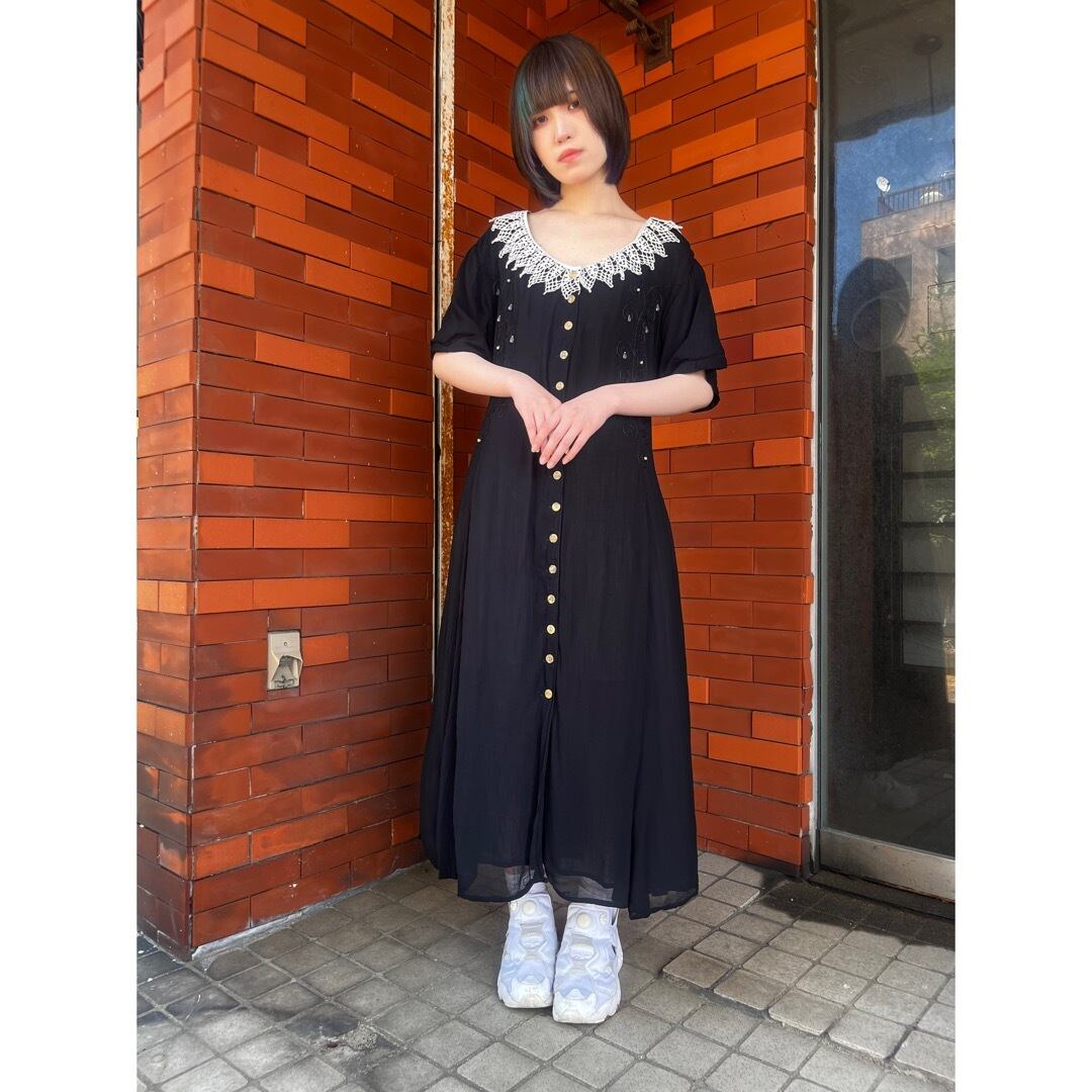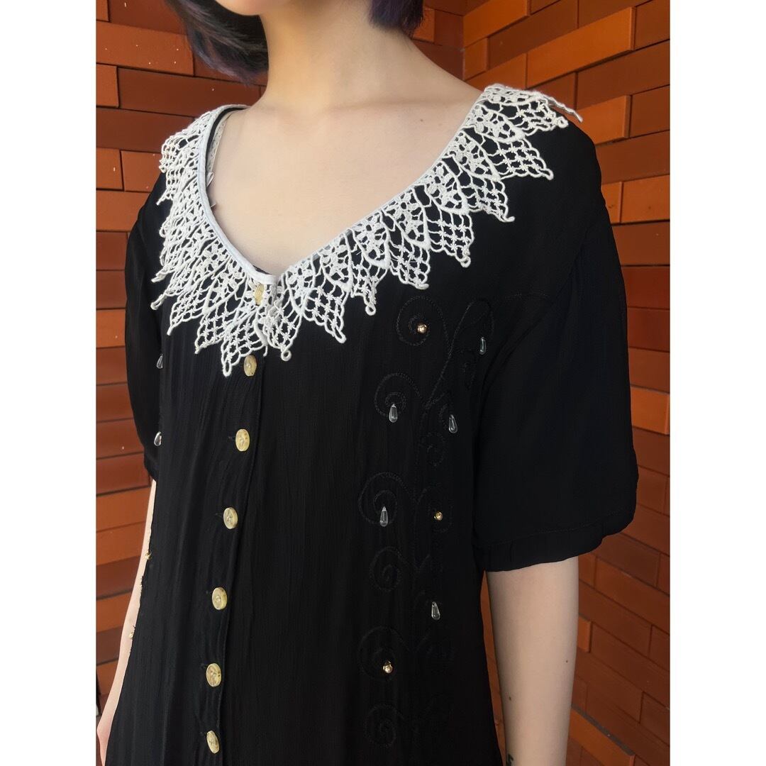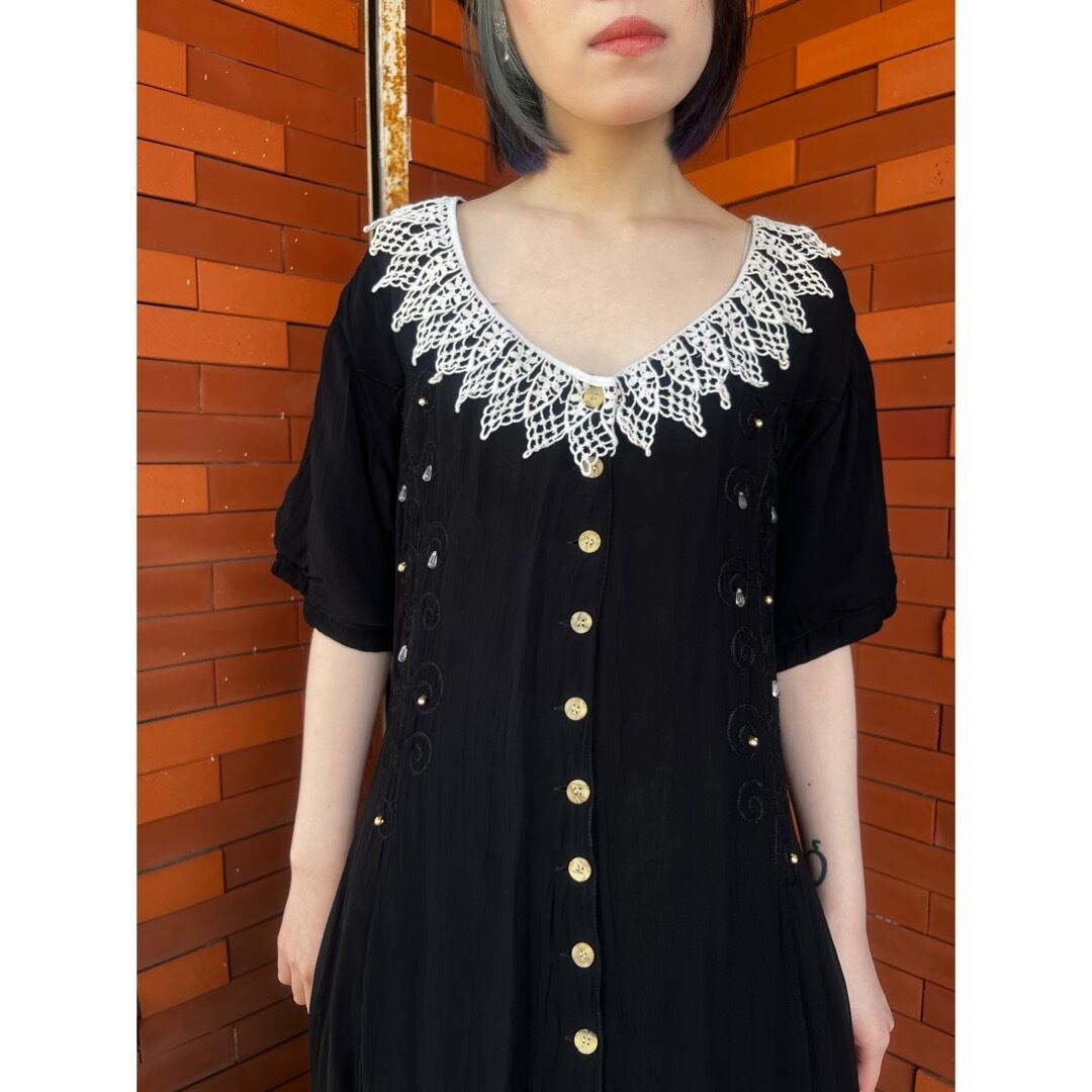 ギザギザのレース襟と涙の雫のような装飾がロマンチックなワンピース