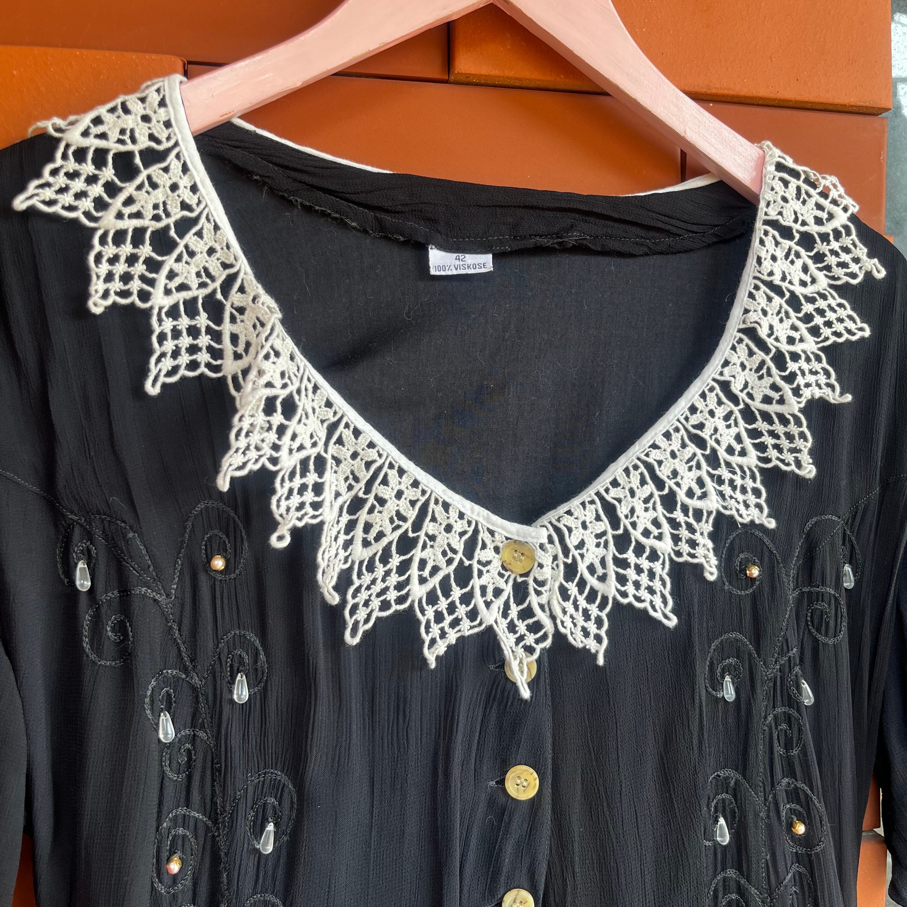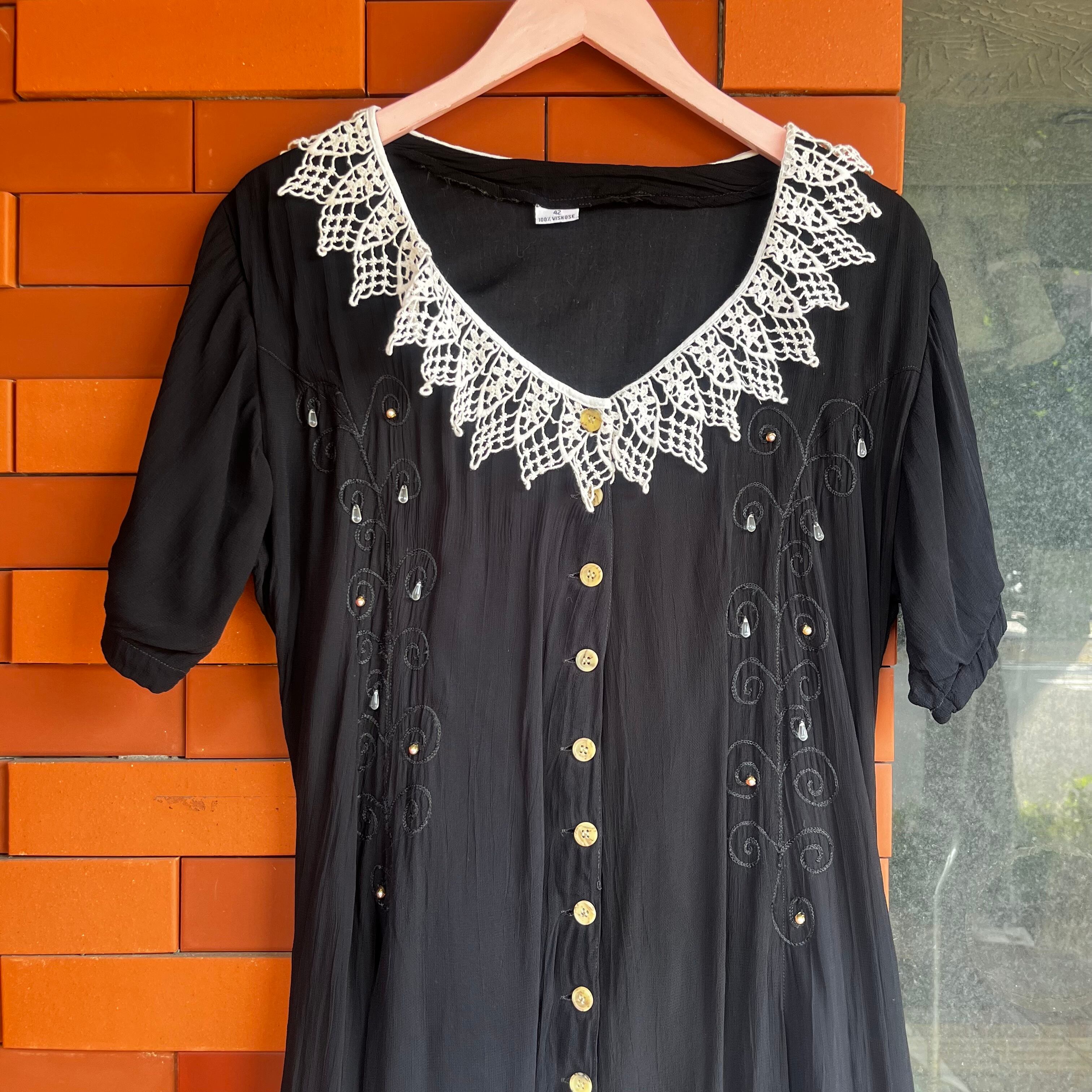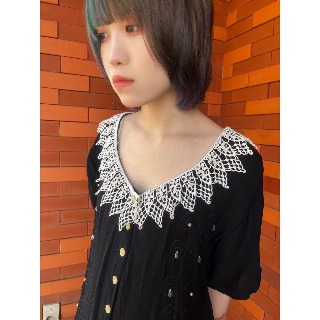 ギザギザのレース襟と涙の雫のような装飾がロマンチックなワンピース