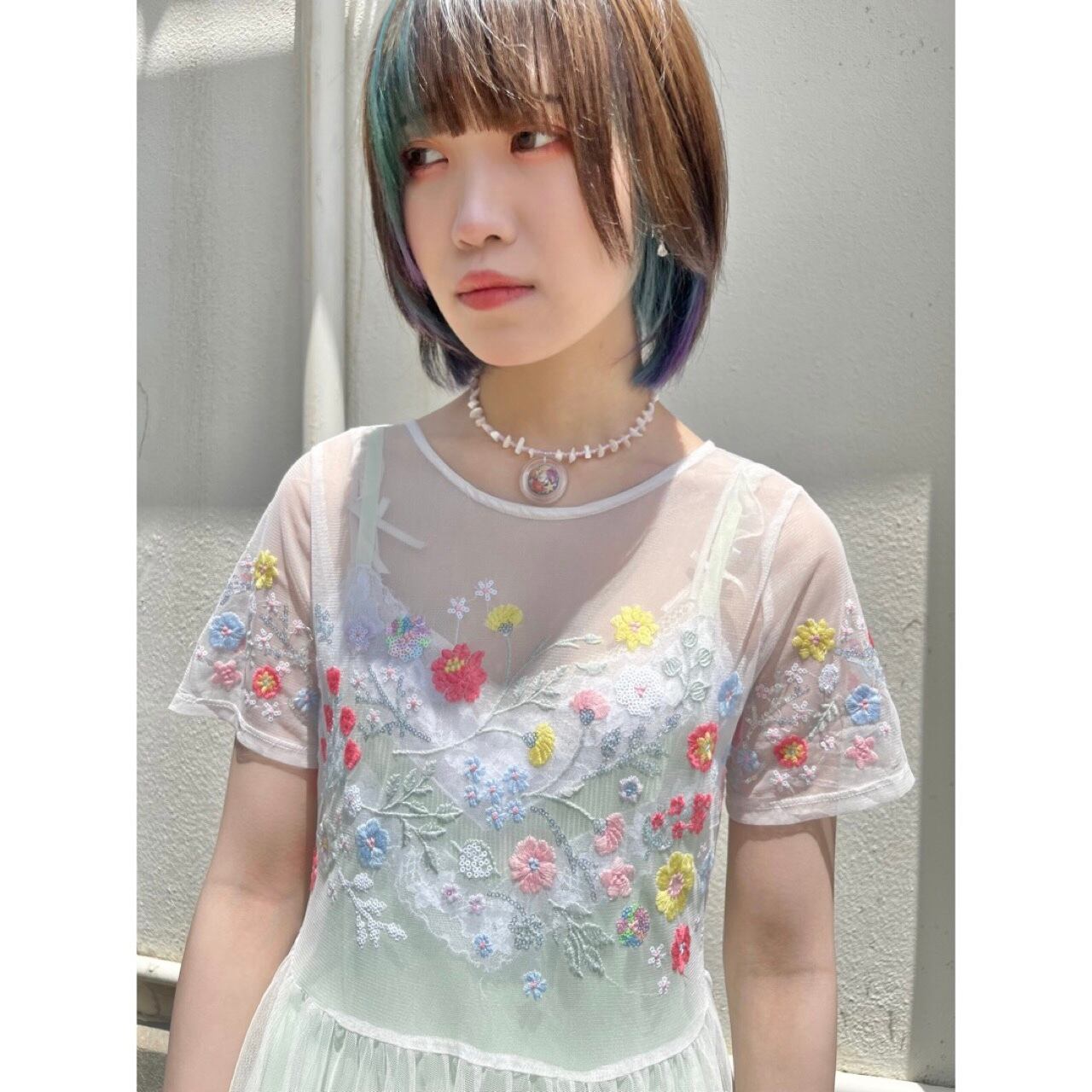 シースルーなのでインナーのお色で遊んだりカジュアルにTシャツやデニムをあわせたりといろんな表情が楽しめるかと思います。