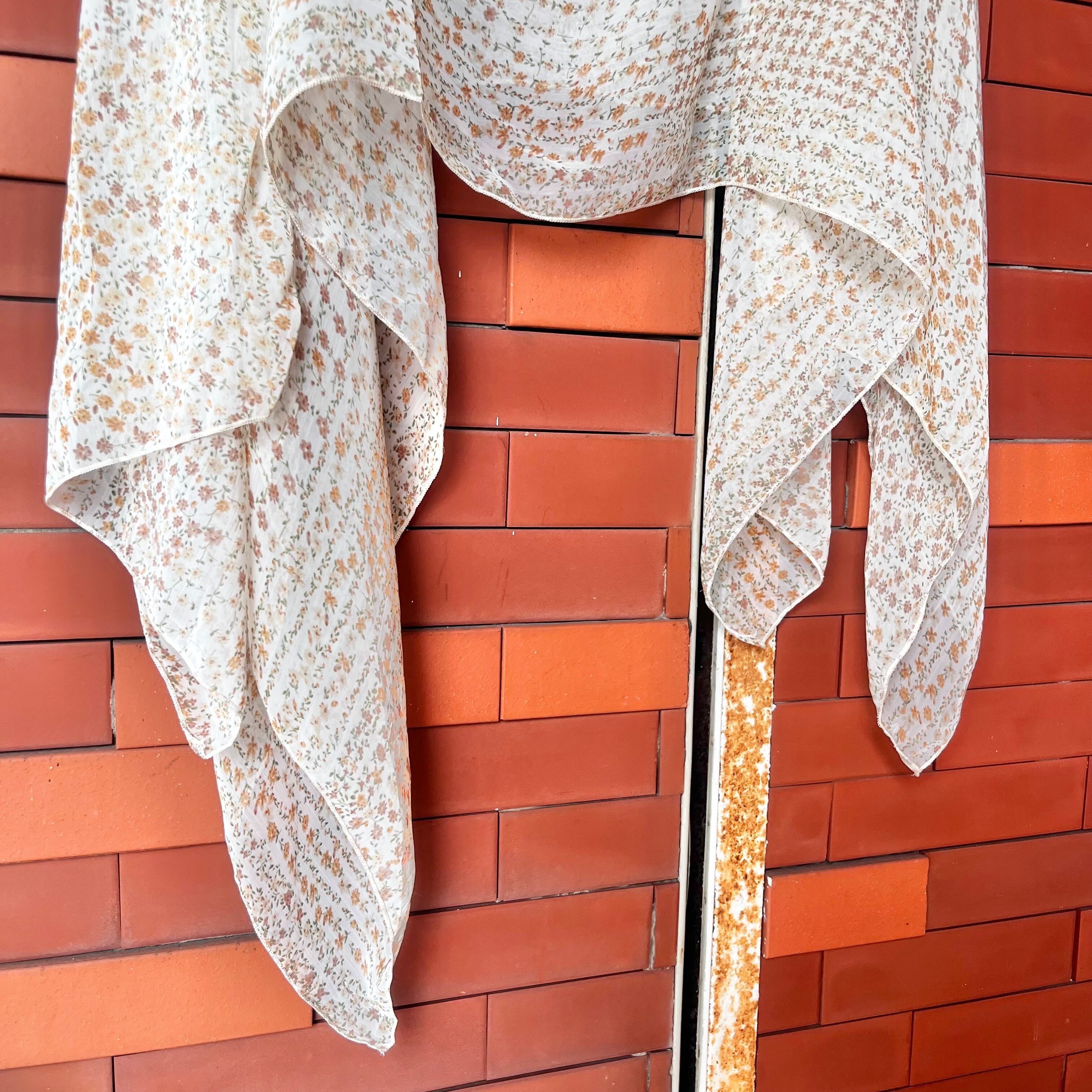 大きな布をふたつ合わせてトップスになった不思議なアイテム。