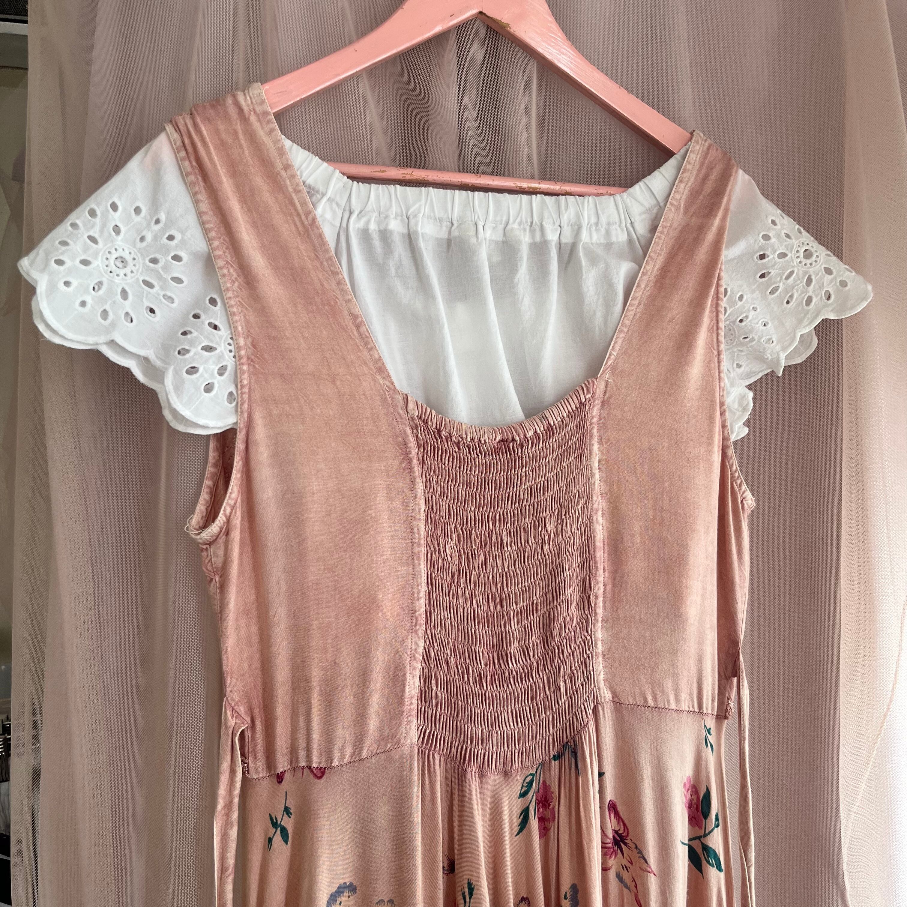ダスティピンクカラーで雰囲気抜群のレーヨンワンピースです。