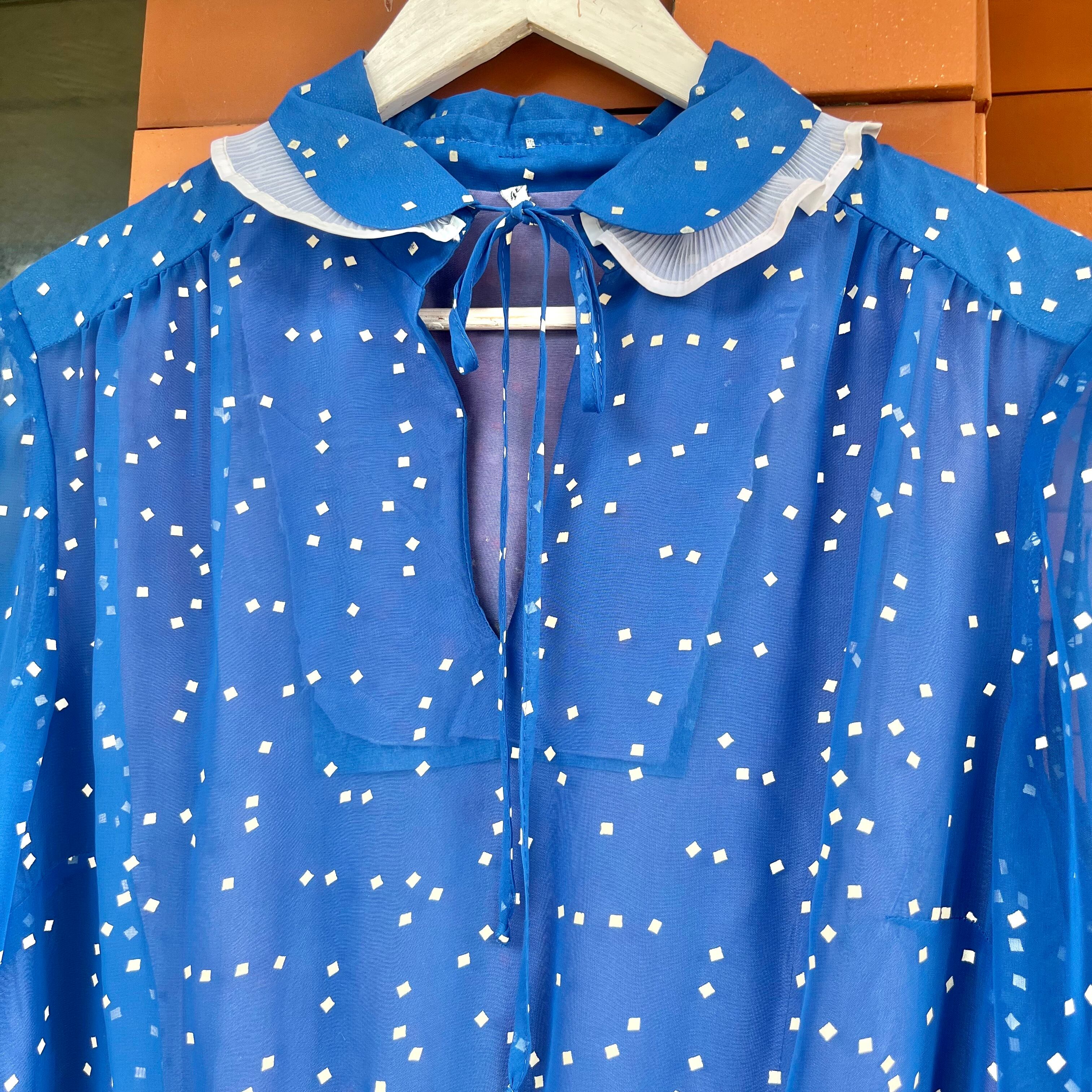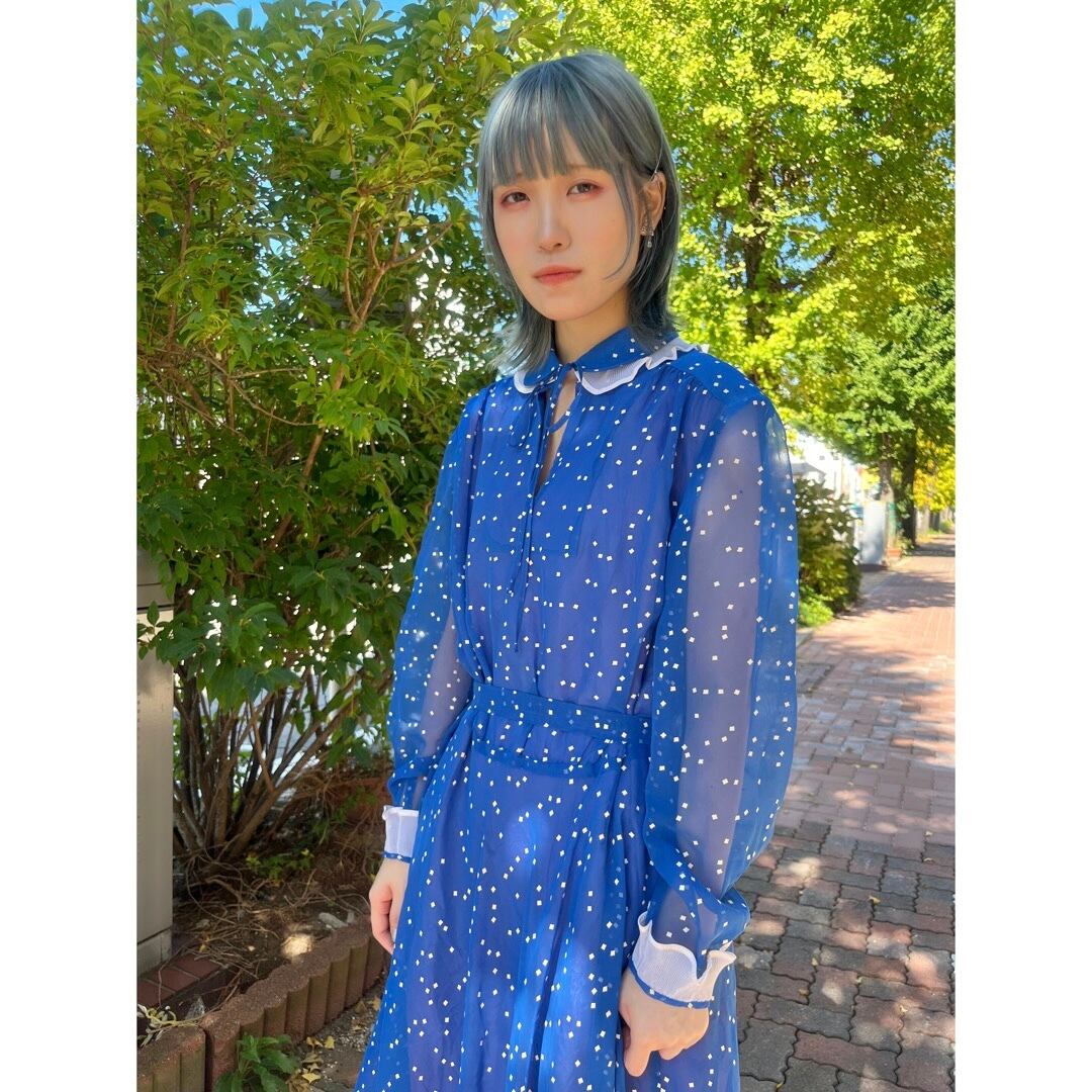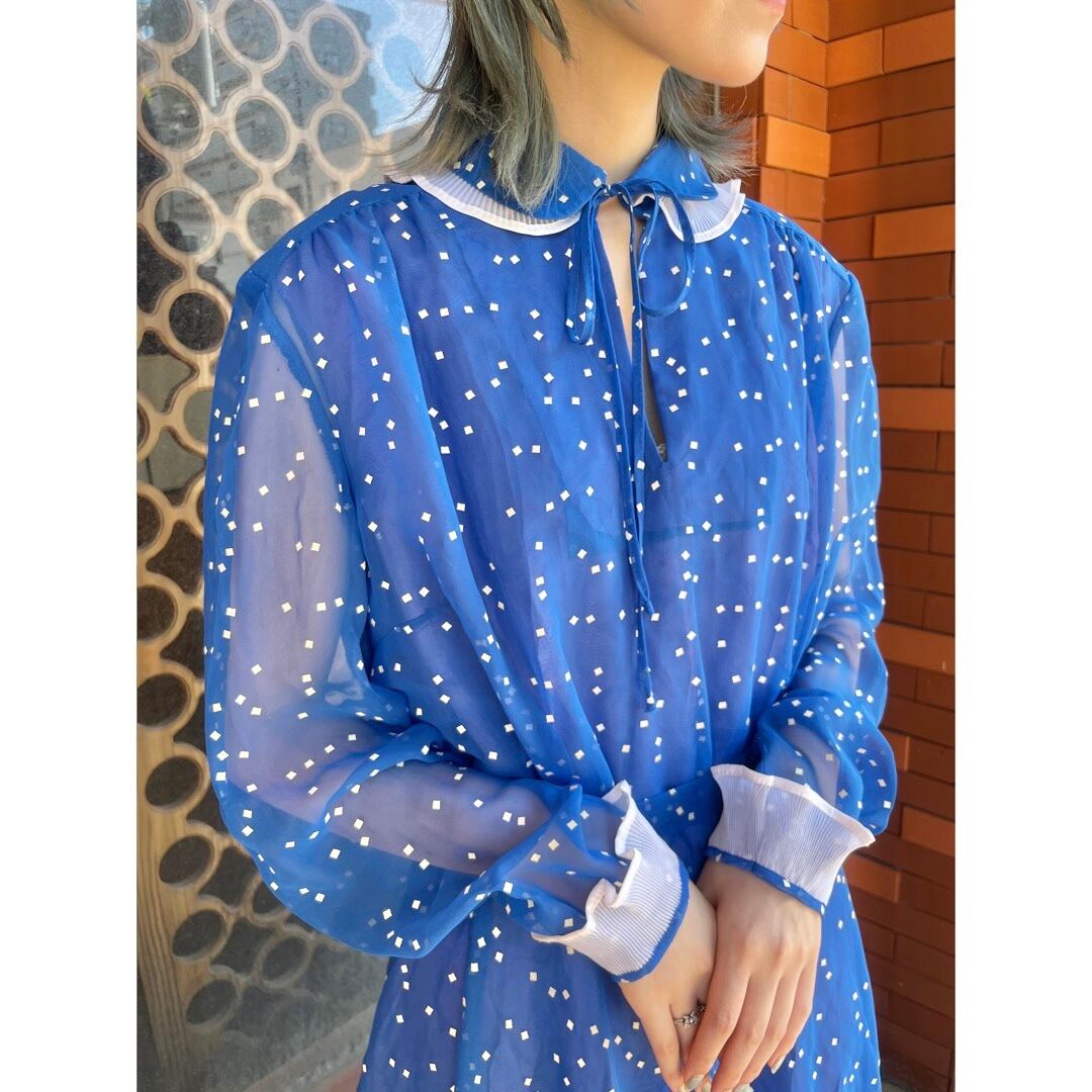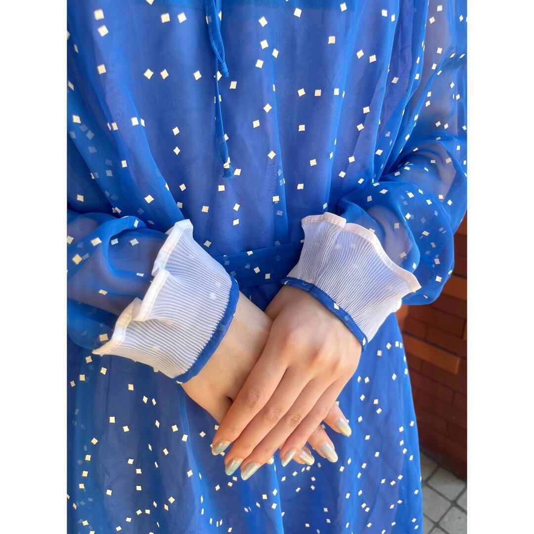 ドットではなく四角柄なところ、袖や襟のひらひらが魚のヒレのようで可愛いです