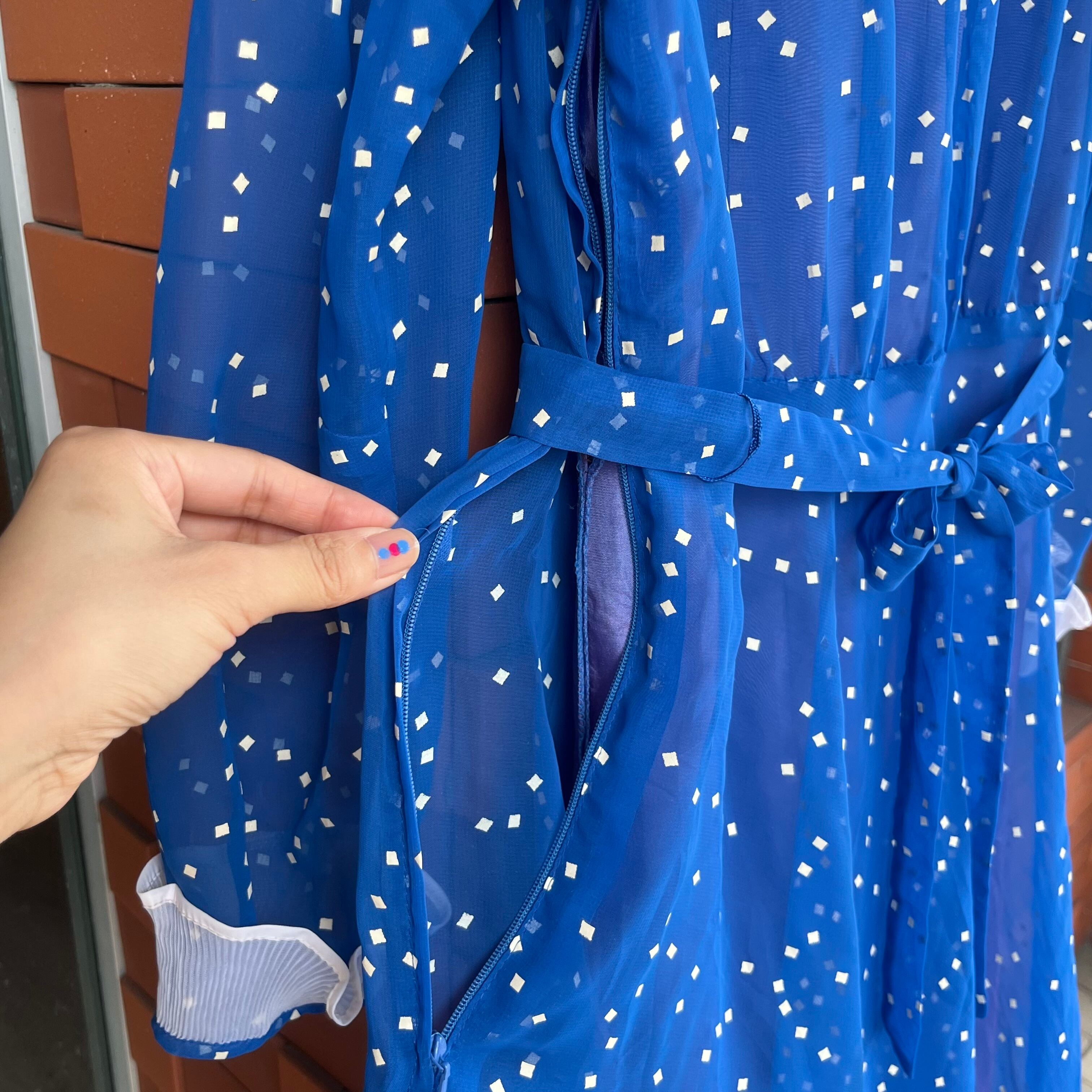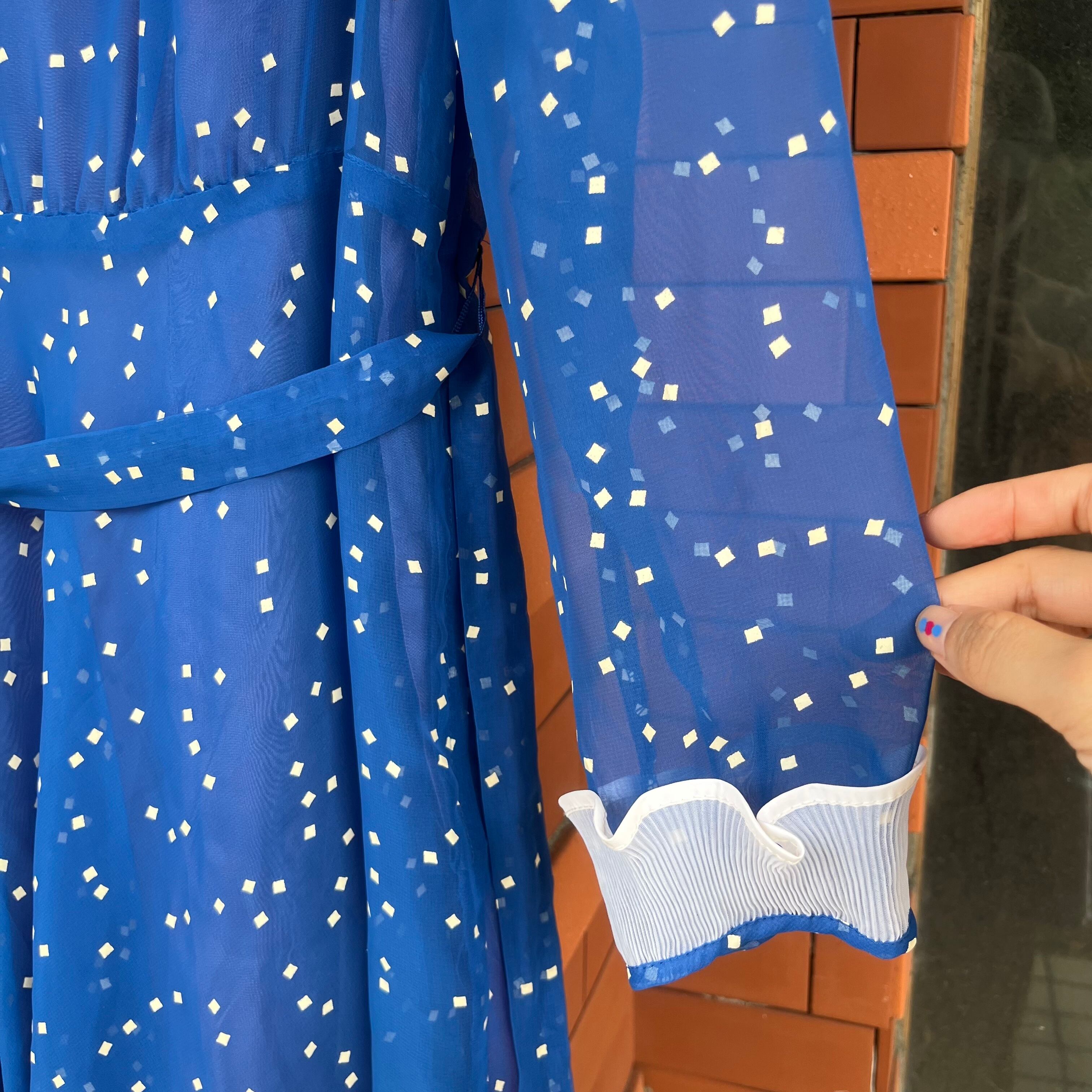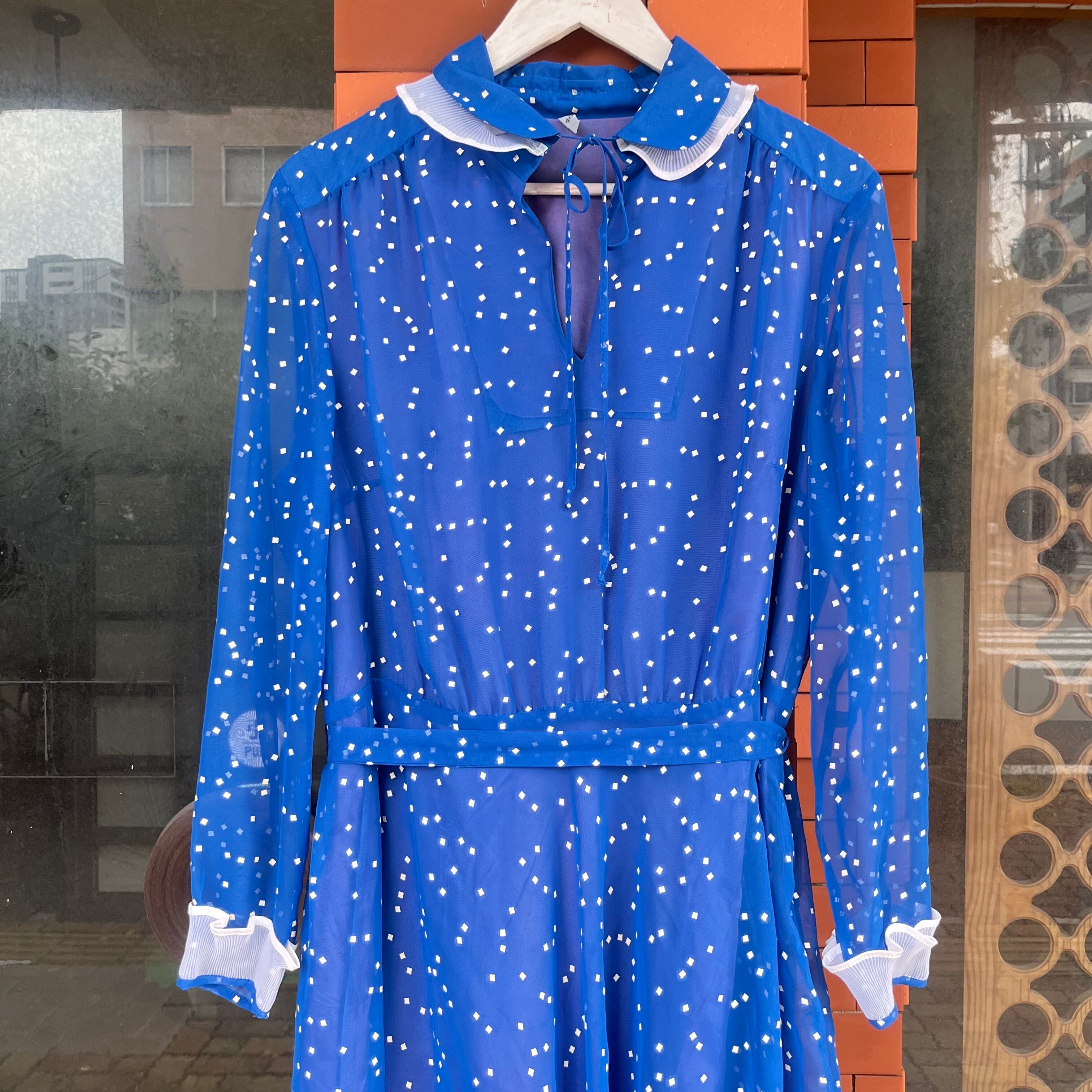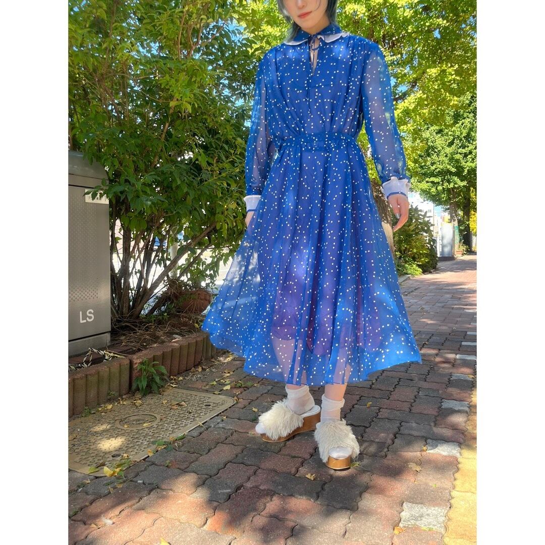 ドットではなく四角柄なところ、袖や襟のひらひらが魚のヒレのようで可愛いです