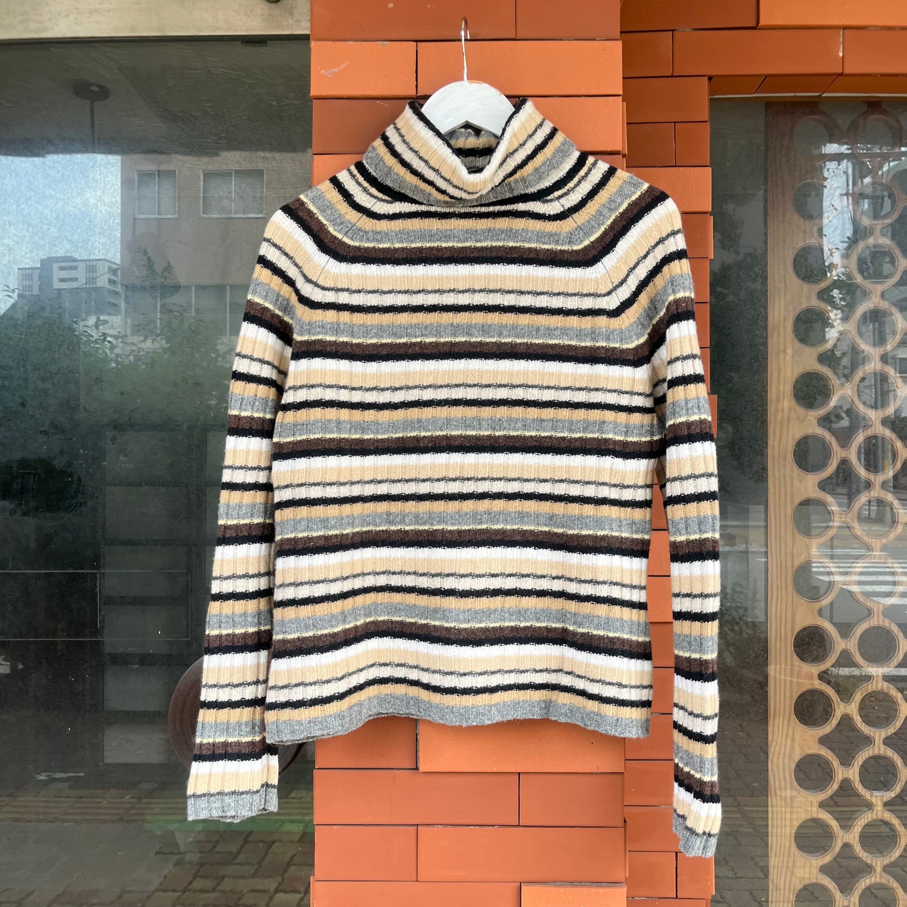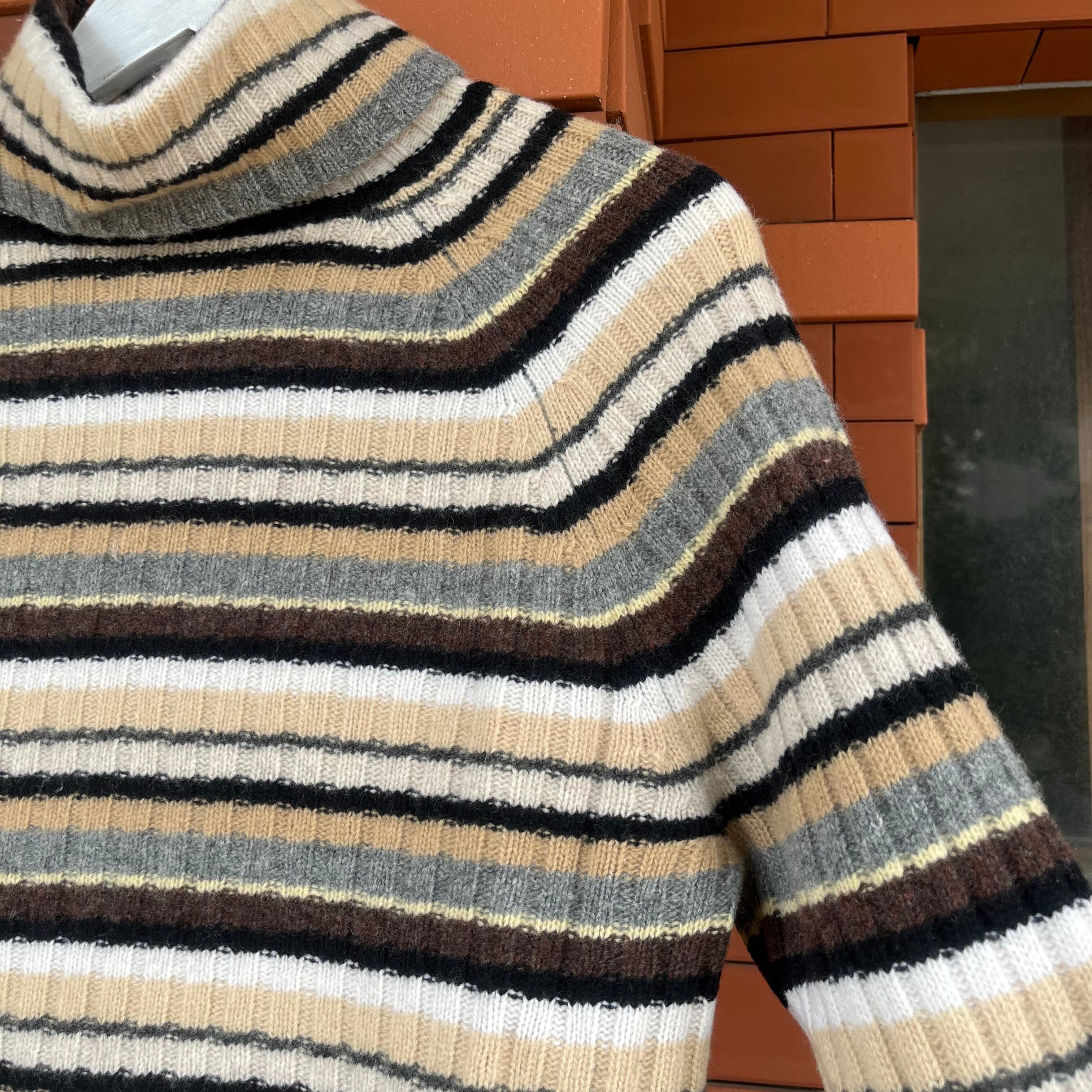 ウール素材で首元まで暖かく防寒はバッチリですがニット自体は厚くなく汎用性も高いです。