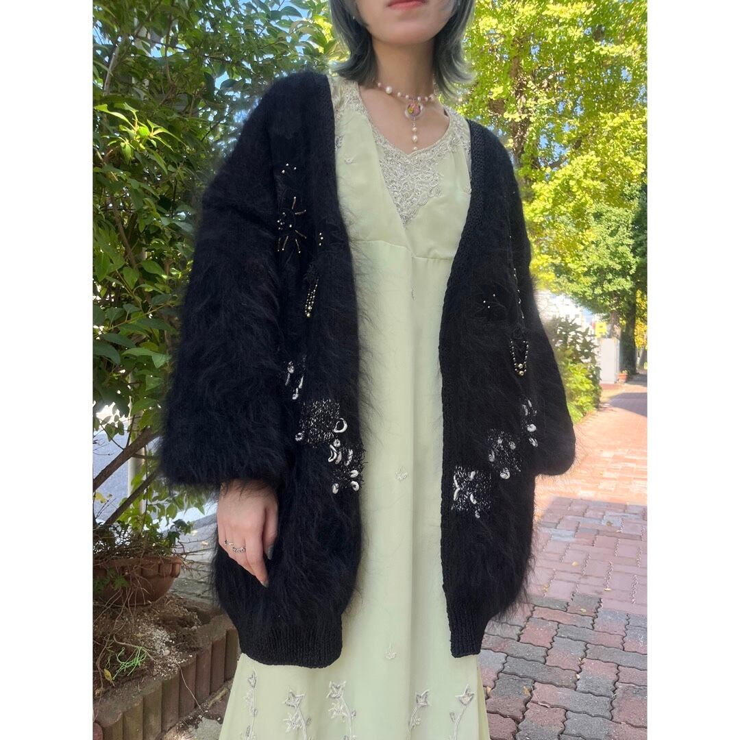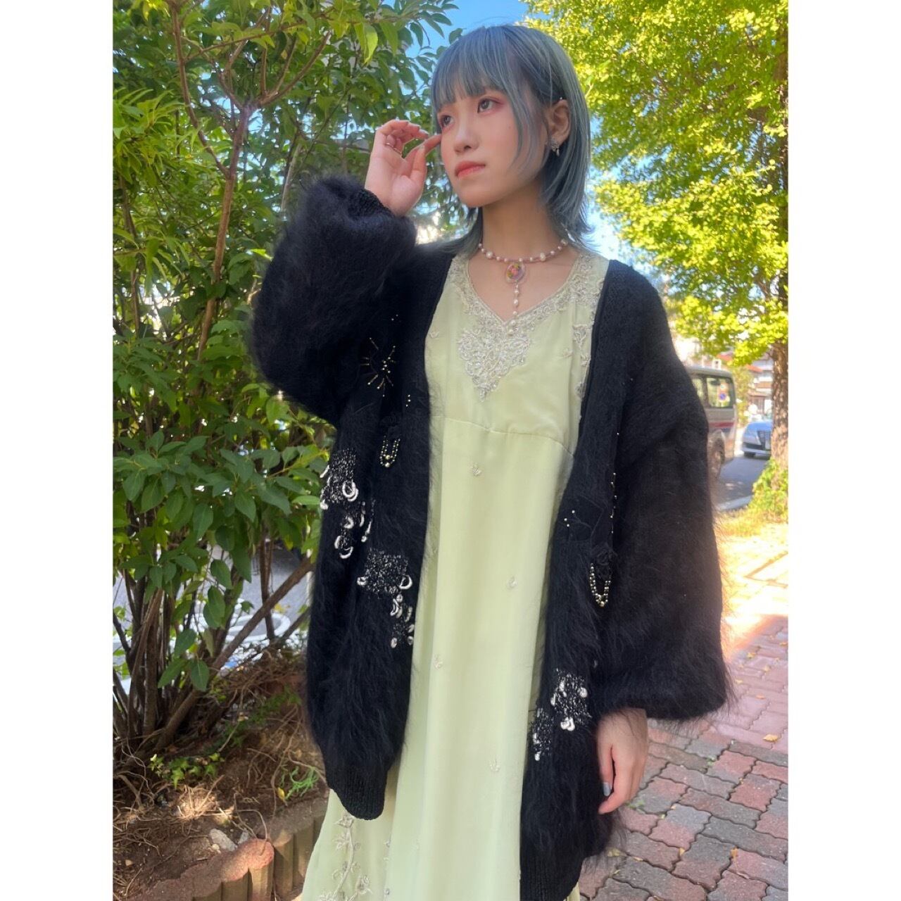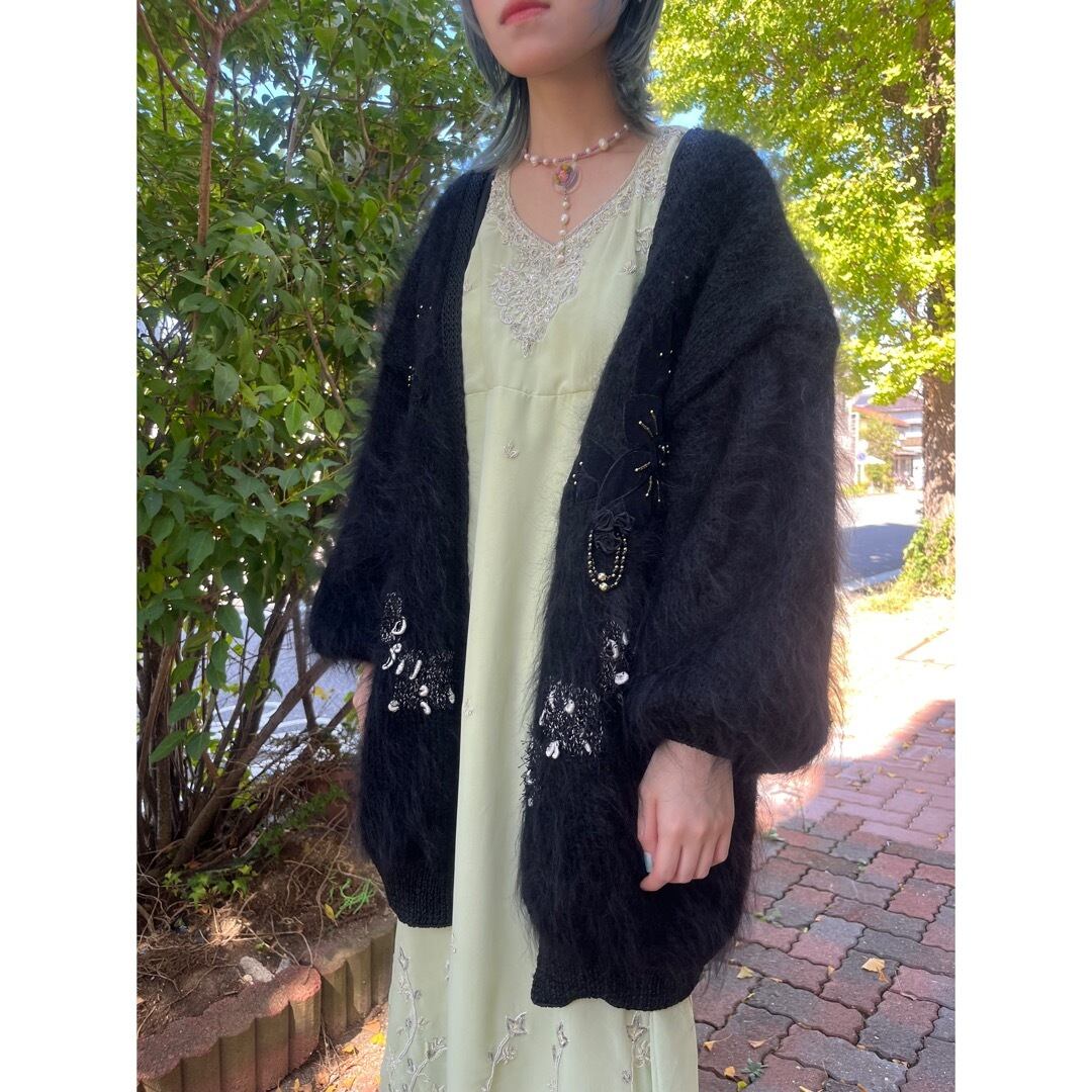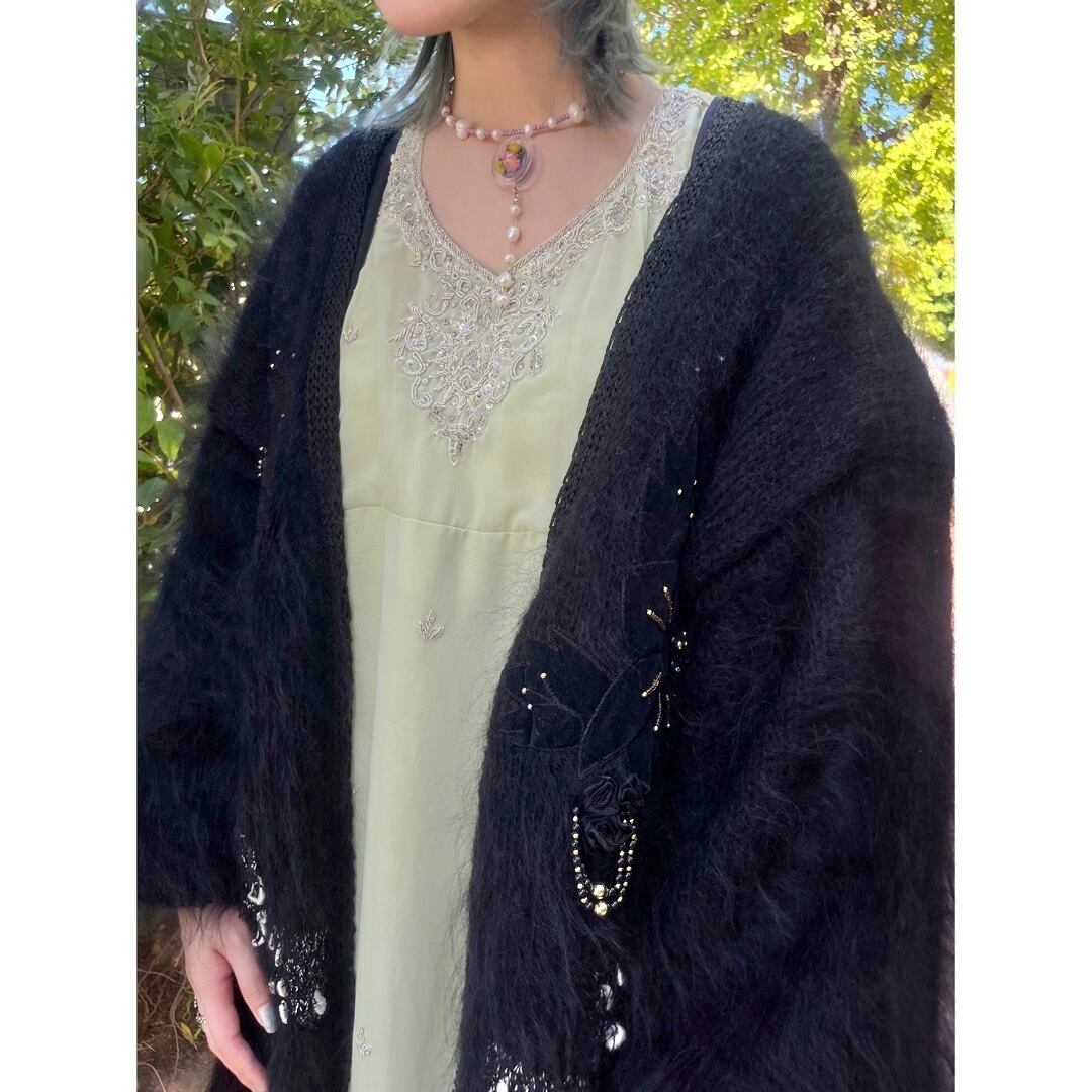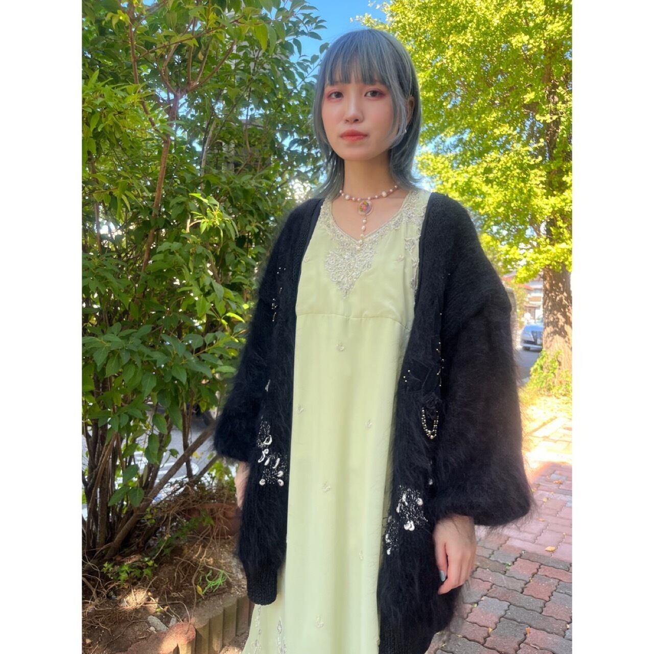 毛足が長く存在感のあるニットガウン(ボタンがないデザインです)