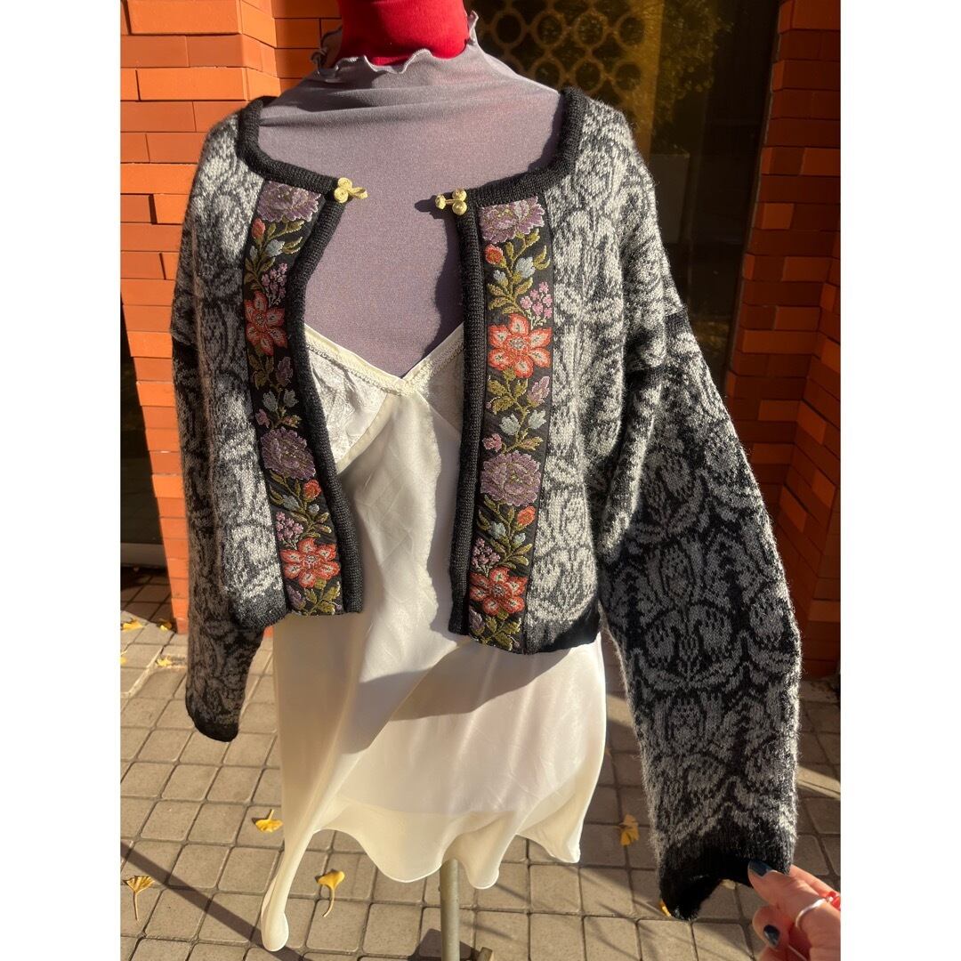 コンパクトなジャケットのような感覚でデニムスタイルやワンピースにさらりと羽織るととても素敵です。