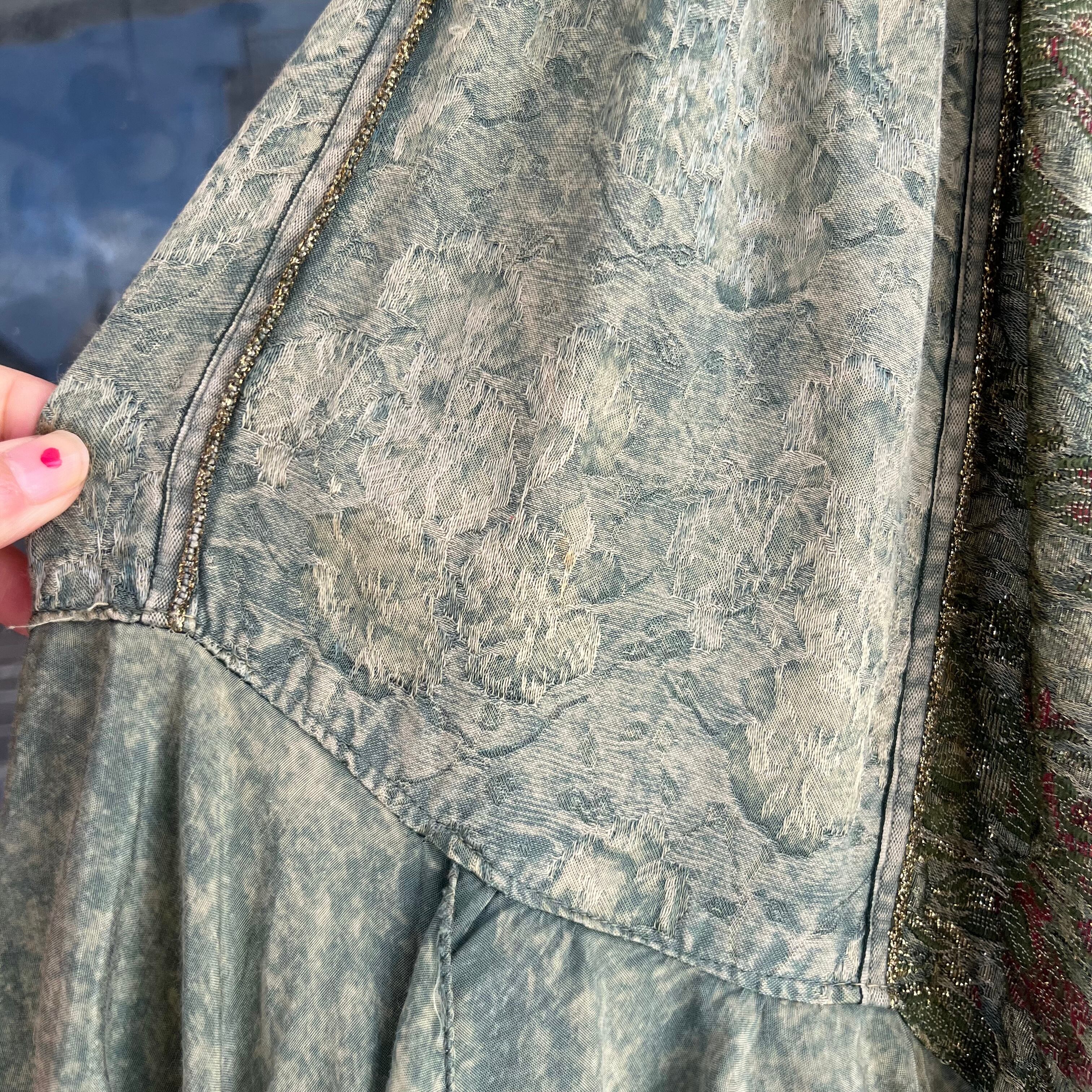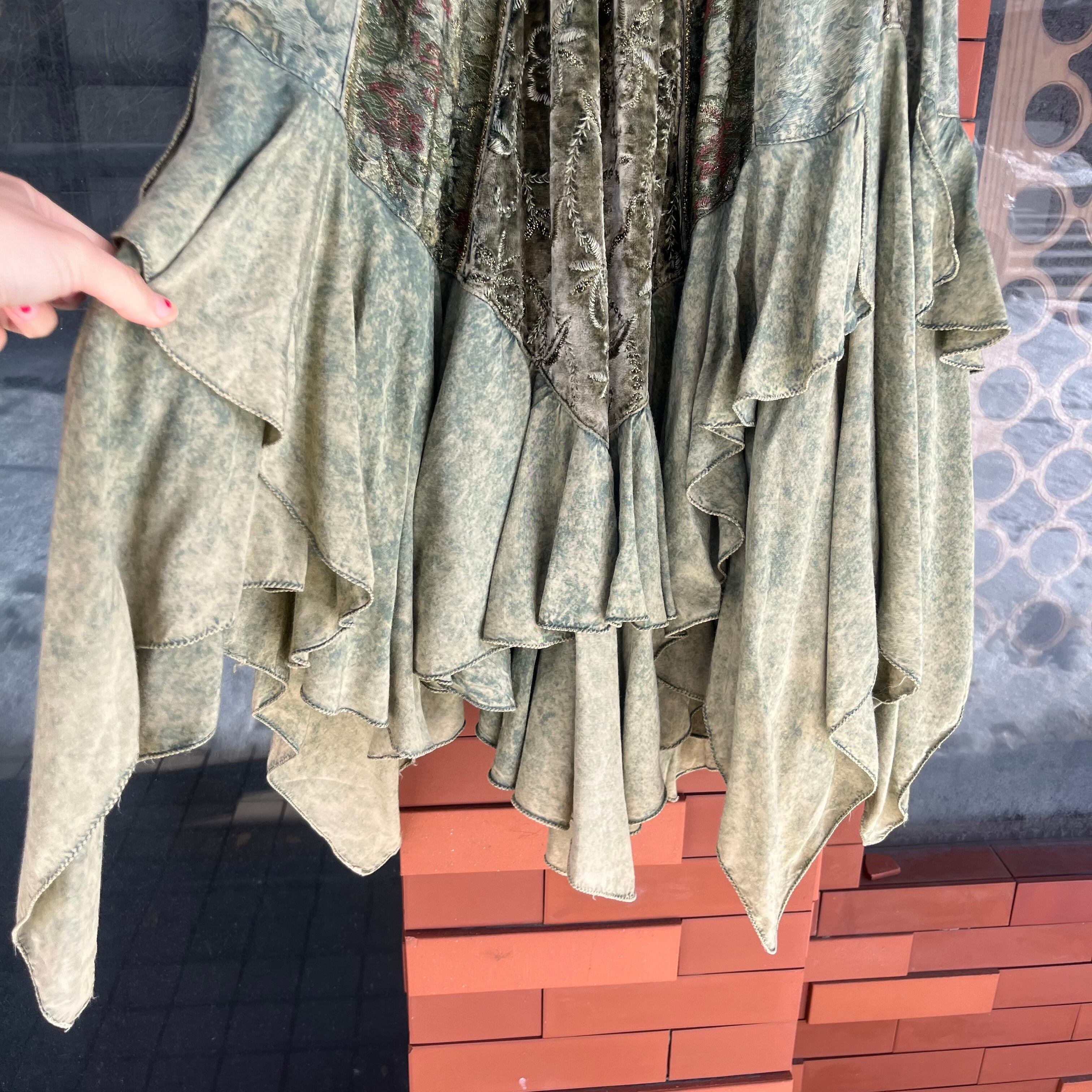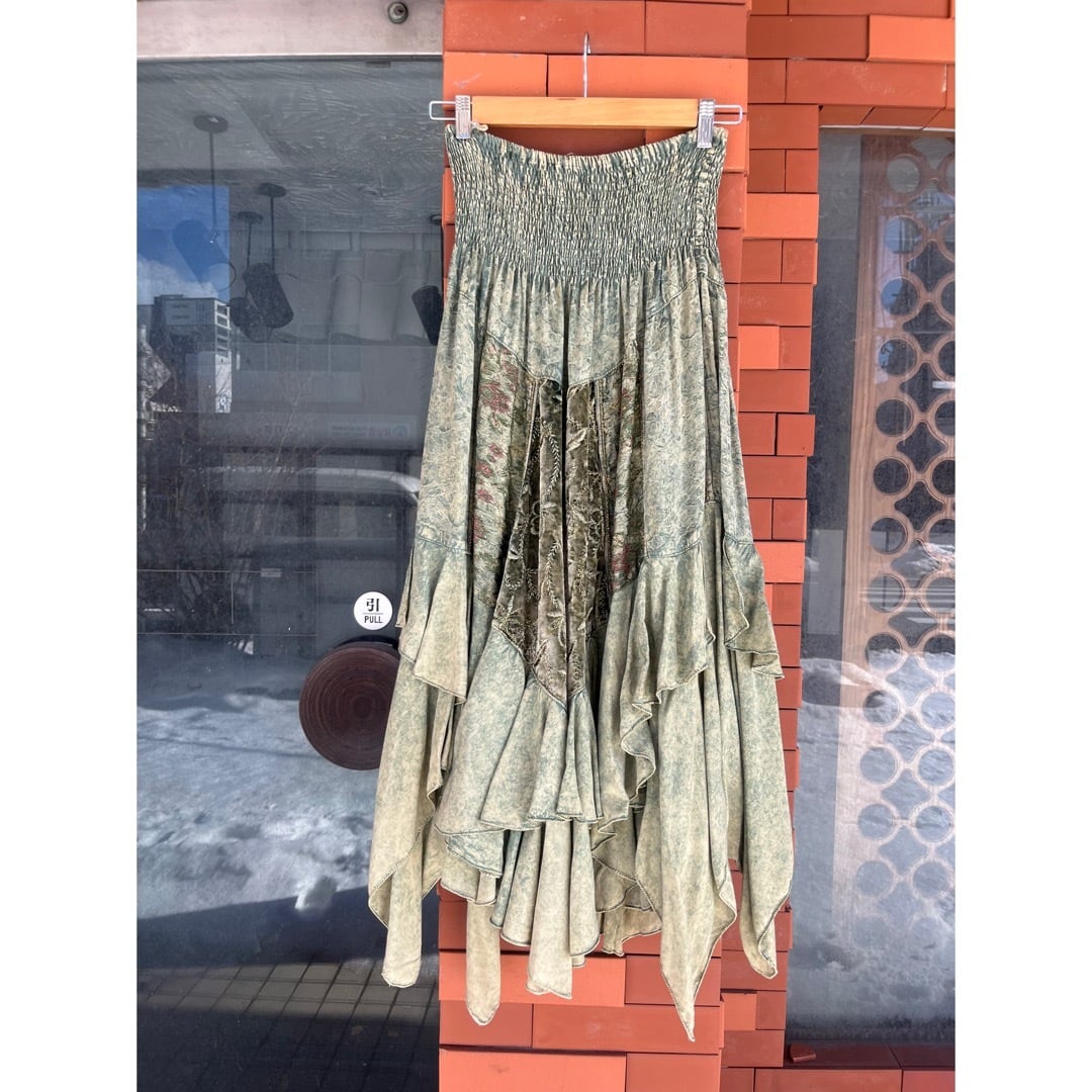 ふんだんに使われた生地が歩くたび足元で揺れて美しいお品。