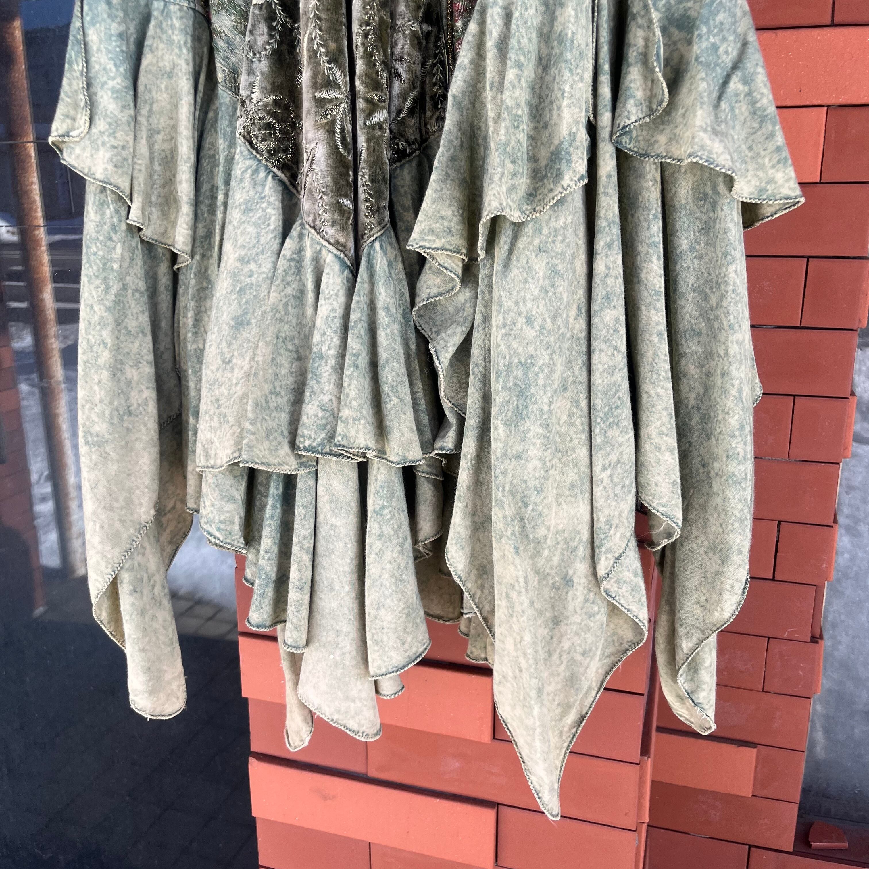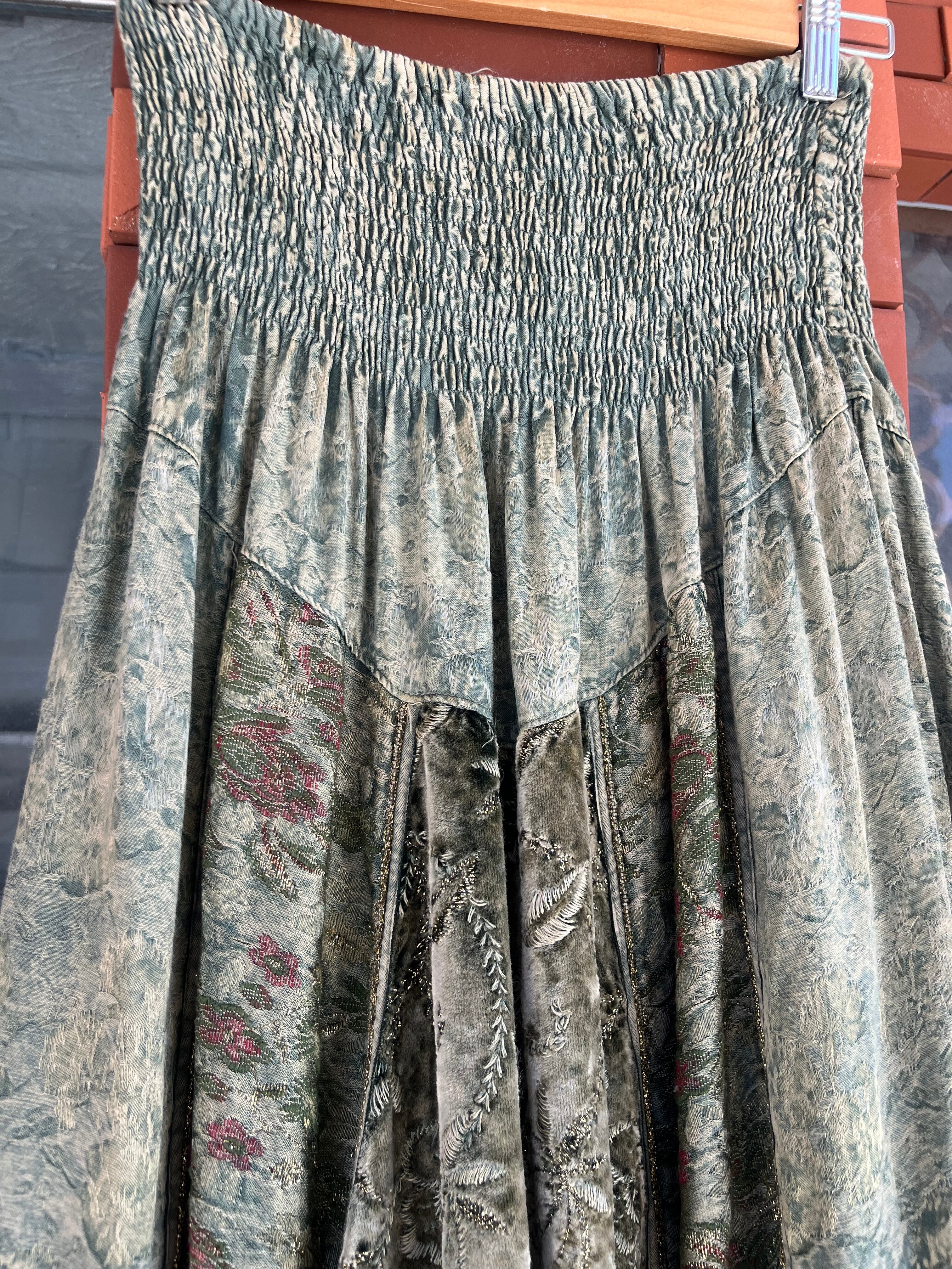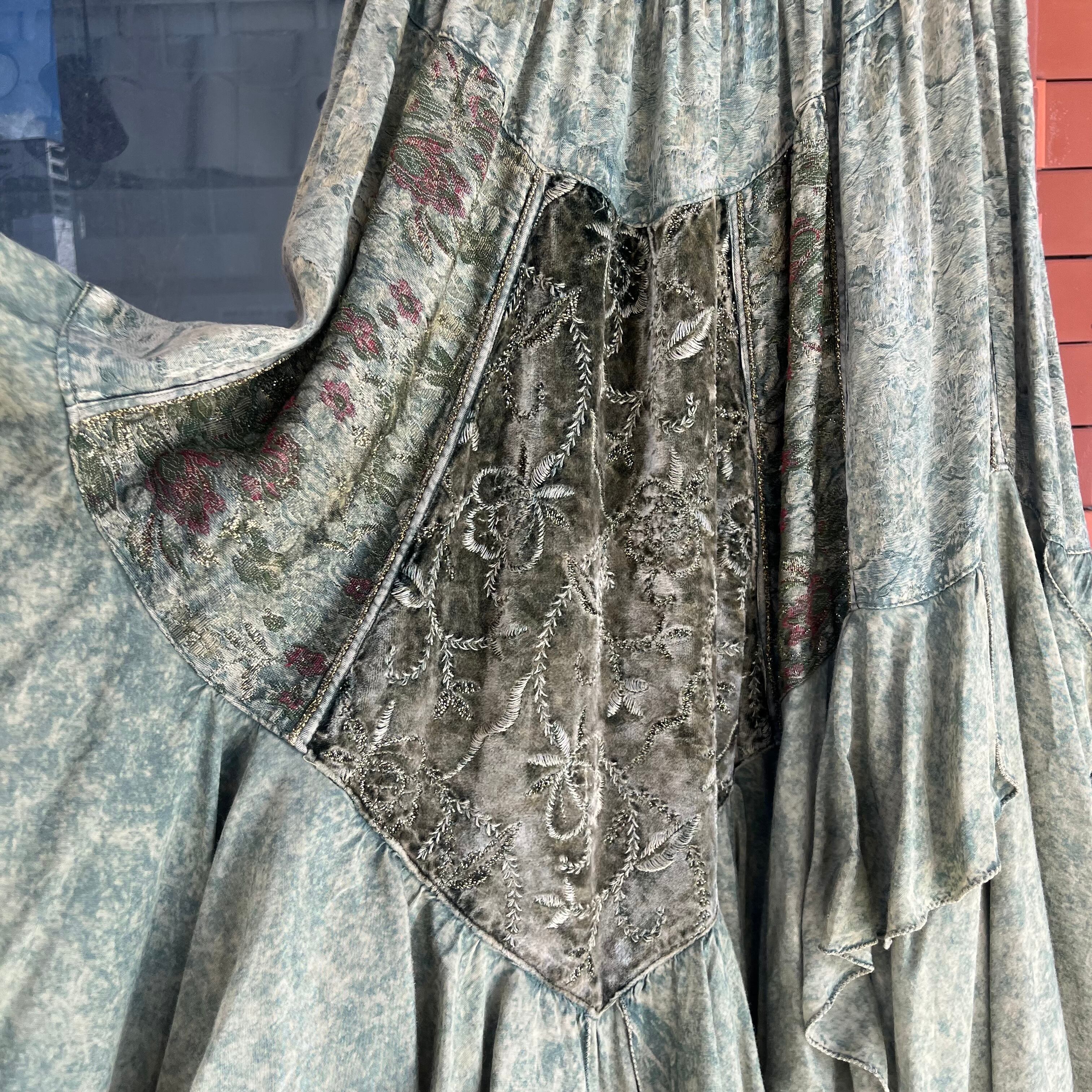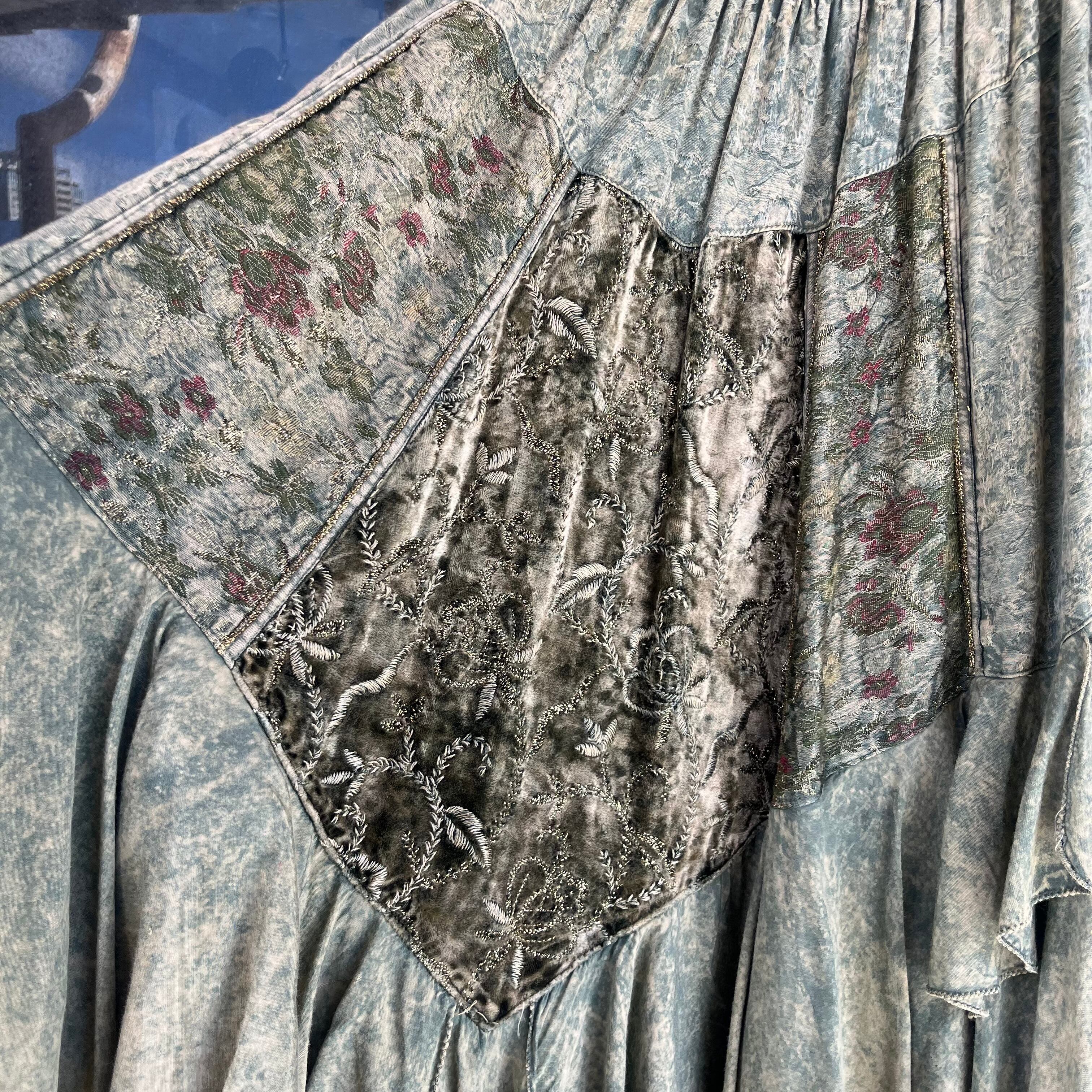 ふんだんに使われた生地が歩くたび足元で揺れて美しいお品。