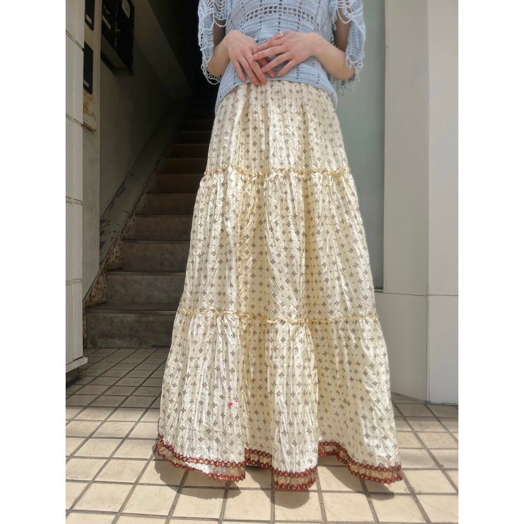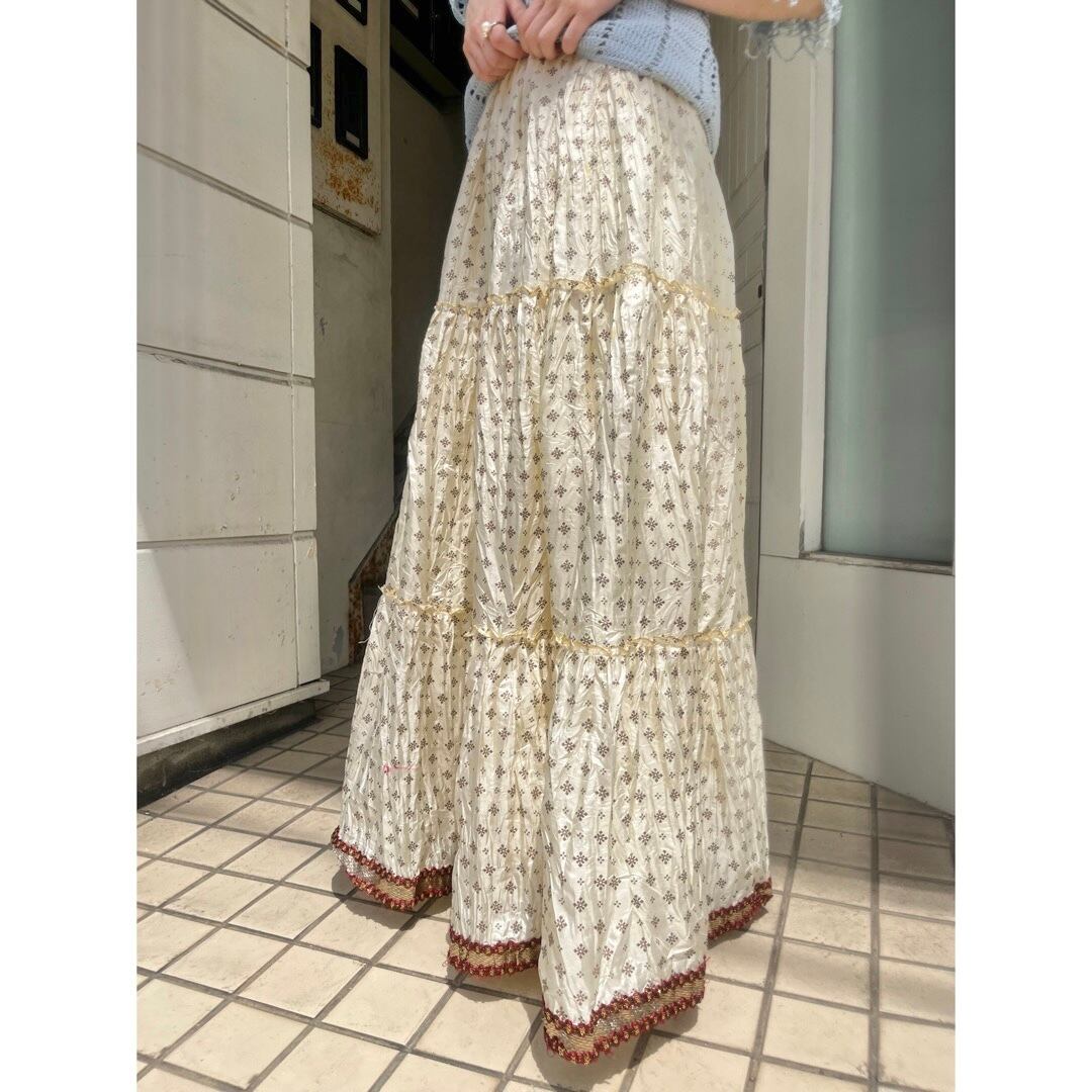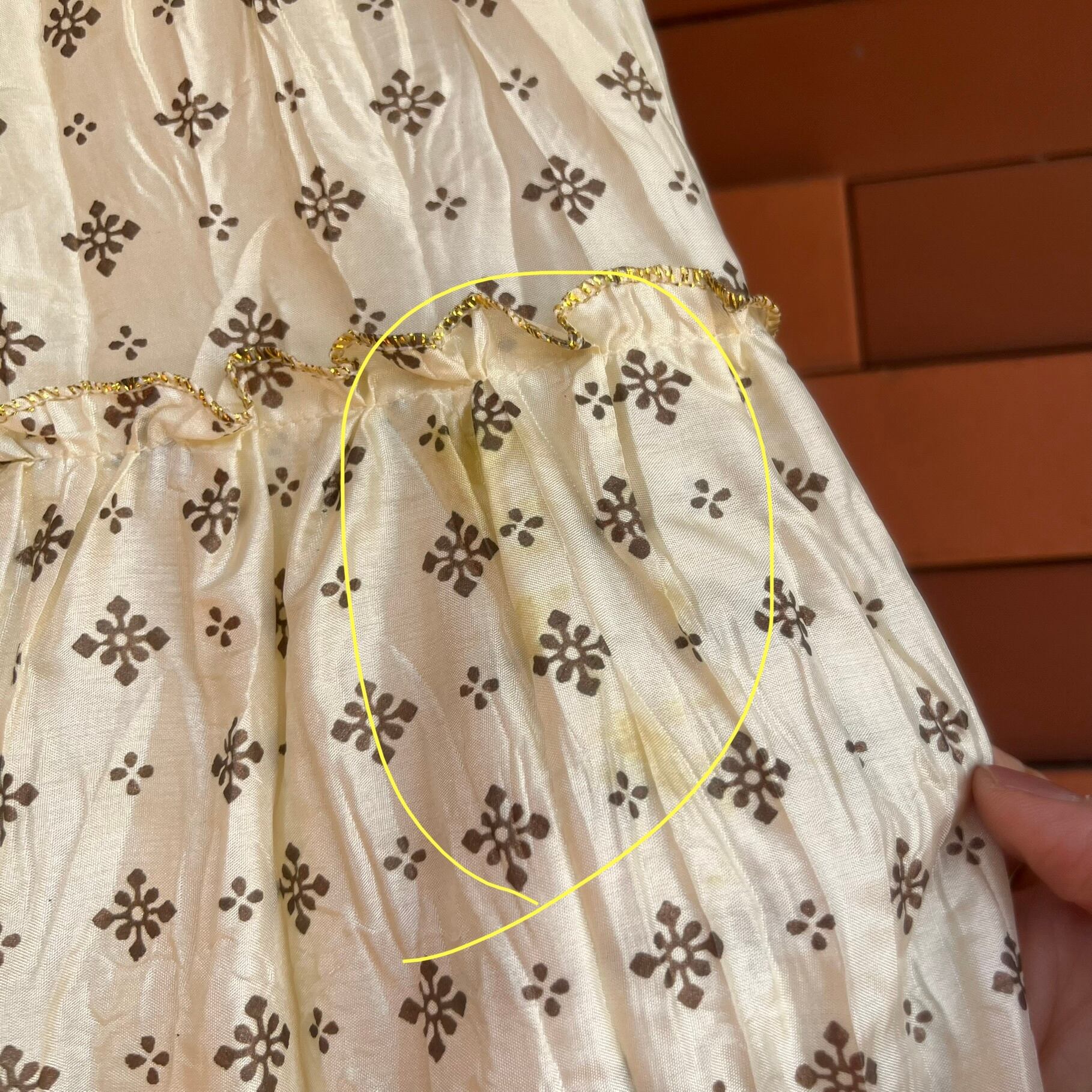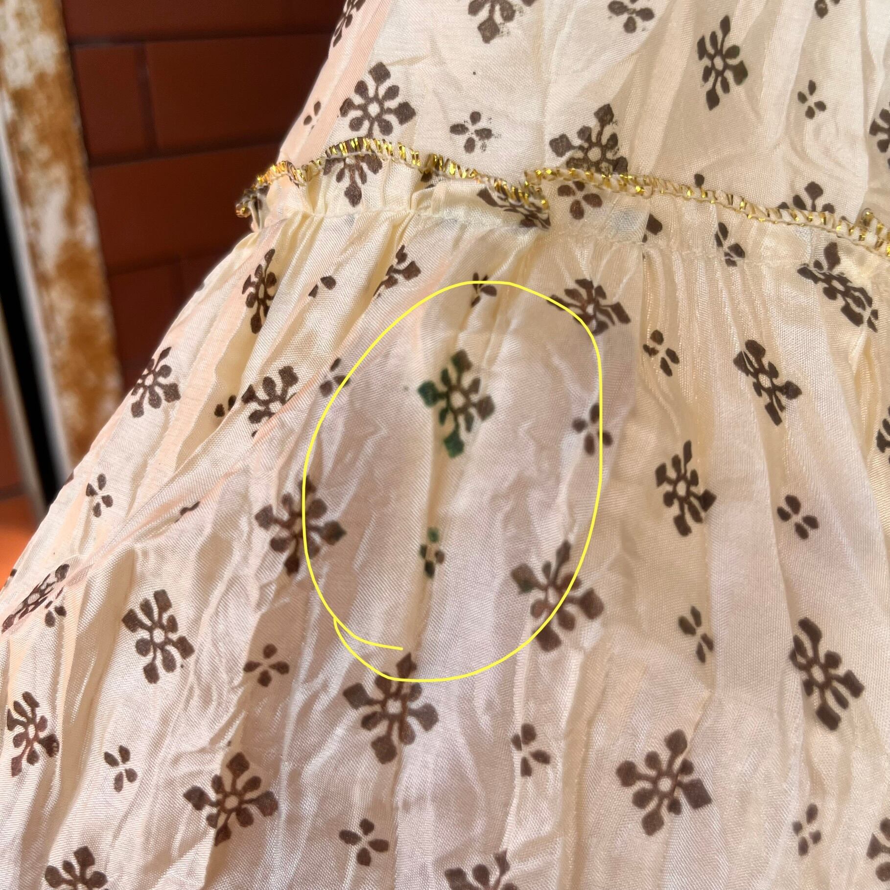インクのシミや薄い汚れがところどころにあります。総柄でスカート自体に存在感があるので汚れはあまり目立ちませんがよくご確認してご検討ください。
