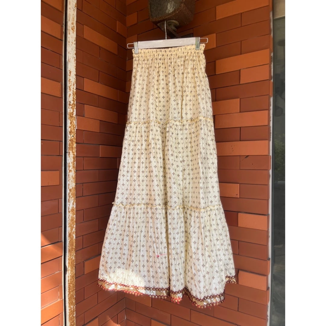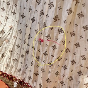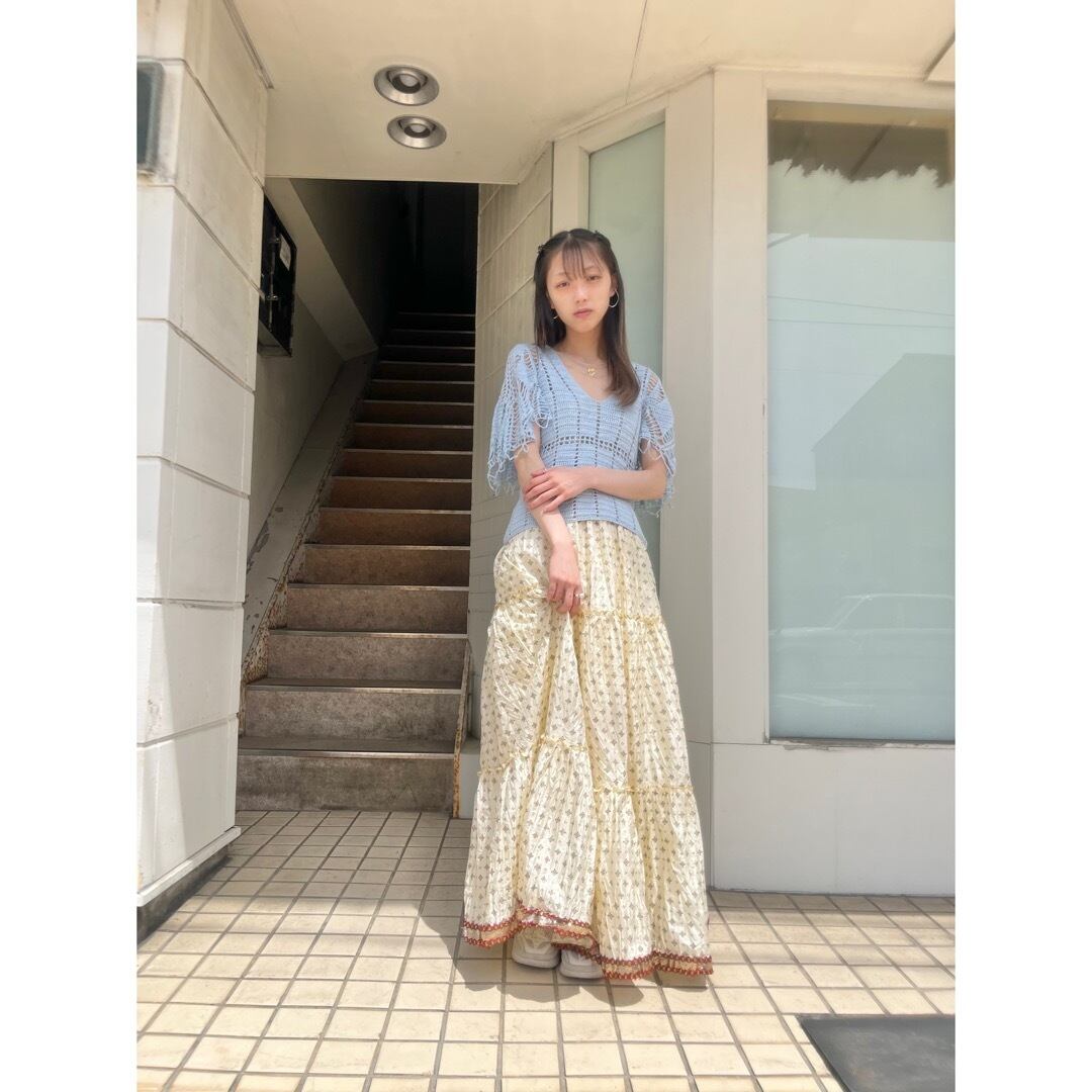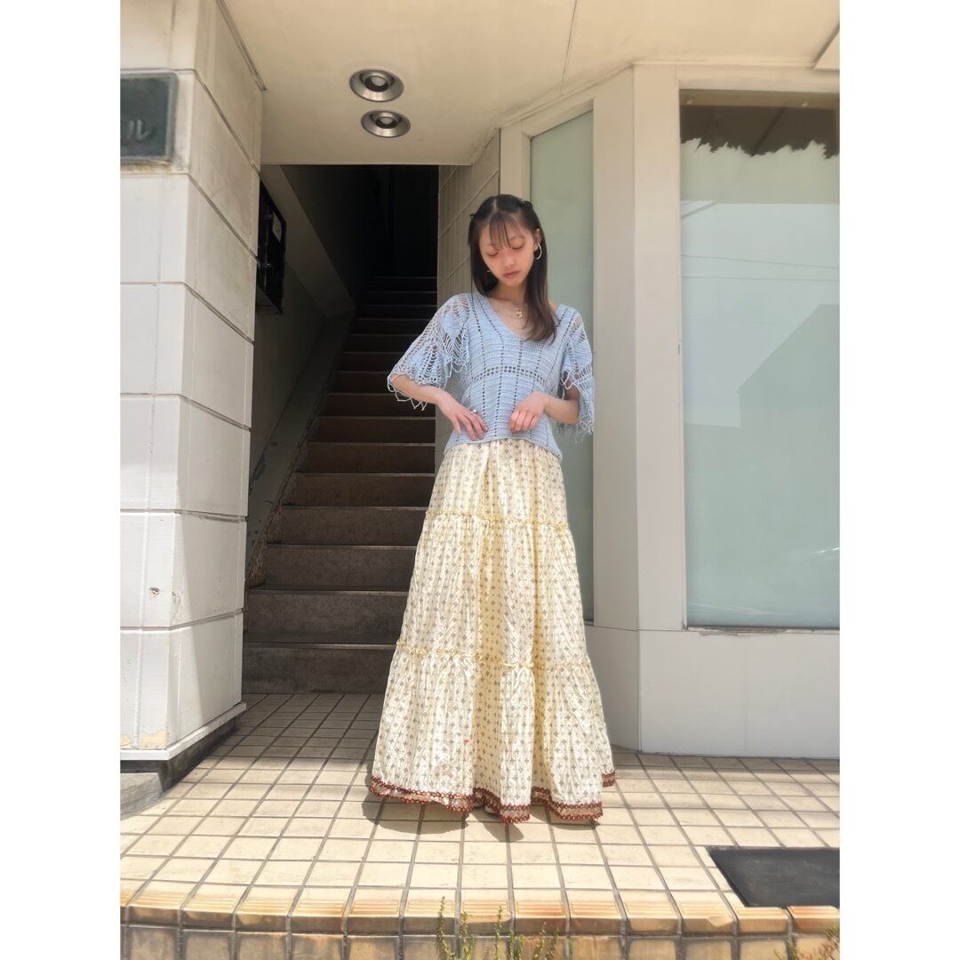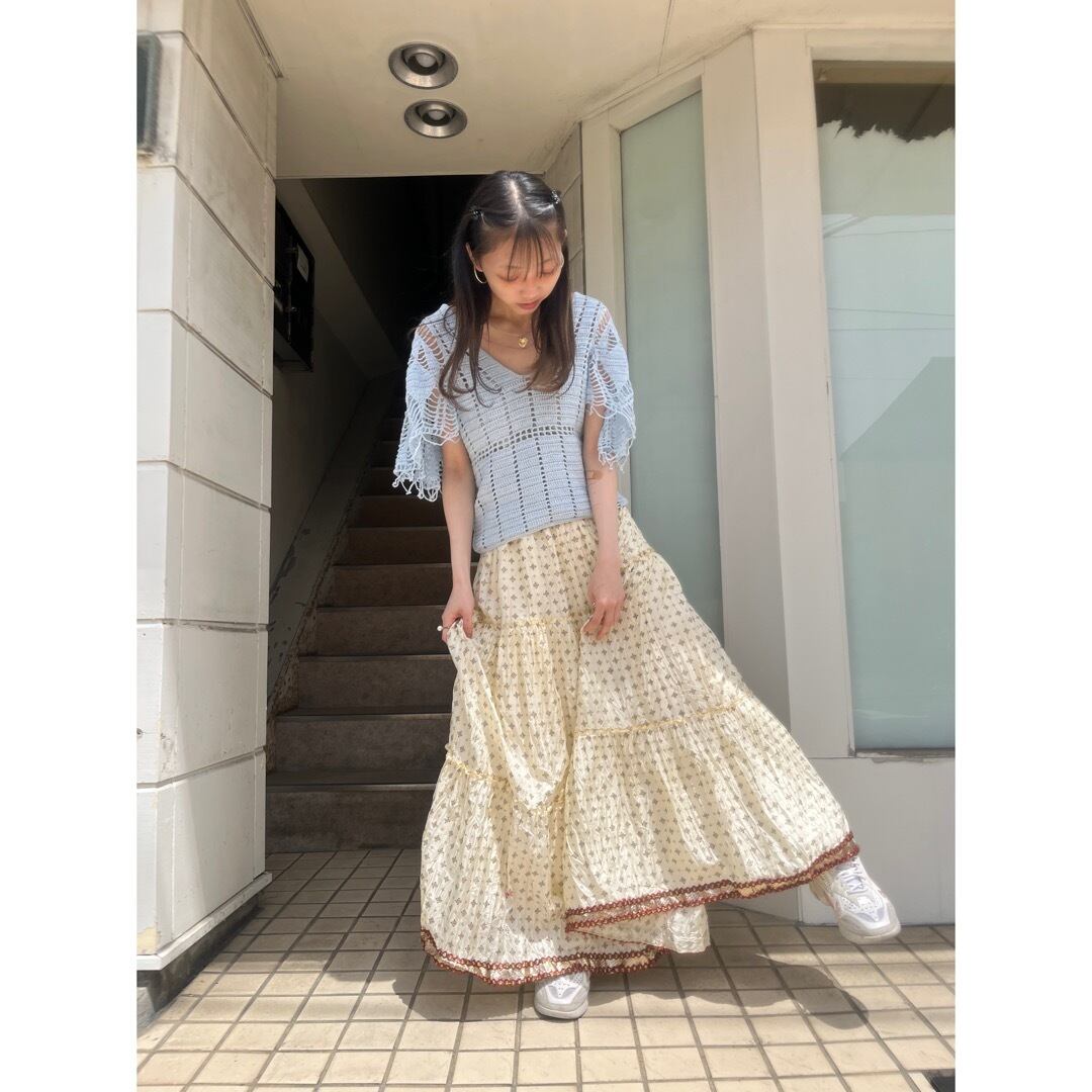 インクのシミや薄い汚れがところどころにあります。総柄でスカート自体に存在感があるので汚れはあまり目立ちませんがよくご確認してご検討ください。