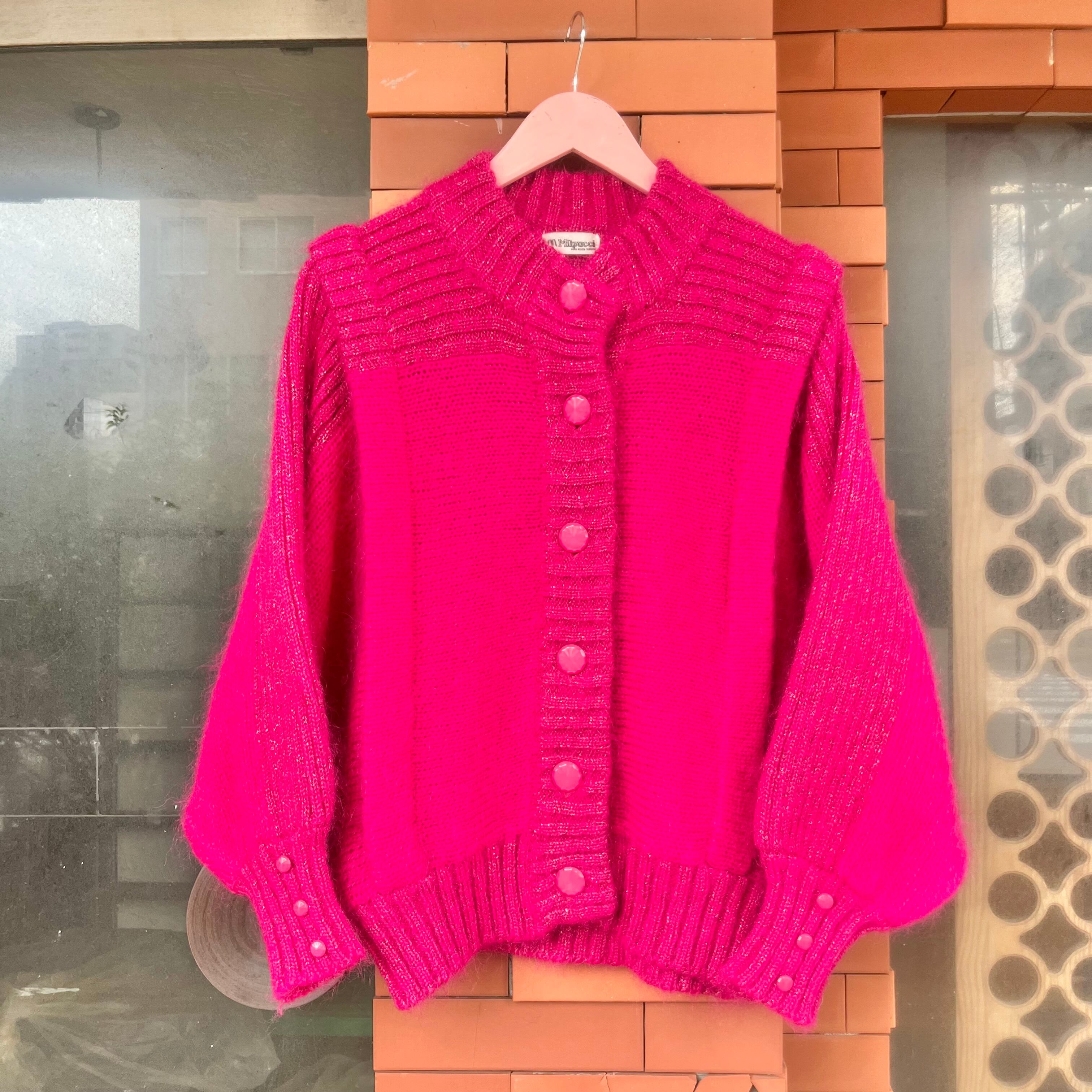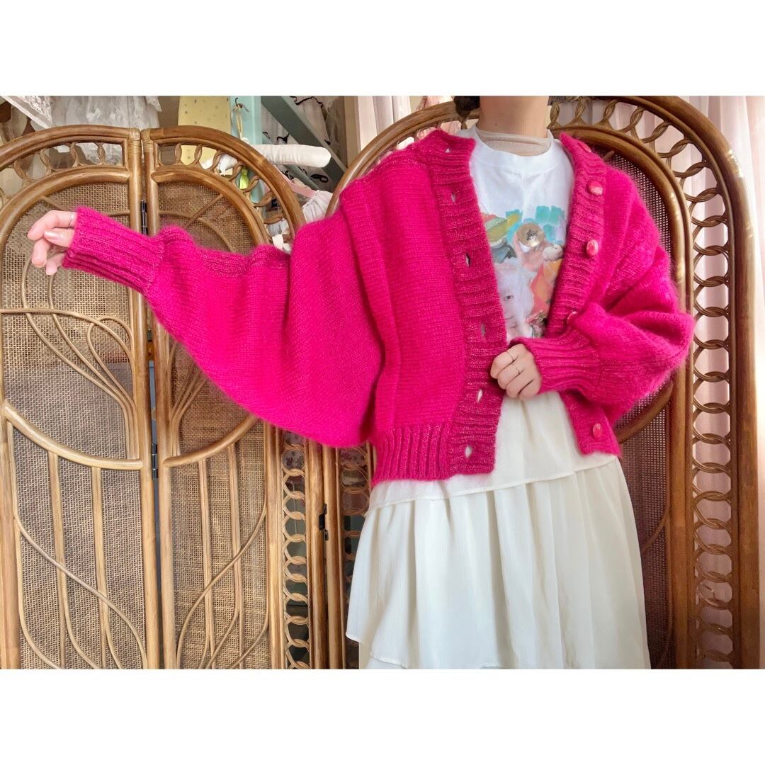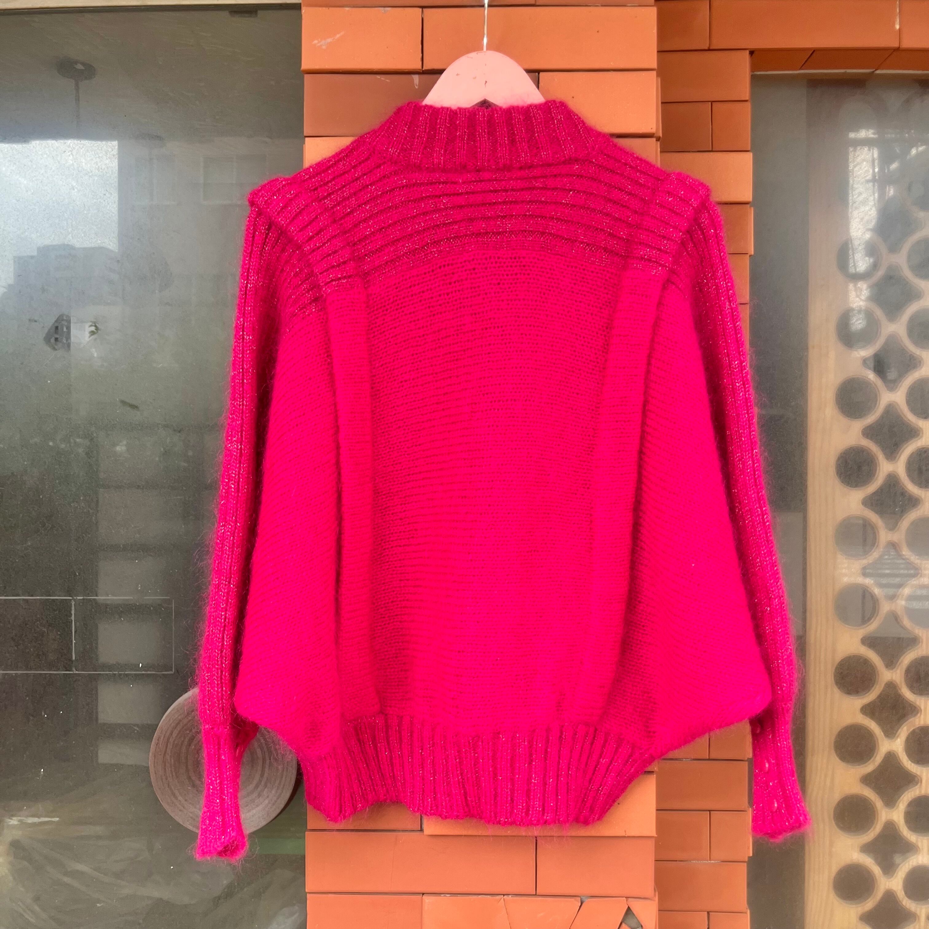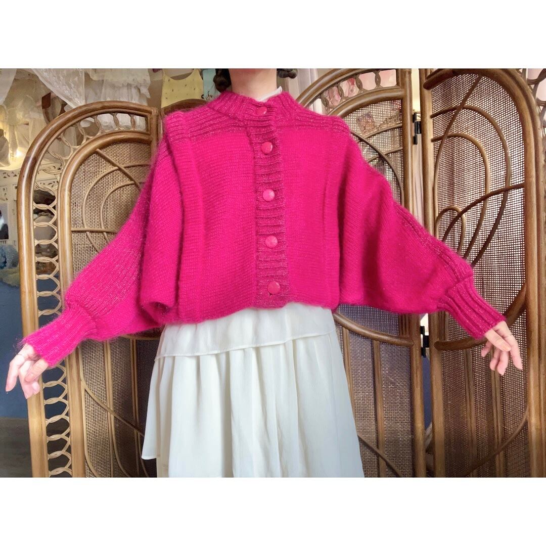 鮮やかなヴィヴィッドピンクに大胆なドルマンスリーブが目を惹くお品です。