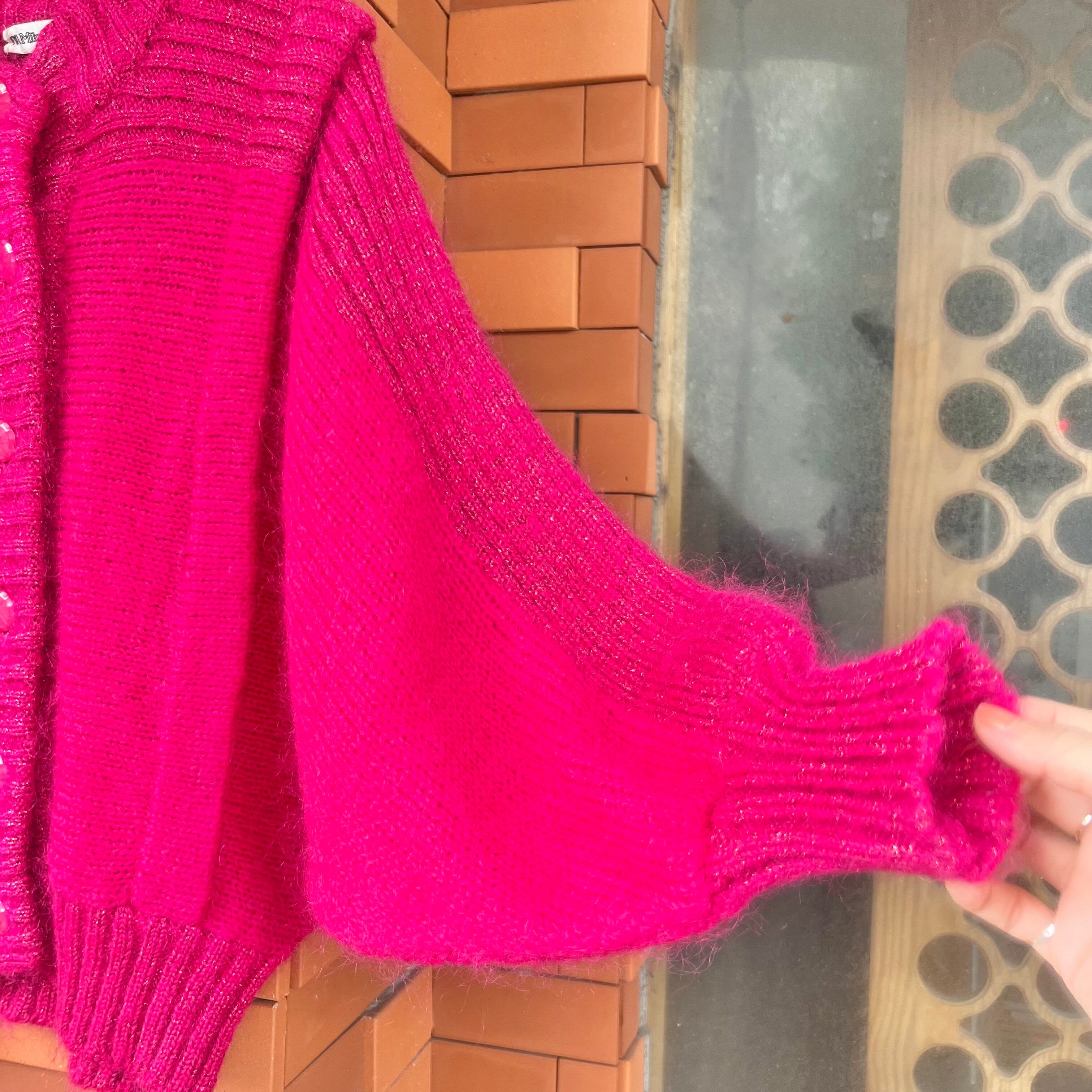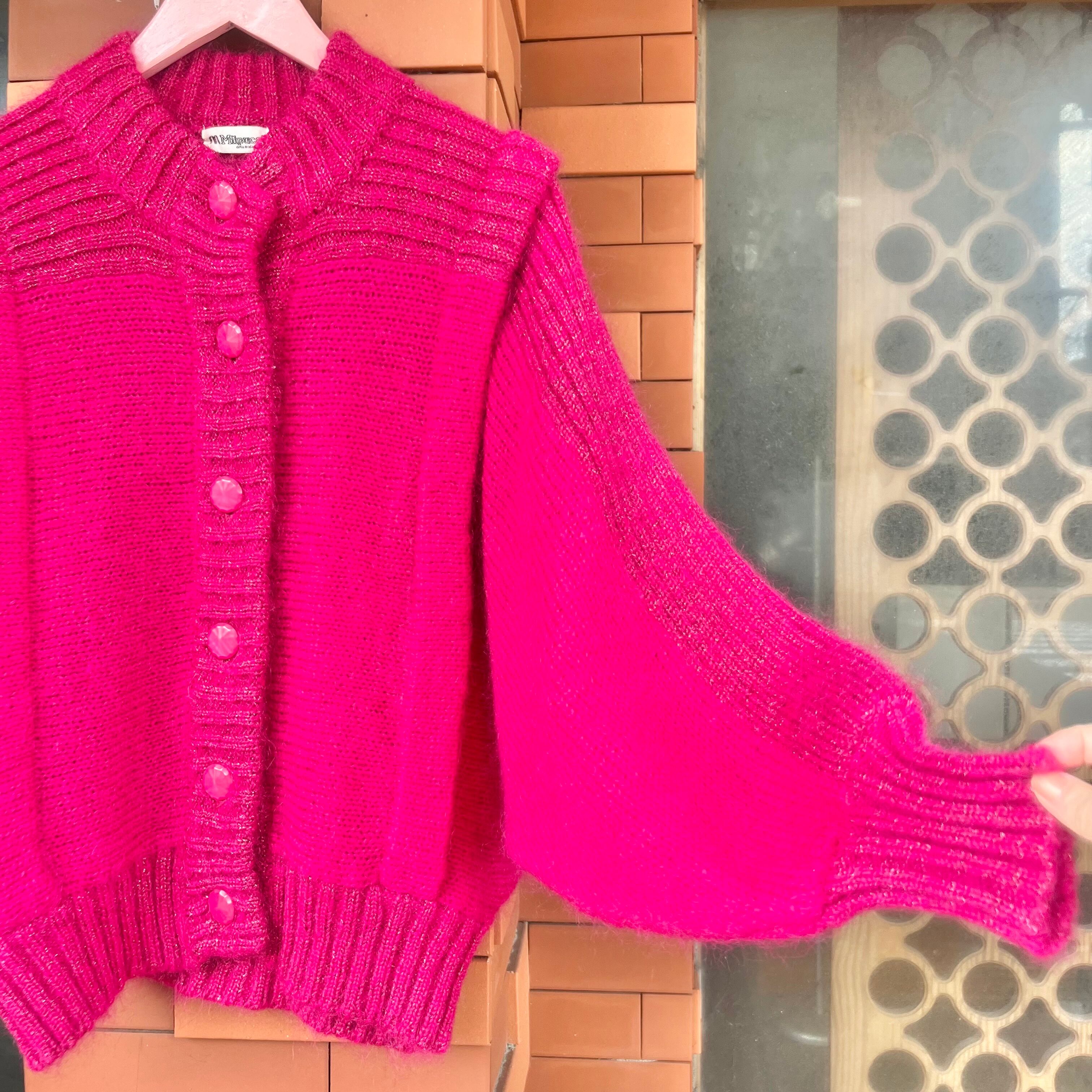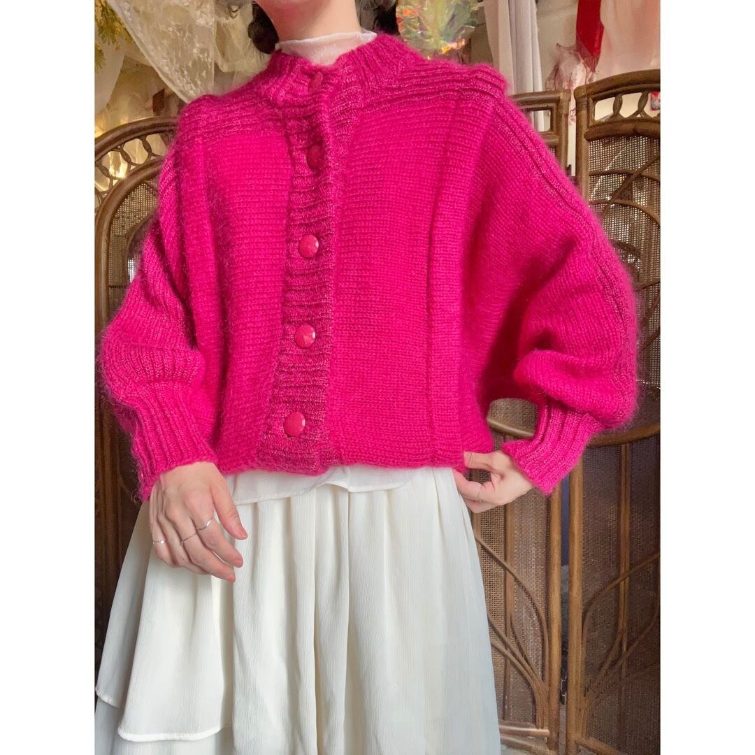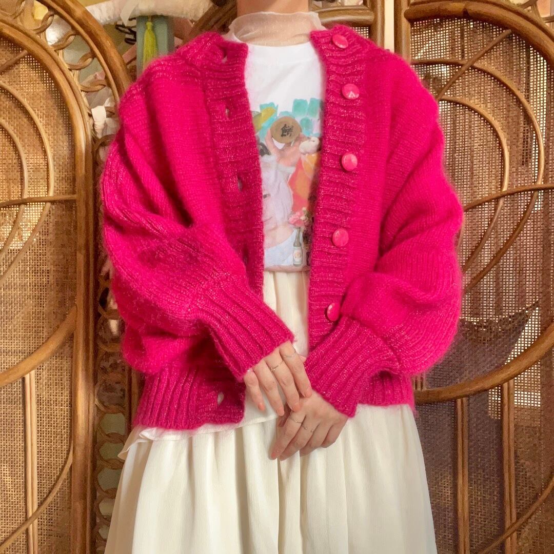 鮮やかなヴィヴィッドピンクに大胆なドルマンスリーブが目を惹くお品です。