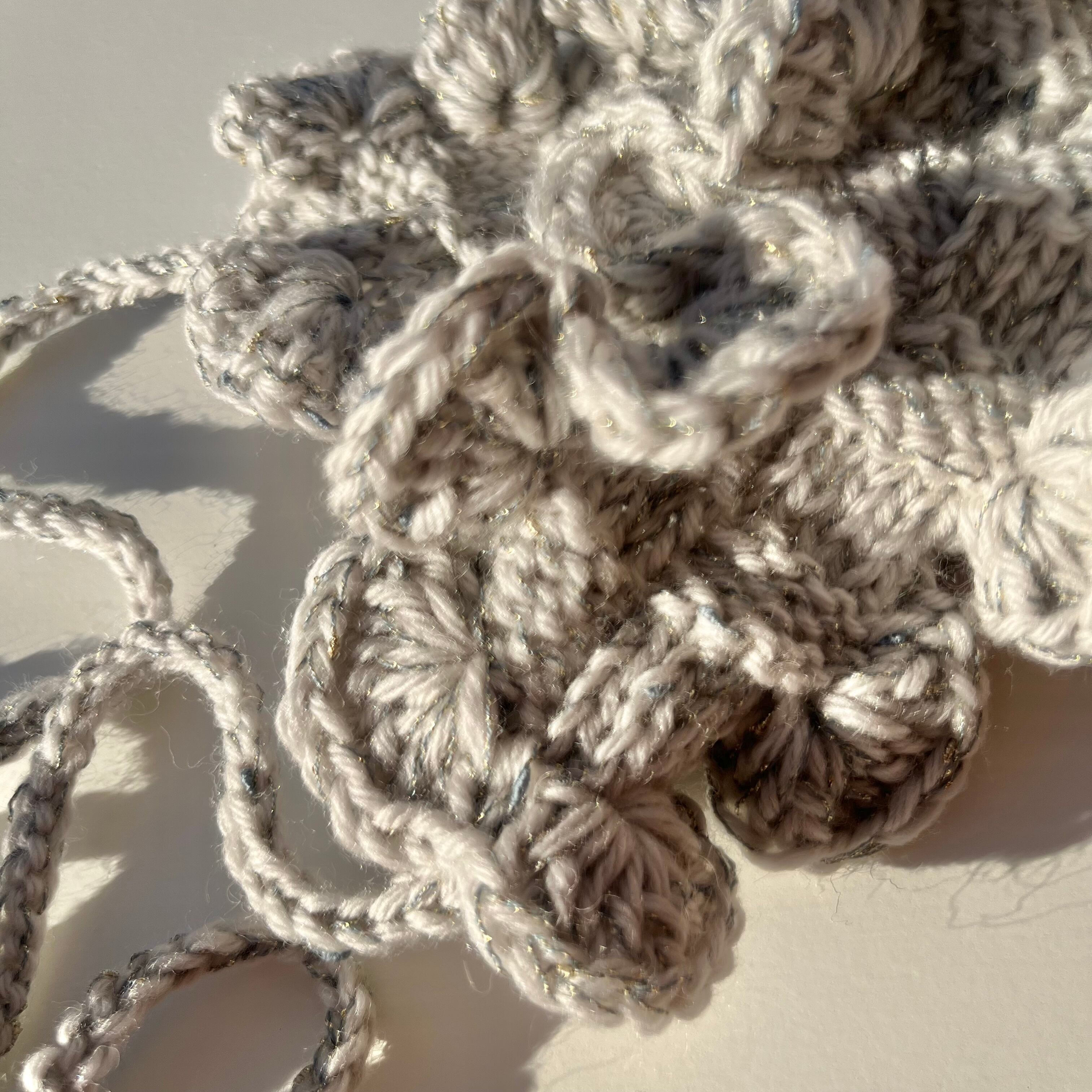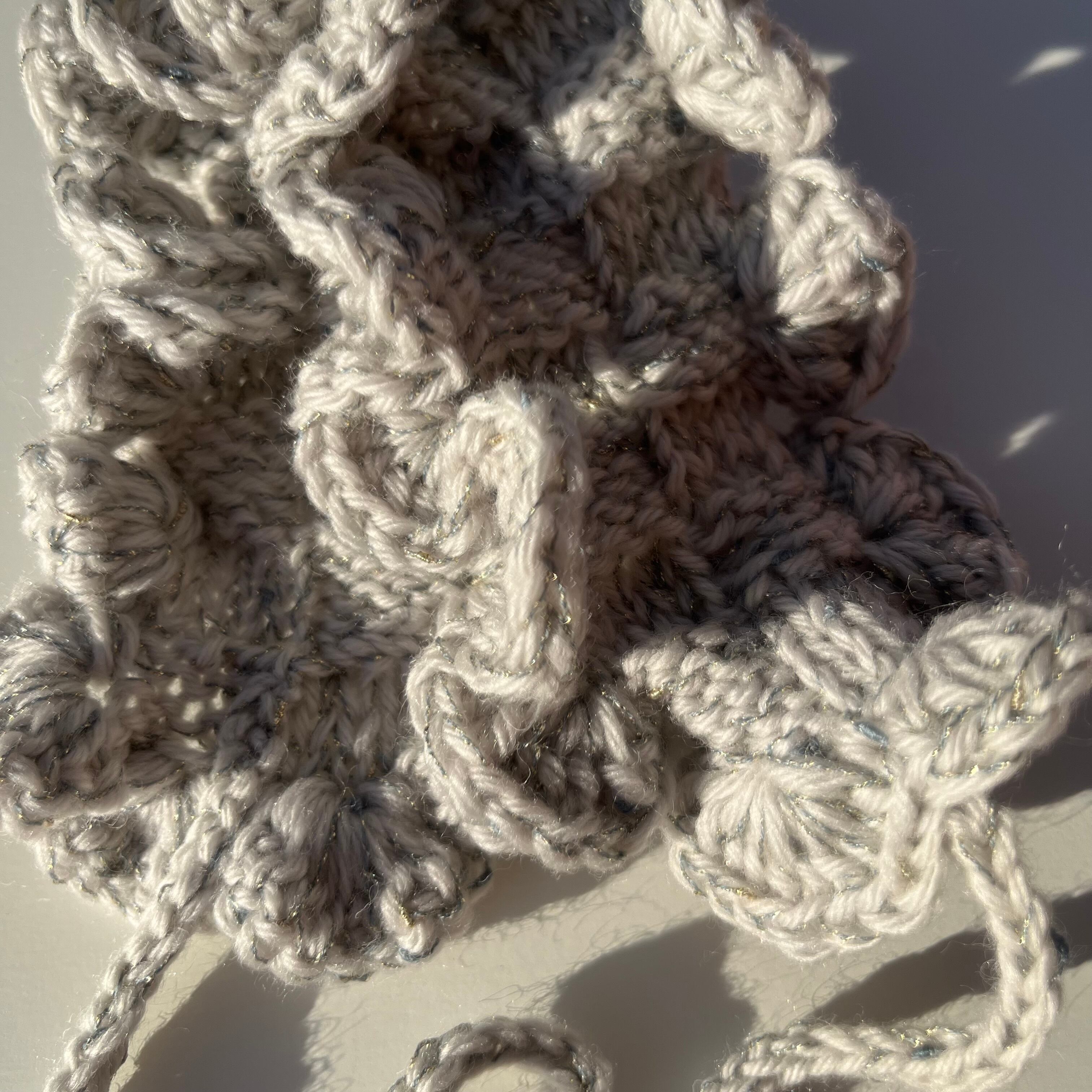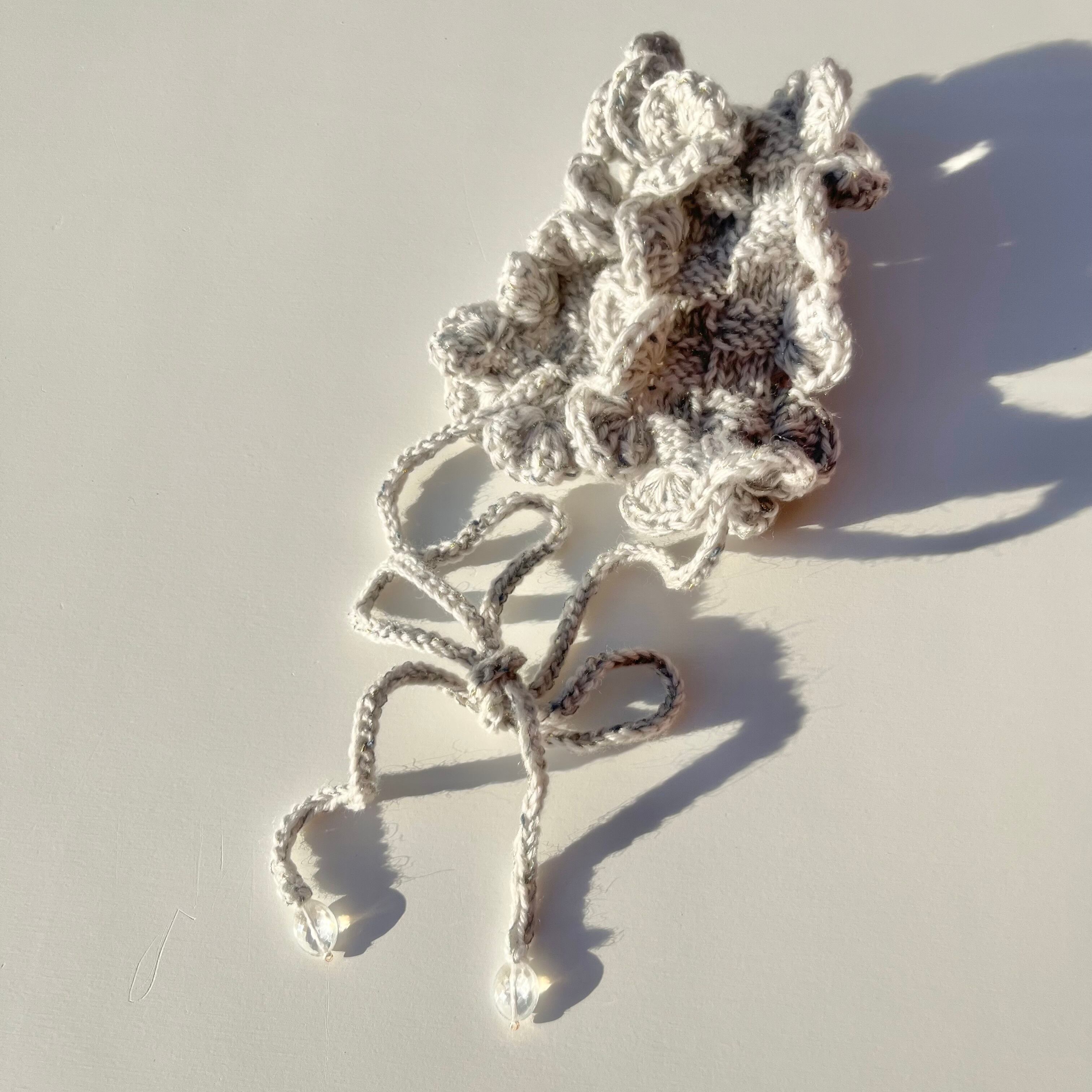 前回は使っていない毛糸でフリルもボリュームアップさせて編んだので、すでにお持ちのかたもまた違った印象で秋冬の装いとあわせてお楽しみいただけるかとおもいます。