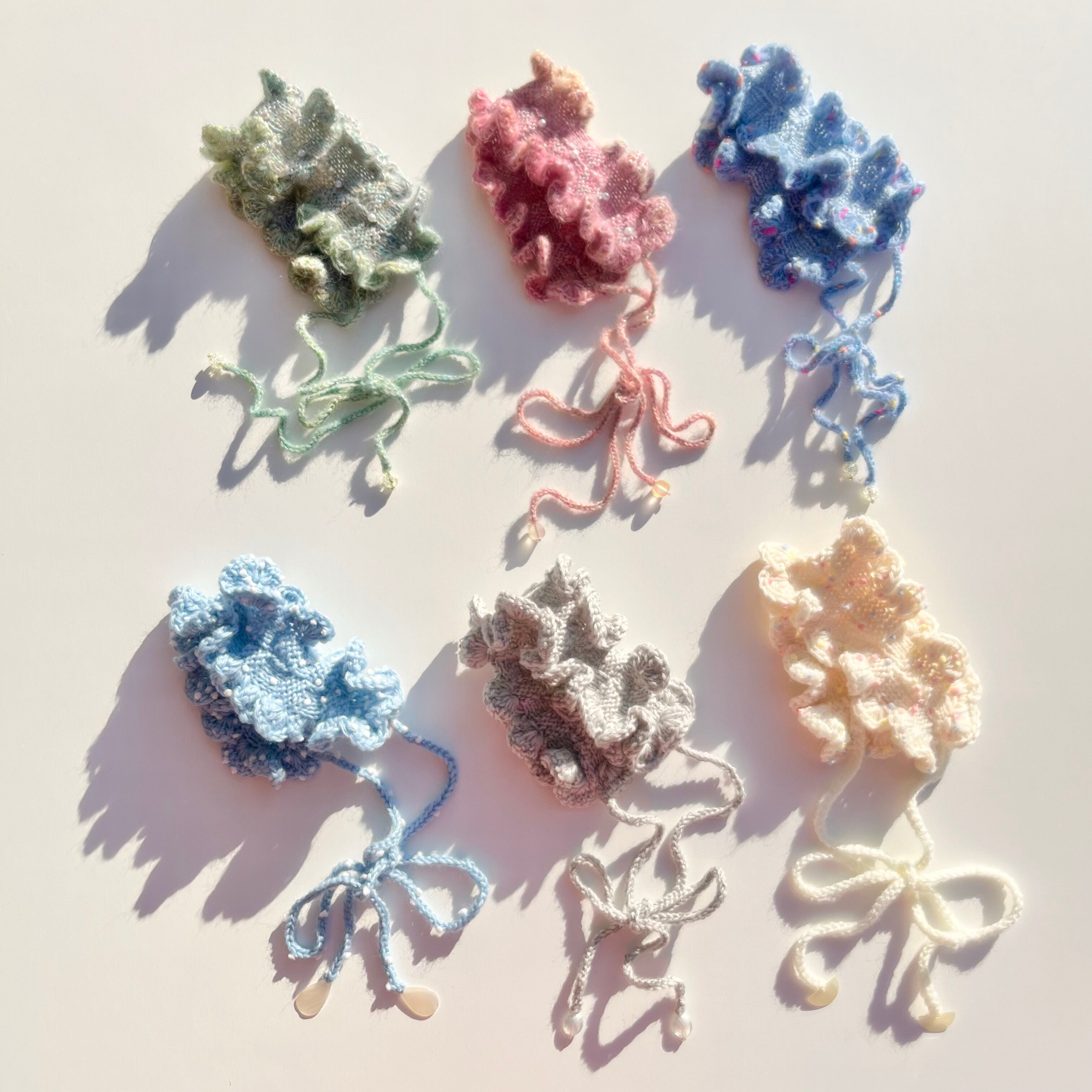 前回は使っていない毛糸でフリルもボリュームアップさせて編んだので、すでにお持ちのかたもまた違った印象で秋冬の装いとあわせてお楽しみいただけるかとおもいます。