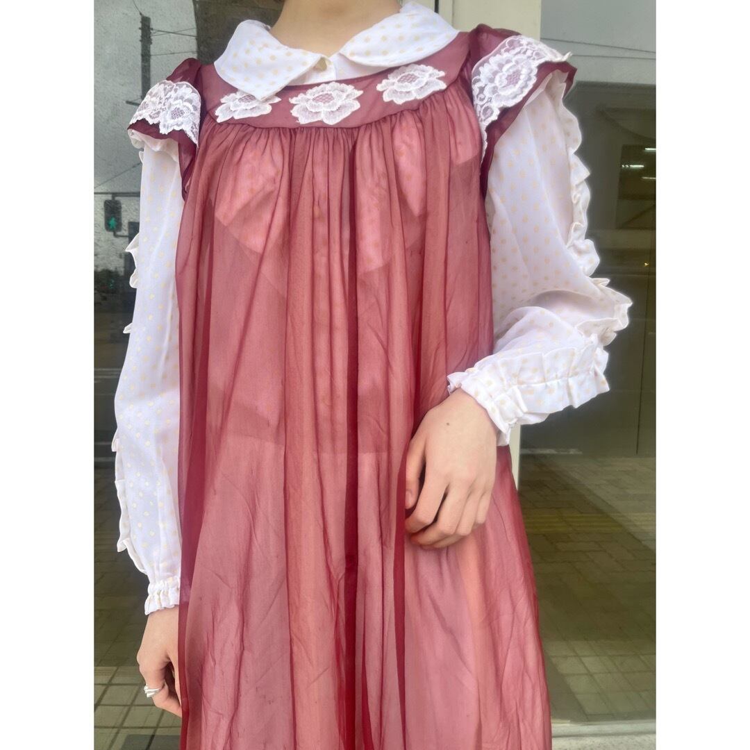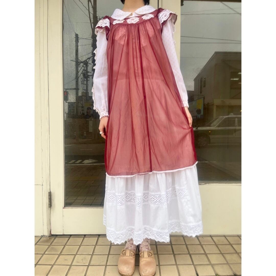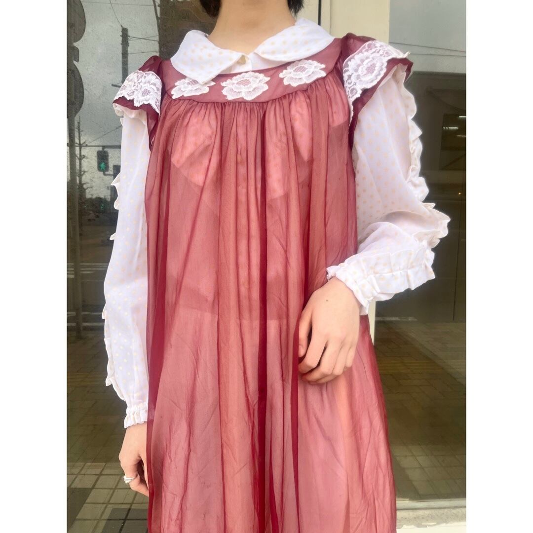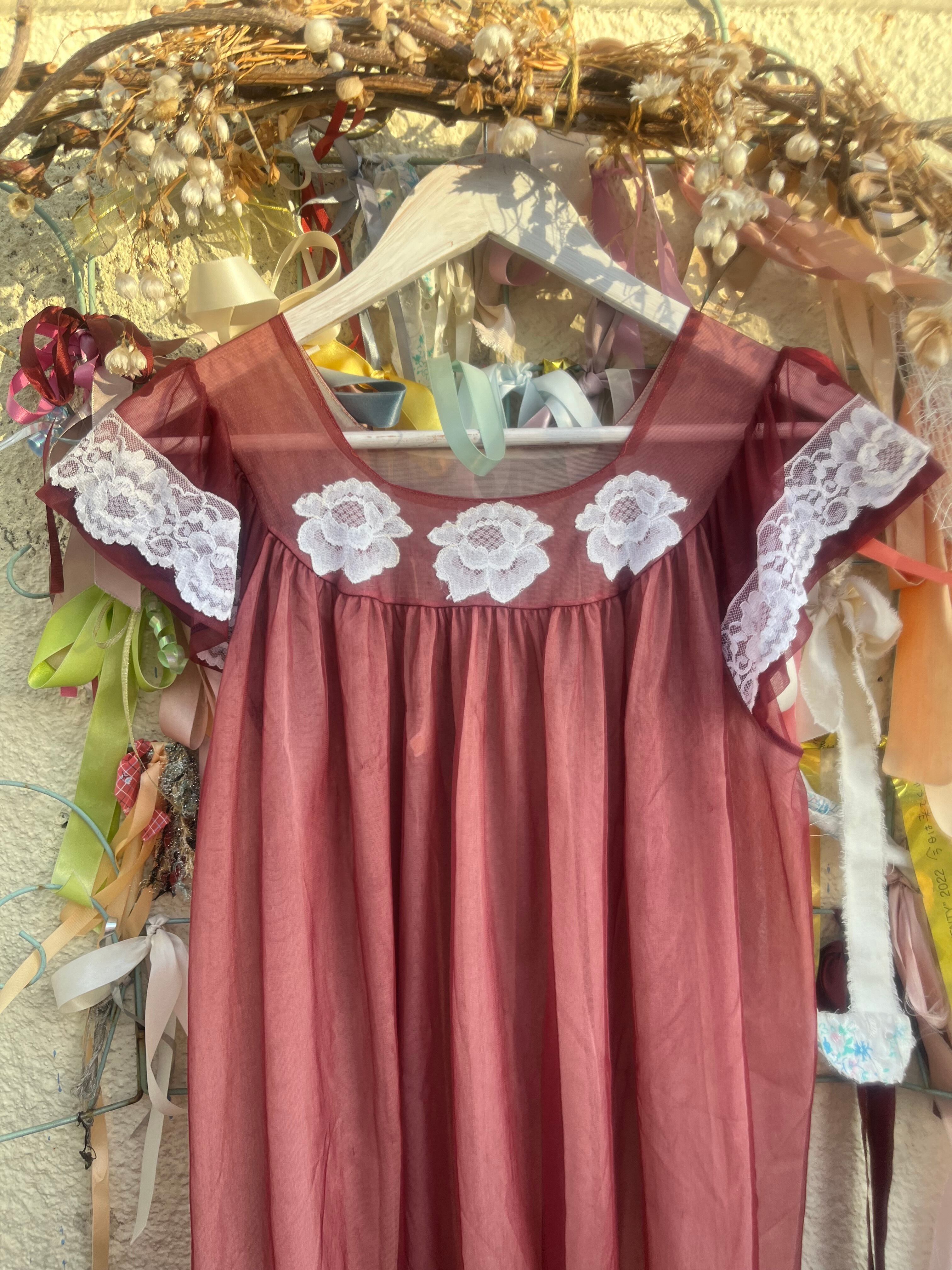 バーガンディカラーの珍しいナイトランジェリードレス。