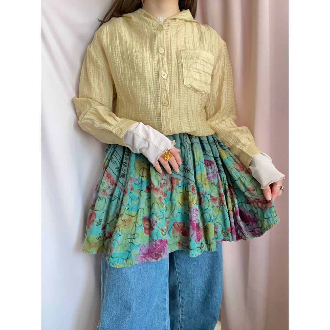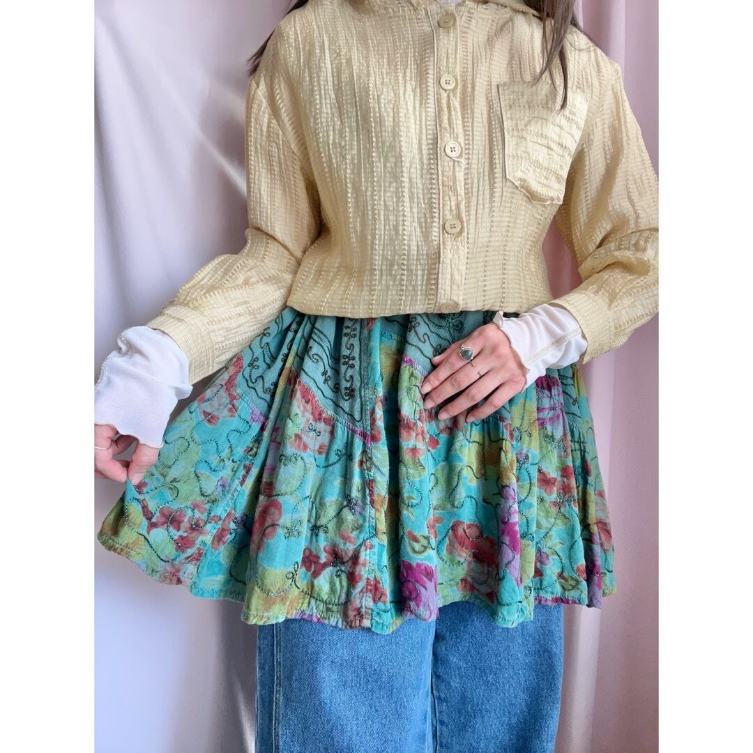 ・リメイク品でワンピースの裾をミニスカートにしています。